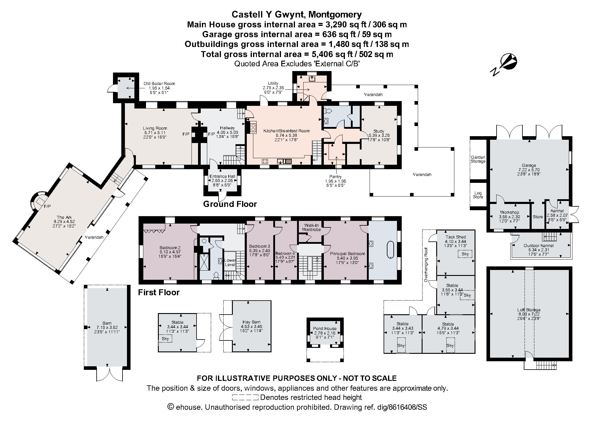 A beautifully presented lifestyle property offering privacy, superb views and equestrian facilities, set in about 5.76 acres with outbuildings.DescriptionCastell Y Gwynt is an extremely special property, nestled into the valley of Llandyssil, just a few miles from Montgomery. The property is surrounded by far reaching views and wonderful countryside, with glimpses of Snowdonia and Cadair Idris on a clear day. The property offers a fantastic lifestyle along with complete privacy and well thought out equestrian facilities.The house was re-built from an older farmhouse, in 1998 with The Ark extension added on about 15 years ago. The accommodation is beautifully presented with a number of character features including shutters to some of the windows, exposed beams and stone and amazing views from most of the rooms. Starting at the side of the house, the 'everyday' entrance opens into a useful boot room and utility, with a door opening into the farmhouse style kitchen which has granite worktops, a two oven aga, a Belfast sink and oak units. There is underfloor heating from the kitchen into an inner hallway, off which is a cloakroom with a large storage cupboard, a separate pantry and a study.The kitchen also provides access to the main entrance hall which also serves as a snug, and has a wood burner and built in units. A door leads into a porch and the formal entrance, with additional storage and provides access to the formal gardens.The snug/hallway also provides access to the drawing room which has built in bookshelves, a wood burner and a door leading into the impressive 'Ark' which is an oak framed extension, with under floor heating, large glazed windows to absorb the beautiful scenery and views, French doors leading outside and a Stovax inset stove.Stairs rise from the entrance hall/snug to the guest suite where there is a shower room, airing cupboard and a double bedroom, which is triple aspect with built in wardrobes.From the landing, a door leads through to a double bedroom (3), with a door leading into bedroom 4, which could serve as a dressing room to the principal bedroom. This room may be accessed either from the stairs in the kitchen, or from the landing area, accessed off bedroom 4.The principal bedroom has a walk in wardrobe with an airing cupboard and a triple aspect ensuite bathroom with underfloor heating.Gardens & GroundsThe gardens are wonderfully mature with a formal lawn area extending from the front of the house, continuing around the side. A blocked pathway leads to a seating area within the corner of the formal garden and a further pathway leads to an orchard, where there are a number of fruit trees including cherry and apple.There is a York stone patio which runs along the front of the house and continuing along the side, with a veranda over part of it, offering a wonderful covered space for al fresco dining.The formal garden has views over the paddocks and towards the wildlife pool and pool house, which has an eco grass roof and a wood burning stove, the perfect place to sit and relax in an evening. From here you can watch some magnificent sunsets and sun rises, whilst taking in the breath taking views towards Snowdonia.To the back of the house is a secret herb garden with paved and gravel paths. Steps rise through a Beech arch, onto a blocked path and a further lawn area.Equestrian facilities & GroundsCastell Y Gwynt is accessed off a single track lane, which leads to a private electric gated driveway.Once through the gates, the 20m x 40m ménage, with a sand and carpet fibre surface, is tucked away on your right hand side. The driveway is lined with woodland to the left hand side and formal gardens to your right hand side, beyond the ménage.The driveway opens into a spacious parking area where there is a timber clad double garage, which has a kennel with outside access, a secure tack room and boarded loft space above. There is a separate log store to the side, spanning the length of the garage. To the left of the garage is an open bay, steel portal shed.To the back of the garage is a further kennel and a gravel path leading to the stables which are accessed through a wooden gate. There is a concrete yard within the centre, a hay store, a tack room with water connected, and four stables.LocationLocated in a rural setting offering privacy within 2.4 miles of Montgomery, which is a small town situated in the Welsh marches a stones throw from Offa's Dyke Path and the National Cycle Route 81. It also provides access to plenty of other footpaths and Montgomery Castle. The town has a thriving community along with cafes, pubs, a primary school and restaurants.Churchstoke is about 4.5 miles away and has a supermarket along with a pub, Welshpool has a larger selection of shops, supermarkets, leisure centre and amenities including a secondary school and is about 7 miles away, whilst Newtown is about 9 miles and also offers a selection of amenities and further schooling. Shrewsbury is about 21 miles away and offers further shopping, a theatre and schooling in the private and state sector.The property boasts views towards Montgomery Town Hill County War Memorial which is also within walking distance. In the distance, and on a clear day you can see Snowdon (Yr Wyddfa) and Cadair Idris, Kerry Ridge and towards Welshpool. There is access to bridle paths within a short distance from Castell Y Gwynt.Both Welshpool and Newtown have train stations on the Cambrian Line, serving West Wales with links to Shrewsbury.Square Footage: 3,290 sq ftAcreage:5.76 AcresDirectionsSat nav will not take you to the property- please follow WHAT3WORDS belowWhat3Words/// order.poorly.crispyAdditional InfoPowys County Council- Band HMains electricity, private water by way of a borehole, private drainage (Cesspool).Pv panels on a feed in tariff- Approximately £2500 per annum.