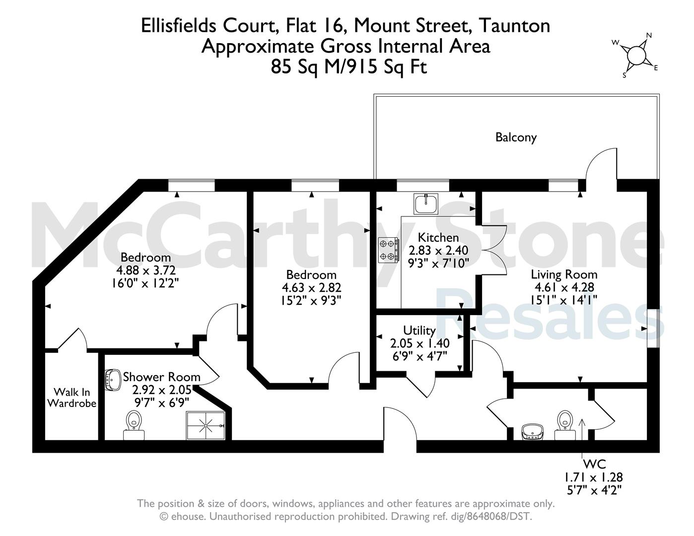 Located on the first floor, with no apartment above, this two bedroom retirement apartment has a walk out balcony with South facing aspect and two double bedrooms, master with walk in wardrobe.*Energy Efficient* *Pet Friendly* *On Site Restaurant*Ellisfields CourtConstructed in mid-2014 by renowned, award-winning developers McCarthy Stone, Ellisfields Court consistently continues to be one our most sought-after developments and it is not difficult to understand why; a quiet backwater location yet within short easy access to the town centre. Beautiful landscaped gardens with pond that back directly onto Taunton Dean Cricket ground with Vivary Park next door. This is a ‘retirement living plus’ development providing a lifestyle living opportunity for the over 70’s and designed specifically for independent living with the peace-of-mind provided by the day-to-day support of our excellent staff and Estate Manager overseeing the smooth running of the development.Homeowners benefit from one hour of domestic assistance each week included within the service charge, and there are extensive domestic and care packages available to suit individual needs and budgets. All apartments are equipped with a 24-hour emergency call facility and sophisticated intercom system providing both a visual and verbal link to the main development entrance. There is also the excellent guest suite widely used by visiting family and friends for which a small charge per night applies.The development enjoys excellent communal facilities, having recently been redecorated including a home owner’s lounge, restaurant with a fantastic, varied daily table-service lunch, laundry, scooter store and landscaped gardens, along with a roof terrace. There is direct access from the development leading to Vivary Park serving as a short cut to town.Ellisfields Court is a vibrant development with plenty of regular activities and ample opportunity to 'get involved’, socialise and make new friends. Equally however, there is, of course, no obligation to participate and Home owners can remain as private as they wish.The Local AreaCentral Taunton is part of the annual West Country Carnival circuit and hosts the Taunton Flower Show. Within Taunton, you'll also find the Eat Wellington Food and Drink Festival, and Fake Festival, which is home to some of the UK's most popular cover bands.In the evenings, you'll find plenty of opportunities to enjoy some local theatre, arts and culture. The Brewhouse Theatre & Arts Centre stages regular and varied performances throughout the year, while Tacchi-Morris Arts Centre hosts theatre, dance and comedy shows, as well as a range of performances from schools and colleges. If you're keen to take up a new hobby in your golden years, then you'll also find community classes here and at the Creative Innovation Centre in the town centre.Sports fans are well catered for as well. Taunton is home to Somerset County Cricket Club and occasionally hosts the England men's and women's national teams. The town also contains a rugby union club, a rugby league club and a football club. Elsewhere, Taunton Racecourse is only two miles away from the centre of Taunton.No.16Situated on the first floor with no apartment directly above, this well presented apartment is located close to one of the two lifts that serve all floors. The accommodation is generously proportioned and offers a well equipped kitchen with integrated appliances, a large, dual aspect living room access out on to a walk out balcony, two double bedrooms (master with walk in wardrobe) and shower room. There is a good size airing cupboard/store off the entrance hall, along with a cloakroom with further storage.Entrance Hall:Of an excellent size with lots of space for typical hall furniture. Having a solid Oak-veneered entrance door with spy-hole, security intercom system that provides both a visual (via the home-owners TV) and verbal link to the main development entrance door. Emergency pull cord, deep walk-in store/airing cupboard with light, shelving, Gledhill boiler supplying domestic hot water and the concealed ‘Vent Axia’ heat exchange unit providing an economic heat recovery system.Cloakroom:Comprising white WC and corner wash-basin, wall cupboard, half tiled walls and vinyl flooring. A door leads through to a walk in store.Living RoomA generous size, dual aspect room with with attractive Pine (inner-framed) triple-glazed French door with matching side panel opening onto a balcony with a very pleasant South facing aspect over the front of the development. Glazed panelled double doors lead to the kitchen.BalconyA good size walk out balcony overlooking the front of the development and with a South facing aspect.Kitchen:Having a triple-glazed electronically operated window. Excellent range of Maple effect fitted wall and base units with contrasting laminate worktops incorporating a stainless steel inset sink unit. Integrated appliances comprise; a four-ringed hob with stainless steel chimney extractor hood over, waist-level oven and concealed fridge and freezer. Ceiling spot light fitting, tiled splashbacks and tiled floor.Master Bedroom:A well-proportioned double bedroom. Triple-glazed window with a pleasant outlook. Walk-in wardrobe with auto-light, hanging rails and shelving.Bedroom Two:Of a good size with a triple-glazed window.Shower RoomWhite suite comprising; level access shower, close-coupled WC, vanity wash-hand basin with fitted furniture surround including storage both below and to the side, fitted mirror, shaver point and down lights. Electric heated towel rail, emergency pull cord, ceiling spot light and fully tiled walls and vinyl flooring.ParkingCar parking is available with a yearly permit at a charge of around £250 per annum - please check with the Estates Team for current availability.Service ChargeWhat your service charge pays for:• Estate Manager who ensures the development runs smoothly• cqc Registered care staff on-site 24/7