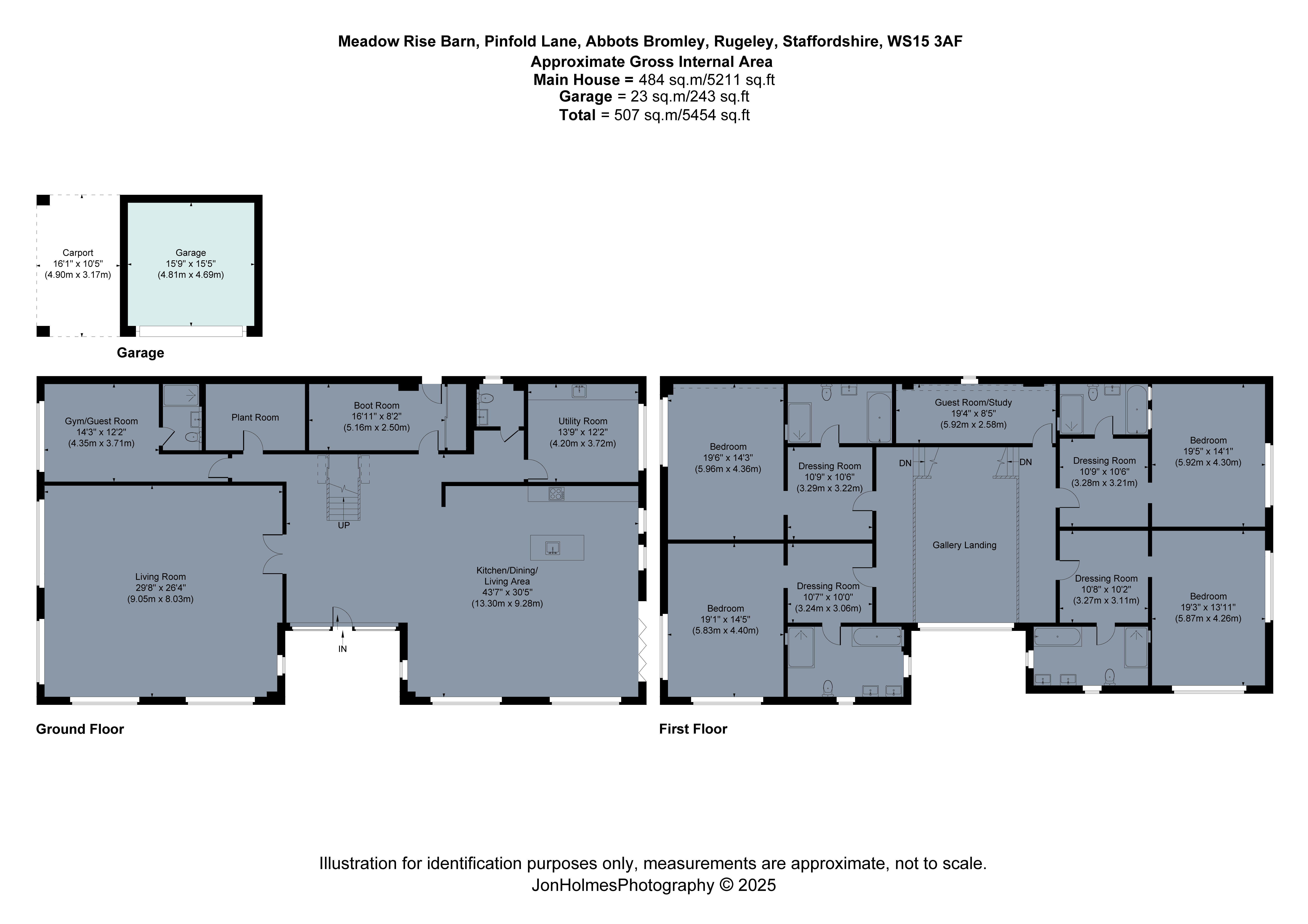 A contemporary barn conversion, built to the highest of specifications and offering luxurious and spacious accommodation throughout, complemented by garaging.An impressive contemporary barn conversion, thoughtfully designed and finished to the highest of specifications to provide modern luxury in a rural setting. Offering spacious and beautifully appointed accommodation throughout, the property provides an exceptional standard of living and flexibility, ideal for both family life and entertaining. The property has the benefit of a build warranty and is pre-wired for a sound and security systems.The house is complemented by a detached double garage and car port, and is set within generous grounds. Mostly laid to lawn and extending to approximately 0.95 acres, the property enjoys a high degree of privacy and tranquillity, and backs directly onto open Staffordshire countryside, affording uninterrupted rural views and a wonderful sense of seclusion.Ground Floor• A striking reception hall features an oak staircase rising to a galleried landing, and opens into an expansive open-concept living-dining kitchen• Underfloor heating is fitted throughout the ground floor• The living-dining kitchen displays bespoke, handmade shaker style cabinetry and is fitted with Neff appliances to include a double oven with built in extraction hob, combi-oven, twin dishwashers, and a fridge and freezer. Large, dual aspect windows take in the surrounding, rural landscape, and bi-folding doors lead out to a terrace.• From the hall, double doors lead into a generous living room, also with dual aspect, and there is a separate study, gym or games room with an en suite shower room• A rear access opens into a boot room with fully fitted cabinetry providing ample storage and bench seating, and there is a guest WC and large utility room to the ground floorFirst Floor• Four equally spacious bedrooms occupy the first floor, each entered by a large dressing room which leads in turn to a very well appointed four piece en suite and a bedroom taking in lovely, rural views• An additional room to the first floor would make an ideal study, playroom or fifth bedroomGardens and grounds• The property is entered via a wrought iron automated vehicle gate, which leads to a sweeping, gravel driveway providing ample parking.• A garaging range offers a car port and a double garage with an automated up and over door.• An EV charging point• Indian sandstone tiles are laid to each elevation of the home, with a large terrace off the living-dining kitchen offering a perfect location for outdoor entertaining• The grounds extend in all to around 0.95 acres, and are mostly laid to lawn.SituationMeadow Rise is nestled on the rural outskirts of the charming and picturesque village of Abbots Bromley, a location steeped in history and tradition, most notably for its famous annual Horn Dance. The village offers a range of everyday amenities including several welcoming public houses, a village shop, doctor’s surgery, a local village school, church, and a village hall. A wider selection of shops, supermarkets, and services can be found in the nearby market towns of Uttoxeter, Stafford and Lichfield.The area benefits from a selection of well-regarded schools, including highly respected independent options such as Denstone College, Abbotsholme, and Repton School.For leisure, the surrounding countryside provides excellent opportunities for walking, cycling, and horse riding, while Blithfield Reservoir offers sailing and watersports. The award-winning Hoar Cross Hall Spa Hotel is also just a short drive away for luxury relaxation.Meadow Rise is ideally located for commuters, with the A38 and A50 easily accessible, linking to the Midlands' major road networks. Regular train services to London and other regional centres run from Stafford, Rugeley, Burton upon Trent, Lichfield, and Uttoxeter, with a fast train service to London in 1 hour 15 minutes from Lichfield and Derby, making this an exceptional rural home with outstanding connectivity.Fixtures and fittingsAll fixtures, fittings and furniture such as curtains, light fittings, garden ornaments and statuary are excluded from the sale. Some may be available by separate negotiation.ServicesMains water and electricity are connected. Drainage is to a private system and heating is via lpg gas.None of the services or appliances, heating installations, plumbing or electrical systems have been tested by the selling agents.The estimated fastest download speed currently achievable for the property postcode area is around 6 Mbps (data taken from on 18/06/2025). Actual service availability at the property or speeds received may be different.We understand that the property is likely to have current mobile coverage (data taken from on 18/06/2025). Please note that actual services available may be different depending on the particular circumstances, precise location and network outages.TenureThe property is to be sold freehold with vacant possession.The property sits within a broader Title and will be subject to a Transfer of Part.Method of saleFor sale by private treaty.Local AuthorityEast Staffordshire Borough CouncilPublic rights of way, wayleaves and easementsThe property is sold subject to all rights of way, wayleaves and easements whether or not they are defined in this brochure.Plans and boundariesThe plans within these particulars are based on Ordnance Survey data and provided for reference only. They are believed to be correct but accuracy is not guaranteed. The purchaser shall be deemed to have full knowledge of all boundaries and the extent of ownership. Neither the vendor nor the vendor’s agents will be responsible for defining the boundaries or the ownership thereof.ViewingsStrictly by appointment through Fisher German llp.DirectionsPostcode – WS15 3AFwhat3words – ///hope.indeed.factoringNoteThe property benefits from a 10 year build warranty, from February 2025. Further informat