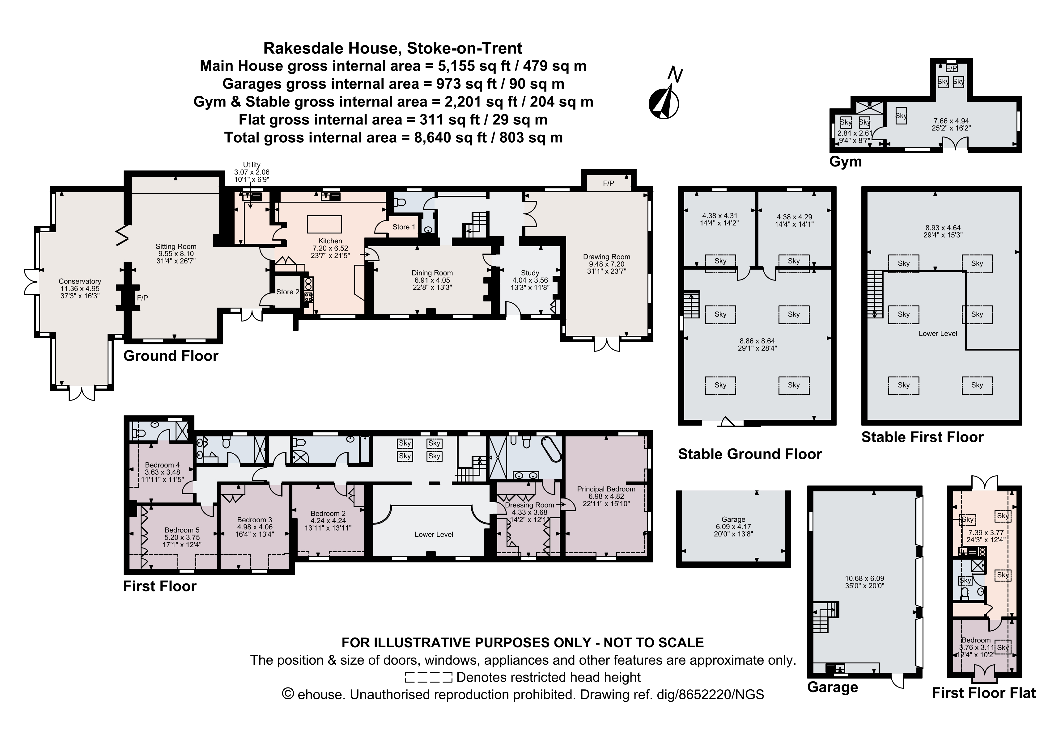A wonderful country house offering privacy in a beautiful tranquil setting, set within about 18 acres of gardens and grounds, with a triple garage and apartment above.DescriptionRakesdale House is approached from a quiet country road that runs alongside the meandering River Churnet with salmon stocked with trout.The private drive meanders through a small valley and arrives at the gateway to Rakesdale House. The house is set into the hillside and enjoys the most spectacular views from every room over the gardens and hillside beyond, all of which is part of the property. A series of streams and ponds set the background for this most tranquil situation.Rakesdale House is a most elegant and deceptively spacious house with a series of flexible reception rooms that flow beautifully ands would adapt well to many living situations. The house incorporates both historic architectural details and contemporary features. The house is approached from the driveway up York stone steps which open up to a large paved terrace area running the length of the front of the house.A portico leads to the front door which opens into a spacious, open plan reception room, with Viennese Parque flooring, part panelled walls and a wood burning stove with a stone surround. Double doors open into the spacious conservatory, offering a generous space for entertaining. The conservatory has two sets of double doors opening onto the gardens and terrace, and an inset contemporary log burner with log storage underneath. The conservatory also has central heating, offering a year round entertaining space which enjoys wonderful views.From the other side of the reception area, you move through into the luxurious fitted kitchen, made by Clive Christian, with large central island, a modular Aga offers the flexibility of using both oil and electric for both hobs and ovens. There is a pantry and utility room. A door leads into the dining room, which is full of natural light and has a vaulted ceiling, minstrel’s gallery and double height windows, still with the original stone mullions. From the dining there is access to the office/snug with a stone fireplace and a door leading outside onto the terrace.Beyond the office/snug is the impressive drawing room with a modern inglenook fireplace with a natural stone hearth and a wood burning stove. French doors, and a separate door lead outside onto the terrace and gardens. Within the central hall is a cloakroom and the staircase leading up to the minstrels galleried landing and first floor.The principal suite is a wonderful spacious room with a separate dressing room with built in wardrobes and units, a beautiful en suite bathroom with modern fixtures and fittings including a free standing bath and a wet room shower, along with a vanity double sink unit. There is a double bedroom offering in plenty of natural light and wonderful views through four sets of windows.Along the landing is a separate family bathroom with a spa bath and separate shower, Bedroom five which is a double, a separate airing cupboard two further double bedrooms and a shower room with a double vanity sink, and a double bedroom with an en suite shower room. All of the bathrooms have underfloor heating.Immediately surrounding the house are a series of areas providing outdoor entertaining space, with a parking area, along with an elegant separate Amdega conservatory. The current owners have added in a triple garage, with up and over electric oak doors. The garage has water and electricity connected, an internal door and window. A staircase to the side, leads up to a decking seating area with access into a one bedroom apartment, which is currently let out through Holiday Cottages. There is a sitting room and kitchenette, a shower room and a bedroom. A door provides access to a staircase leading into the main garage.OutsideOutside, Rakesdale House sits centrally in its own land which extends to about 18 acres of landscaped gardens and rolling hillside pasture. There is a separate area which has been created into a fire pit along with a building currently used as a gym. This space also has a shower room and WC and a wood burning stove. Situated on the terrace is an oak framed pergola, ideal for al fresco dining.As Rakesdale House is set in a valley that feeds into the River Churnet a series of spring fed streams and ponds run through the grounds, giving a great sense of tranquillity. Throughout the streams and ponds there is a wealth of aquatic plants growing in the dappled shade of the willow trees. The gardens are well planted with mature trees, shrubs and flowering plants, giving a good balance of light and shade.The land beyond, which is mostly hillside pasture and woodland, has many ancient trees, sandstone escarpments and promontories. Walking past the house, a grass walkway continues up the valley beside the water course, finally arriving at a secluded seating area that feels a world away. Walking back down this path towards the house, the views over the pond to the terrace in front of the house are quite stunning.Immediately after entering the gates of Rakesdale House, a secondary driveway to the left leads to a modern barn suitable for a number of purposes but currently configured with two large stables with a mezzanine above for storage providing excellent equestrian facilities.Beside this useful barn is a drained concrete hardstanding and muck bay, as well as a small fenced enclosure with a waxed rubber surface, for all year turnout. The area has a wealth of bridleways and quiet roads for hacking. This barn and the immediate surrounding land can split form the property for those who do not require the additional space. Please contact the agent for further information.LocationAlton is a delightful village set amidst the beautiful rolling Staffordshire countryside, built around the site of Alton Mansion, which was owned by the Earls of Shrewsbury and designed by Augustus Pugin. Amenities include a range of local shops,