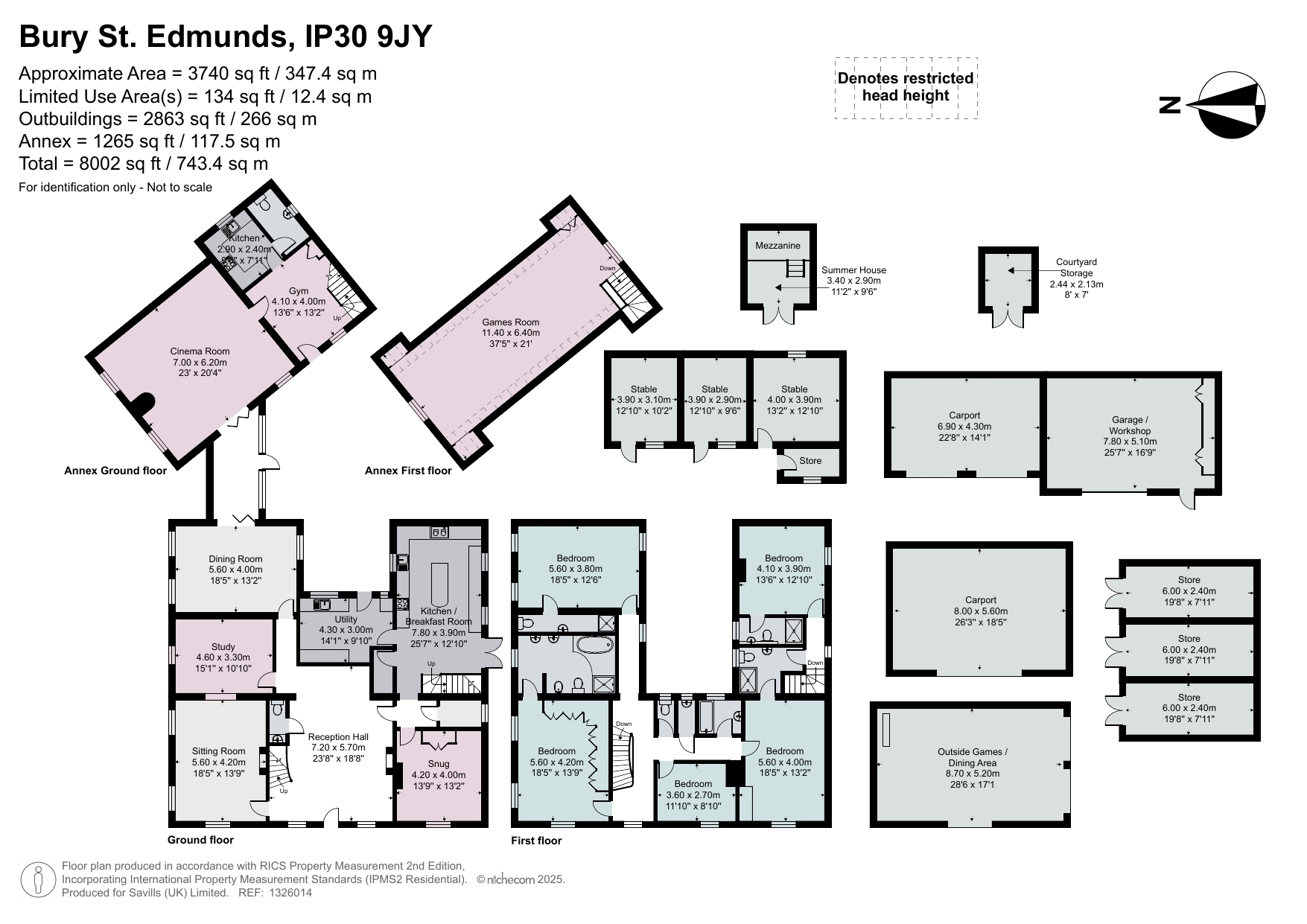 Greenway House is an impressive country residence with south facing views overlooking extensive gardens.DescriptionDating from the 1930's Greenway House is a substantial country house with south facing views overlooking extensive gardens. The property is constructed principally of brick with rendered elevations under a hipped roof. It has been much improved and enlarged over the years to provide exceptionally light and spacious accommodation of over 8,000 sq ft. A portico on the south front forms the main entrance.The property is entered via an impressive entrance hall, with a wood burning stove and curved oak staircase to first floor. Leading off the hall are the sitting room, snug, study and dining room. The bespoke Aga kitchen/breakfast room lies to the rear of the hall with a large island, fitted appliances and a range of base and wall mounted units with granite work tops. There is a secondary staircase and double doors out on to the terrace from the kitchen with the utility room off to one side.The annex is reached via a linked passage at the rear of the property accessed from the dining room. The downstairs space is currently used as an impressive cinema room. Next to the cinema is a cloakroom, kitchen and first floor games room which extends to 37 ft in length. The annex has potential for multi purpose uses such as secondary accommodation/office space.Above the principal reception rooms of the main house, with access via two separate stairs, lie the principal bedroom suite which benefits from fitted wardrobes and a stylish en suite. There are a further four bedrooms, three en suites, a family bathroom and a separate WC.OutsideDouble, electric gates give access over a sweeping driveway which leads to the front door. The beautifully landscaped gardens are surrounded by mature trees and hedging providing a high degree of privacy and seclusion. At the far end of the drive, next to the house, sits an oak frame cart lodge with bays for three vehicles and beside it lies the tennis court. An entertainment pavilion has been built alongside the cart lodge and is fitted with an integrated entertainment system, ambient lighting, a wide terrace and has a kitchen area —ideal for relaxing or entertaining.The property features beautifully landscaped lawns and beds that extend from the house towards a tranquil pond, complete with a wooden bridge and a delightful summer house.A separate drive branches to the right from the main entrance gates, running alongside the lawns and providing access to additional garaging/workshop space, a stable block, and useful storage units.LocationGreenway House lies in the small hamlet of Rougham just to the west of the small village of Beyton and about four miles east of the cathedral town of Bury St Edmunds. Bury St Edmunds offers an excellent range of amenities with schooling in the public and private sectors, extensive shopping facilities and a good range of leisure opportunities including health clubs, swimming pools, golf clubs, theatre, cinemas and museums. The university city of Cambridge is approximately 28 miles to the west and offers unrivalled schooling opportunities, excellent shopping and amenity facilities.There is convenient access to the A14 and the A11 and there is direct line access into London Liverpool Street from Stowmarket station taking approx. 80 minutes. London is approx. 84 miles to the south Stanstead Airport approx. 45 miles away.Square Footage: 8,002 sq ftAcreage:2.4 AcresAdditional InfoMains water, drainage & electricity.