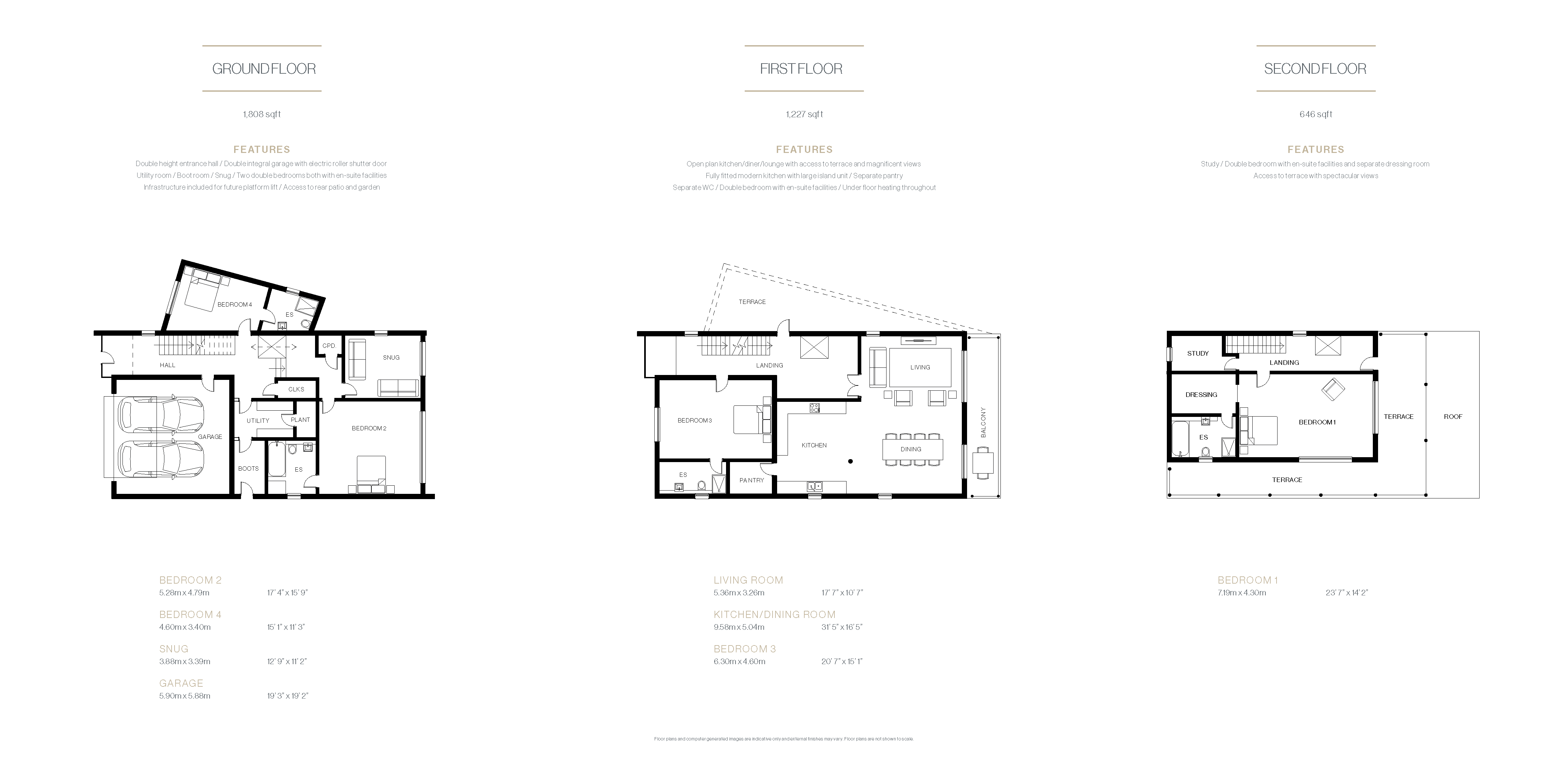 Tomline View. Balfour Place is a prestigious development of five unique architectural designed homes with an unrivalled specification and modern finishes mixed with contemporary design, situated on Cliff Road with sea views over an historic golf course, set in an Area of Outstanding Natural Beauty and all just 1 1⁄2 hours by train to London Liverpool Street via Ipswich. An individual Architect designed three storey house extending to 3,681 square feet with enviable coastal views across the Ferry Golf Course to Bawdsey Manor on two elevations and unrivalled views across the Kingsfleet course and the Deben Estuary from the front elevation. The imaginative accommodation comprises 4 double bedrooms all with en-suite, an open plan lounge/dining room/kitchen with pantry and utility room, boot room, snug and double garage. A further feature of Tomline House is the first floor terrace which has lovely views across the Deben Estuary. The top floor 'crow's nest' features a double bedroom, en-suite, dressing room, study and unbelievable roof top terrace to two elevations. The exterior finished with low maintenance materials and Aluminium framed powder coated, double glazing.