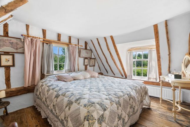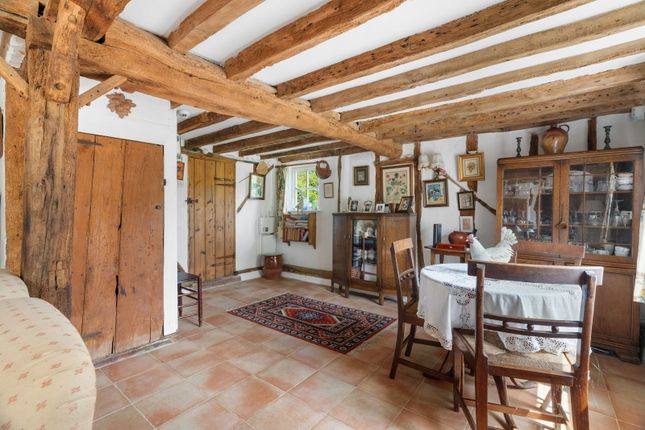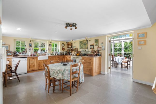 The AccommodationHidden away on a peaceful country lane, Rose Cottage is an enchanting thatched home that perfectly blends period character with modern comfort all set within beautifully established gardens that border open countryside. Behind the distinctive thatched roof, the accommodation unfolds into a warm and wonderfully characterful interior. Step inside Rose Cottage and you're instantly wrapped in a sense of warmth, character and countryside charm. This is a home that wears its history with pride, from the wealth of exposed beams and timber floors that have been polished by generations past.The ground floor offers a wonderfully traditional layout, with a cosy and characterful sitting room at its heart. Here, the impressive inglenook fireplace with iron hood creates a natural focal point, perfect for winter evenings by the fire. Natural light streams through cottage-style windows, giving this space a soft, comforting ambience, enhanced by low ceilings, limewashed walls and oak timbers.Beyond the sitting area, the dining space flows effortlessly into a welcoming, farmhouse-style kitchen — a room clearly designed to be lived in and loved. Fitted with bespoke Elm cabinetry, a butler sink and range cooker, it's full of rustic appeal, while triple-aspect windows frame leafy green views of the gardens. From here, French doors open through to the stunning garden room/conservatory a bright and airy space with a glazed roof and wraparound windows that create a truly immersive connection with the outdoors. Ideal as a breakfast room, studio or place to unwind with a book in the sunshine. Tucked behind the kitchen, a practical utility/boot room provides excellent space for laundry and storage, with a door leading out to the rear garden.The ground floor also benefits from a bathroom complete with roll-top bath and stained-glass accents, offering flexibility for guests or single-level living.Head upstairs via the charming wooden staircase and you’ll find three beautifully individual bedrooms, each full of period quirks and angled ceilings. The principal bedroom enjoys dual-aspect views and generous proportions, while the two additional rooms make perfect guest bedrooms or spaces for children, home working or hobbies. All rooms enjoy natural light, original floorboards, and views of the surrounding gardens and countryside. A further shower room with twin basins and decorative tiling completes the first-floor accommodation.OutsideThe gardens feel like something from a storybook — a winding Sandstone slab path leads through lawns, rose beds, fruit trees and native planting, down to a shaded pond framed by trees and wildflowers. Mature hedging offers total privacy, and the overall effect is one of peace, seclusion and gentle country life. In addition, there is an outbuilding providing a useful storage area and log store.One of the most appealing features is the detached barn-style outbuilding, set across from the cottage with its own double garage, and an excellent studio with shower room above — ideal for guests, home working or income potential (subject to permissions). The rustic external staircase, weatherboarding and pitched roof echo the cottage’s historic charm.