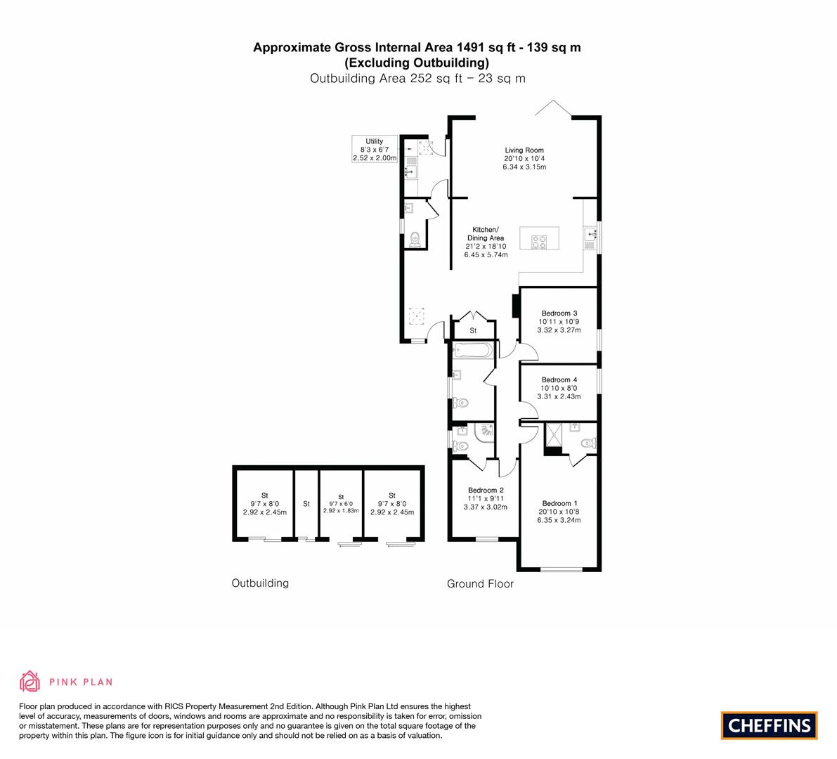A stunning and well presented four bedroom detached bungalow, in the sought after village of Steeple Bumpstead. The property benefits from many fine features including a generous living area with bi-fold doors into a beautiful rear garden, modern open plan kitchen/diner, two en suites and large driveway with ample parking. (EPC Rating C)Steeple Bumpstead is a popular village which lies on the Essex and Suffolk borders approximately three miles South of Haverhill and 20 miles from Cambridge, 13 miles from Saffron Walden and 19 miles from Bury St Edmunds. Steeple Bumpstead benefits from facilities including, two public houses, village store, a well regarded primary school and nursery.Entrance HallTiled flooring, open plan to:Living Room (6.35m x 3.15m (20'10 x 10'4))Bi-folding doors opening to rear garden, multi fuel burner.Kitchen/Dining Area (6.45m x 5.74m (21'2 x 18'10))A range of base and eye level units and central island with integral Neff appliances including fridge/freezer, dishwasher, five ring induction hob with external ventilation over, eye level double oven and grill, stainless steel sink. Tiled flooring, radiator, window to side, storage cupboard housing gas fired boiler, door to hallway.Utility (2.51m x 2.01m (8'3 x 6'7))Wall and base units, stainless steel sink, plumbing for appliances, tiled flooring, velux window to ceiling, radiator, door to garden.WcTwo piece suite comprising low level wc, pedestal hand wash basin, radiator, tiled flooring, window to side.HallwayLoft access, doors to:Bedroom One (6.35m x 3.25m (20'10 x 10'8))Fitted wardrobes, radiator, window to front, door to:EnsuiteThree piece suite comprising shower enclosure, low level wc, pedestal hand wash basin, tiled flooring, extractor fan.Bedroom Two (3.38m x 3.02m (11'1 x 9'11))Window to front, radiator, door to:EnsuiteThree piece suite comprising shower enclosure, low level wc, pedestal hand wash basin, tiled flooring, extractor fan, window to side.Bedroom Three (3.33m x 3.28m (10'11 x 10'9))Window, radiator.Bedroom Four (3.30m x 2.44m (10'10 x 8'0))Window, radiator.BathroomThree piece suite comprising panelled bath with shower over, low level wc, pedestal hand wash basin, tiled flooring, window to side.OutsideTo the front of the property there is a large shingle driveway ample for multiple vehicles. A pathway leads to the front door and a pedestrian gate leads to a side gate to the rear garden.Upon leaving the property through the bi-fold doors there is a generous South Facing rear garden with a large paved patio area for seating with steps down to the remainder of the property which is beautifully landscaped and laid to lawn. There are a variety of fruit trees including cherry plum, apple, mulberry and pear trees. A large timber outbuilding sits to the rear of the garden with power and lighting connected with two additional sheds and a greenhouse which will remain.Agents NoteFor more information on this property, please refer to the Material Information brochure that can be found on our website.Special Notes:1. None of the fixtures and fittings are included in the sale unless specifically mentioned in these particulars.2. Please note that none of the appliances or the services at this property have been checked and we would recommend that these are tested by a qualified person before entering into any commitment. Please note that any request for access to test services is at the discretion of the owner.3. Floorplans are produced for identification purposes only and are in no way a scale representation of the accommodation.Viewings By appointment through the Agents.