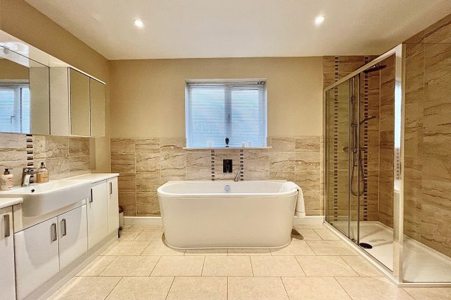 Located in a cul-de-sac position, backing onto woodlands, is this detached, extended five bedroom family home offering versatile accommodation, with garden, garage and off road parking. Accommodation comprises a spacious entrance hall, open-plan kitchen/dining/family room, separate sitting room and downstairs cloakroom with four bedrooms and the family bathroom on the first floor, and a further bedroom, dressing room/study and cloakroom on the second floor. An internal viewing is strongly advised to appreciate the quality of the accommodation on offer.Entrance HallFront door with two full height panel windows either side, lead into the spacious entrance hall with fitted cupboard with sliding doors, stairs to first floor with under stairs storage cupboard, two sets of double doors into the kitchen/dining/family room and sitting room, as well as door to the downstairs cloakroom and internal door to the garage.Sitting RoomWindow and French doors to rear, overlooking and leading into the garden, feature fireplace.Kitchen/Dining/Family RoomTriple aspect room with two windows to front, one to side and French doors to rear, overlooking and leading into the garden. To one side there is space for a family dining table, as well as a comfy seating area, ideal for entertaining with three velux windows providing an abundance of natural light. To the front of the room is the stunning kitchen with a range of matching base and eye level units with worktops over, central island with worktop over and matching units below, sink, built-in double oven, hob with extractor over and integrated appliances, including a full length fridge, full length freezer, dishwasher and washing machine.Downstairs CloakroomWindow to front, hand wash basin and WC with modern storage cupboards.First Floor LandingWindow to rear overlooking the garden, cupboard housing hot water tank, stairs to the second floor and doors to four of the bedrooms and the family bathroom.Bedroom OneWindow to rear, overlooking the garden, dressing area with two sets of triple fitted wardrobes, storage cupboard and door to:En-Suite Shower RoomShower cubicle, hand wash basin and WC with a range of modern fitted storage units.Bedroom TwoWindow to front, two sets of double fitted wardrobes.Bedroom ThreeWindow to rear, overlooking the garden.Bedroom FourWindow to front.Family BathroomWindow to front, freestanding bath, walk in shower cubicle, hand wash basin with modern storage units below and mirrored storage units above, WC.Bedroom FiveStairs leading up into bedroom five with three velux windows and space at one side for a bed, and the other, a seating/relaxing area. Door to:Inner HallOpening through to the dressing room/study, cloakroom and loft space.Dressing Room/StudyDual aspect room with two velux windows.CloakroomHand wash basin and WC.OutsideThe front of the property has been block paved, providing off road parking for multiple vehicles. There is a integral garage with an electric door, with light and power connected.There is a fantastic patio area to the rear of the property, ideal for outdoor entertaining, with plant and shrub borders. Steps leave down to a further patio area enclosed by decorative iron wrought fencing and trees. The rear garden overlooks The Heath with fantastic views over the woodland.Important InformationTenure - Freehold.Services - we understand that mains gas, electricity, water and drainage are connected to the property.Council tax band tba.EPC rating C.Our ref: Jb/elr.LocationMartlesham Heath is a fantastic development between the towns of Ipswich and Woodbridge. The village has many amenities, including a doctors, pharmacy, butchers, bakery, Morrisons Daily, church, public house, primary school and a village green with pavilion. In addition, there is an aviation museum, as well as Martlesham Retail Park with Tesco Extra, Next, M&S Food Hall, diy stores, and other outlets.Highly regarded primary and secondary schools are within easy reach, as is the popular market town of Woodbridge which sits along the River Deben, with an array of local and national shops, boutiques, restaurants and bars. For the commuter, the A12/A14 are both within easy reach, as is the mainline train station at Ipswich, with a direct link to London Liverpool Street.DirectionsUsing a SatNav, please use IP5 3SF as the point of destination.DislaimerIn accordance with Consumer Protection from Unfair Trading Regulations, Marks and Mann Estate Agents have prepared these sales particulars as a general guide only. Reasonable endeavours have been made to ensure that the information given in these particulars is materially correct but any intending purchaser should satisfy themselves by inspection, searches, enquiries and survey as to the correctness of each statement. No statement in these particulars is to be relied upon as a statement or representation of fact. Any areas, measurements or distances are only approximate. New build properties - the developer may reserve the right to make any alterations up until exchange of contracts.Anti-Money Laundering RegulationsIntending purchasers will be asked to produce identification documentation at a later stage and we would ask for your co-operation in order that there will be no delay in agreeing the sale.