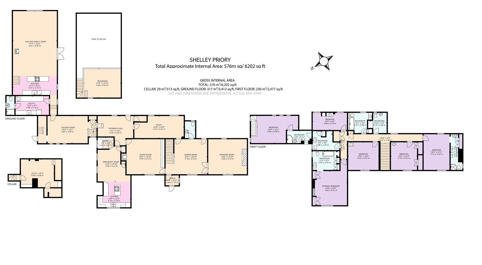 An impressive 18th century country house offering extensive accommodation in a delightful setting generating additional income.DescriptionShelley Priory is a delightful Grade II Listed farmhouse, dating back to the 18th Century in the main, with earlier origins. The property presents painted brick elevations under a peg tile roof, with four gault brick chimney stacks. The accommodation is arranged over two floors, with entrance hall and door to the kitchen/breakfast room, with four oven oil-fired aga and range of floor and wall units with central island. Living room with wood burning stove and built-in book and display shelving. Dining room with staircase to first floor and front porch, drawing room with open fireplace with arch niches either side. Cloakroom and study. From the hall are steps down to the sitting room and access to the extensive cellar area below, with connecting door to the entertainment barn with utility room, built-in cupboards and sink. Double height party barn with built-in kitchen units, floor storage cupboards and island unit with built-in cooker and cupboards. Double height ceiling with magnificent gable end window and glazed double door to the terrace. Jotul wood burning stove. Steps up to mezzanine floor above.First floor landing. Bedroom one, with en suite dressing room and shower, together with a range of built-in cupboards. Bedroom two with sink and built in wardrobe cupboards, bedroom three with built-in sink and cupboards, shower room and bathroom. Rear landing off, bedroom four with built-in cupboard and airing cupboard. Principal bedroom with built-in cupboards and archway to en suite bathroom with bath, WC and sink. Shower room with connecting door to the rear part of the house. Walk- through to fully equipped bathroom and bedroom beyond with return staircase to the ground floor.OutsideGravelled drive to an extensive parking and turning area, along with storage building and three-bay open fronted cart lodge with tile roof and weatherboarded elevations. Extensive terrace to the rear of the house and beyond hedge and fence and deep rose bed. Yew hedging and cast-iron trellising with gate leading to formal rose garden area with central sculpture. Scrolled cast iron gate leads out onto the grass and parkland beyond.Rose BarnStunning double height open plan living space with exposed timber trusses and ceiling timbers. Open plan to the kitchen with a range of floor units incorporating double butler’s sink, space and plumbing for washing machine, fridge, built in cooker and hob. Glazed double French doors to the pool courtyard with exposed timber floors and wood burning stove. Built in book and display shelves. Shower. Spiral staircases at both ends to two separate mezzanine bedrooms, one with glazed gable overlooking the garden. Courtyard with swimming pool (40’ x 20’ 12m x 6m) with covered logia. Adjacent games room (15’ x 12’ 4.5m x 3.5m), inner pool area with flag surround and lawn. Pool/games room/entertainment room (20’ x 30’ 6m x 9m) with folding glass doors both sides, fireplace with woodburning stove, bar and limestone floor.Court BarnDoor to kitchen with range of units incorporating butler’s sink, plumbing for dishwasher and washing machine, induction hob with extractor over and breakfast bar. Open plan to the stunning full-height barn with exposed trusses and ceiling timbers. Magnificent deep inglenook fireplace with woodburning stove and exposed brickwork and wall timbers. Built-in book and storage shelves with exposed wood strip floor. Bedroom one with built-in sink and glazed elevation with door to the logia and rear. Bedroom 2 with exposed ceiling timbers and access to airing cupboard. En suite bathroom with bath, shower and washbasin. Ground floor shower with shower, wash basin and WC, with steps up to the mezzanine above with double bed balustrading and porthole window.Agricultural BarnMeasuring 150’ x 60’ (45.4m x 18m) with adjoining storage barn, breeze block with asbestos cement roof (20’ x 60’) (6m x 18m). Weatherboarded and concrete tile storage barns (60’ x 15’ and 60’ x 15’) (18m x 4.5m) opening onto brick and shingled courtyard.LocationShelley Priory is situated in unspoilt countryside in the Suffolk/Essex borders midway between the villages of Stoke by Nayland, Polstead and Shelley. Local amenities can be found approximately four miles away in the market town of Hadleigh. Colchester and Ipswich provide for more extensive needs, as well as direct rail communications to London Liverpool Street station with trains from Colchester taking about 45 minutes. Manningtree lies eight miles to the east with trains to London Liverpool Street taking 55 minutes. The A12 dual carriageway is approximately 5.5 miles away giving access to London as well as the national motorway network.Square Footage: 6,202 sq ftAcreage:6.5 AcresDirectionsTravelling from Higham towards Stoke by Nayland and approximately 250 yards beyond the humpback bridge, turn right signposted Withermarsh Green. Continue on this road for approximately 2 miles. At the t-junction turn left and Shelley Priory will come up on the left-hand side after approximately half a mile.What3words:///hike.jumbo.appleIpswich – 11 milesColchester – 12 miles (London Liverpool Street 45mins, Hadleigh – 4 miles, Manningtree – 8 miles (London Liverpool Street 55 mins)Additional InfoShelley Priory: Oil-fired central heating. Private drainage. Mains water.Rose Barn: Electrical heating system. Private drainage, mains water.Court Barn: Oil- fired central heating. Private drainage, mains water.Agents Note: Rose Barn and Court Barn generate an annual return of over £60,000 per annum. The agricultural buildings are let for £17,100 per annum. There is potential to initiate further conversions and resultant income.