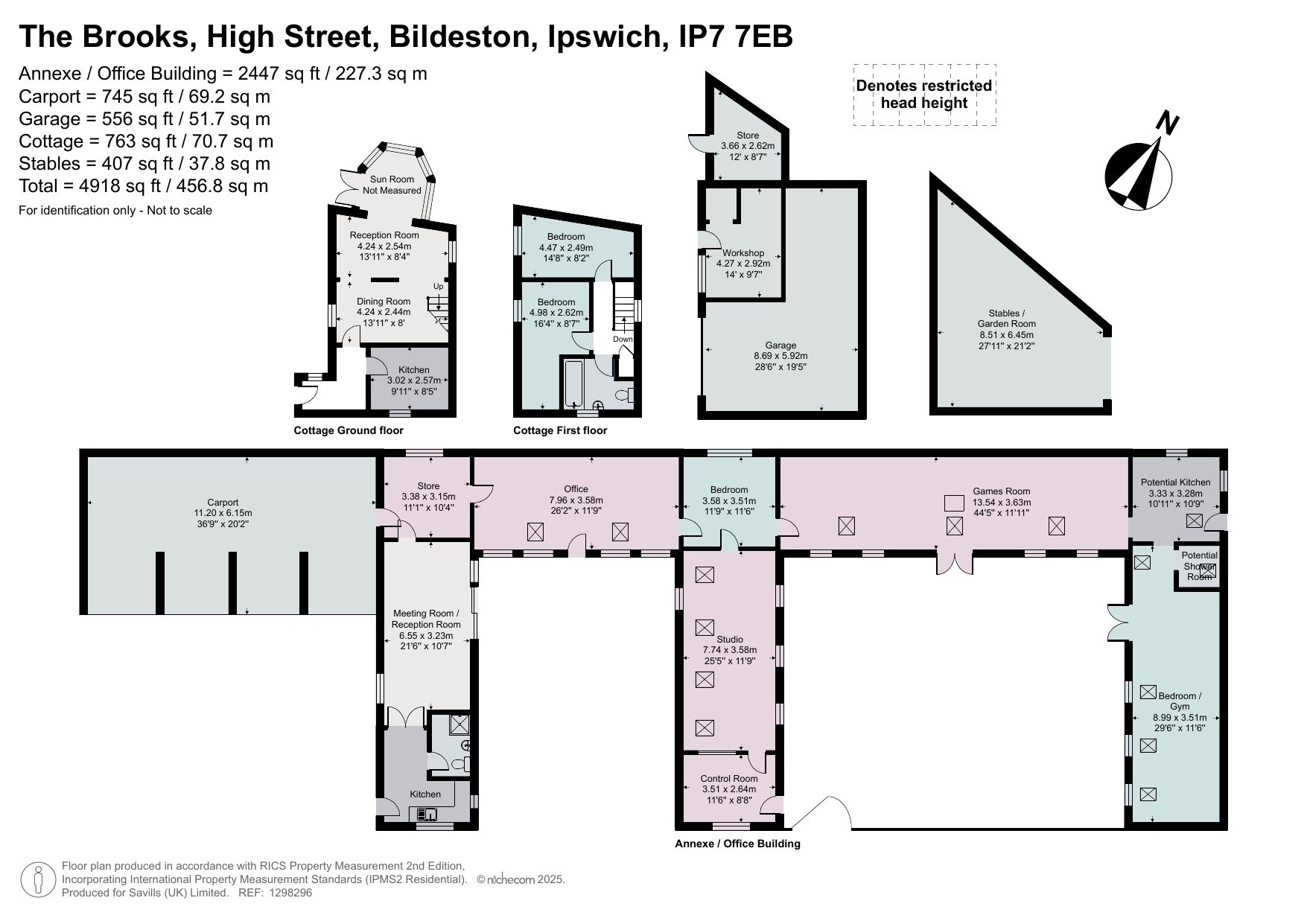 A substantial & flexible non listed period property with separate accommodation and versatile outbuildings tucked away within the village.DescriptionSituated in an incredible 6-acre setting yet tucked behind the high street of the village, The Brooks is an exceptional unlisted period house of elegant proportions and versatile accommodation. Believed to date back to the 16th-century then having been extended and gentrified in the early 18th-century with later Victorian alterations, the property is graced with considerable natural light and wonderful original features to include large sash windows, picture rails and attractive fireplaces in almost all rooms (including the cloakroom!).Arranged over three floors, the accommodation extends to around 4,200 sq ft comprising a large reception hall with attractive staircase to the first floor, ornate stained-glass interior windows and large cloakroom. The drawing room enjoys a double aspect, with doors to the south giving access to the gardens and marble fireplace with wood-burning stove.The dining room has a fabulous bay window, with bespoke window seating, fireplace with wood-burning stove flanked by handmade cupboards and shelving and a snug with open fireplace. The Aga kitchen has a range of handmade painted shaker-style units with matching display cabinets, solid wood worktops and twin Belfast sink.There is a study/hobbies room with attractive brick floors and an arched window overlooking the walled courtyard and a utility/laundry room with further base and eye level storage units and door to the gardens.On the first floor is a large, elegant landing leading to the triple-aspect principal bedroom with a north, east and southerly orientation and bespoke wardrobes, four-poster bed and attractive fireplace. The guest bedroom has lovely views of the gardens, fireplace and its own en suite bathroom. There are three further good-sized double bedrooms on the first floor, served by a large traditional bathroom with ball-and-claw bath and large walk-in shower cubicle.On the second floor are two further double bedrooms, sharing a large bathroom, with corner bath and separate shower cubicle.Gardens and GroundsThe Brooks is located centrally within this highly regarded and well-served village, yet somehow providing a mature, rural environment to enjoy the copious levels of wildlife and tranquillity.There are a variety of stunning mature trees, to include field maple, oak, willow, walnut and ash, together with an outstanding redwood (believed to be planted by Rev Professor Henslow, mentor to Charles Darwin).Mown pathways lead through the grounds flanked by areas of re-wilding and large lawned areas. Closer to the property there are more formal gardens, with orchard and active vegetable gardens, together with an enclosed walled courtyard by the house and further partially walled seating area.To the northern boundary is a public footpath, and whilst the path forms part of The Brooks, it is clearly fenced and well-screened from pedestrians, whilst the council make an annual visit to maintain and clear the pathways – the footpath leads out onto neighbouring farmland, so there are additional walks away from The Brooks.The OutbuildingsAn important part of The Brooks will no doubt be the large range of attractive red-brick-and-flint outbuildings. The e-shaped buildings provide considerable versatility for those seeking designated workspace, studio or additional annexe or ‘holiday let’ accommodation.Extending to almost 2,500 sq ft and arranged on one single level, presently the arrangement is an office ‘wing’, with kitchen, shower room, sitting/board room, filing room and large 26’ office with doors to the courtyard. There is a further interconnecting room, presently a bedroom, which leads to a studio with screened booth/reception hall and an impressive open-plan games/party room, which measures 44’ with central all-sided wood-burner on brick hearth, together with feature arch windows and doors to a further courtyard.There is provision for a further kitchen/boot room should it be required, with plumbing and electrical points, together with a room that was earmarked as a shower room, next to the 29’ gymnasium.There is a detached staff cottage requiring renovation which extends to around 800ft2, built of brick and timber construction. Whilst this cottage is rarely used it could be renovated to suit visiting relative or ‘Airbnb’, presently comprising kitchen, dining/sitting area and conservatory, with two bedrooms and bathroom above.There is a modern timber-framed garage, with neighbouring workshop and store, with covered store/stable adjoining.LocationBildeston is an attractive and well-regarded village with a delightful mixture of period architecture and a thriving local community, supported by a good range of local facilitiesto include the award-winning Crown Hotel & Restaurant, licensed village store/post office, together with schooling, doctor’s surgery, tennis club and active church.Mentioned in the Domesday Book, Bildeston thrived in the 15th and 16th centuries as a wool town, set in the picturesque countryside of the Brett Valley, easily accessible to the nearbytowns and villages of Hadleigh, Lavenham, Stowmarket and Bury St Edmunds. The mainline rail service running to London Liverpool Street station is accessible from Stowmarket, Colchester and Manningtree.Square Footage: 4,265 sq ftAcreage:6.4 AcresDirectionswhat3words\harsh.skirt.appointsAdditional InfoMains water, drainage and electricity. Oil-fired heating.