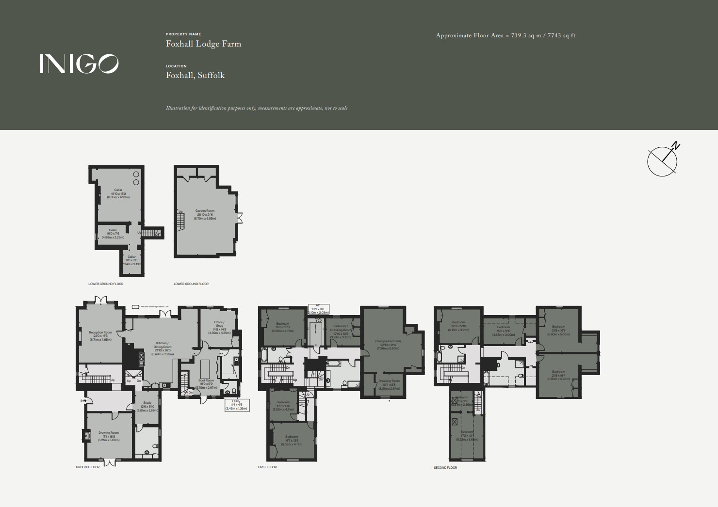 This imposing late Georgian former hunting lodge is set amid almost 26 acres of meticulously landscaped gardens, parkland, water meadows, swimming ponds and woodland in east Suffolk, close to both Ipswich and the Suffolk coastline. Unlisted, the home combines the original Georgian lodge with Victorian and early 21st-century additions, all created to reflect the original Georgian architectural design. Internal accommodation spans almost 7,500 sq ft, with eight bedrooms and a series of characterful living spaces, where box sash windows frame incredible views from every aspect. The grounds also encompass a series of large outbuildings, including a party barn, a tennis court, a paddock and a kitchen garden with an orchard. Transport links are excellent: Ipswich train station is just 15 minutes’ drive away, where trains to London Liverpool Street take 65 minutes.Setting the SceneA long driveway, shared with adjacent farm buildings, leads directly from Purdis Road to the south, extending immediately onto Foxhall Lodge Farm’s private driveway, which culminates in a wide gravelled parking area surrounded by mature trees, in front of the main house. The entire grounds are surrounded by mature trees and woodland, making this an immensely private sanctuary, with no surrounding noise.The house is built on an east-west axis, with the main elevation facing west. The house’s three phases of construction are all roughly equal in size, with the original Georgian range comprising what is now the north of the house, the Victorian range, the south, and the early 21st-century addition to the rear, facing east towards the main swimming pond and woodland beyond. The main east-facing elevation, comprising both Georgian and Victorian structures, is built from red brick with a hipped tile roof, and festooned with climbing roses and wisteria. The rear later addition is lime rendered, creating an architecturally compelling yet sensitively designed home.The Grand TourEntry to the main entrance hall, where walls are papered and in many spaces throughout the house, with floral-patterned wallpapers. Ceiling heights are generous, typical for Georgian-era architecture. There is a dogleg staircase hall and drawing room in the north range and a less formal sitting room in the south-facing range, with a cosy wood burner set in the hearth. Both reception spaces have French windows that open to the gardens, and there are also two study rooms on this floor, and two WCs.Service areas are brilliantly spacious, with the kitchen and dining room over 25 ft square, with additional French windows opening to incredible views down to the water meadows beyond. Bespoke panelled cabinetry incorporates a fitted dresser for china and glassware along one wall, and a freestanding island with stone worktops. A butler sink is set beside a window, and a five-door blue enamel Aga is positioned in the tiled hearth, with a further electric oven for day-to-day convenience. Adjacent is a brilliantly designed boot room and a laundry room, both with matching bespoke cabinetry, and a second study.The lower-ground floor is a vast space, almost 30 feet deep, and currently used as an informal den and cinema room, though it could have various uses, including a home gym. Again, thoughtfully placed French doors open from here to a flagstone terrace and views of the swimming pond.The first floor is home to the primary sleeping quarters, with three westerly bedrooms sharing a spacious bathroom, while the principal bedroom suite is set in the modern addition of the house, to the east. A spacious room with wonderful views and room for a seating area, the suite incorporates two separate dressing rooms and an en suite bathroom from West One Bathrooms, using the finest materials including Carrara marble and brushed brass fittings.The uppermost storey is in two sections, each with its own staircase. The south-facing Victorian range is arranged as a charming timber-clad bipartite space, with a pitched roof and a dividing screen separating the two areas, currently used as a charming TV room with an additional small sleeping area. The north range is reached via the main staircase and has four further double bedrooms and two additional spacious shared bathrooms.The Great OutdoorsFoxhall Lodge Farm is brilliantly positioned at the centre of its almost 26 acres of grounds, forming something of a small private estate with smallholding capabilities. The estate unfolds into rolling parkland from the driveway, with open fields on either side, leading down to a picturesque Mill River and a spring-fed lake to the north of the grounds.The surrounding landscape includes nine acres of mature woodland, filled with bluebells in springtime, with the trees predominantly oak, chestnut, and sycamore, with a wonderful private pathway that meanders along the curtilage.A hard tennis court and a productive kitchen garden with a Rhino greenhouse further enhance the grounds; the latter also provides flowers for cutting, along with many vegetables and fruits for the house and includes a small orchard with lots of fruit trees. A fenced paddock is also positioned to the west of the land.The formal gardens closest to the house feature a sunken garden, with well-stocked shrub and herbaceous borders. The south-facing terrace, accessible from both the drawing room and the kitchen, provides an ideal setting for outdoor dining and summer entertaining. There is also a vast natural swimming pond between the house and the woodland, fed by the natural spring, and a further spacious seating terrace opens from the lower ground floor’s informal sitting room.Foxhall Lodge Farm also has a range of useful outbuildings to the south of the grounds, including a storage barn, an open cart lodge, and a large modern timber-framed barn with weatherboarded elevations and double sliding doors, ideal for a variety of uses, including large parties. The outbuildings also include a barn, complete with a lean-to and a