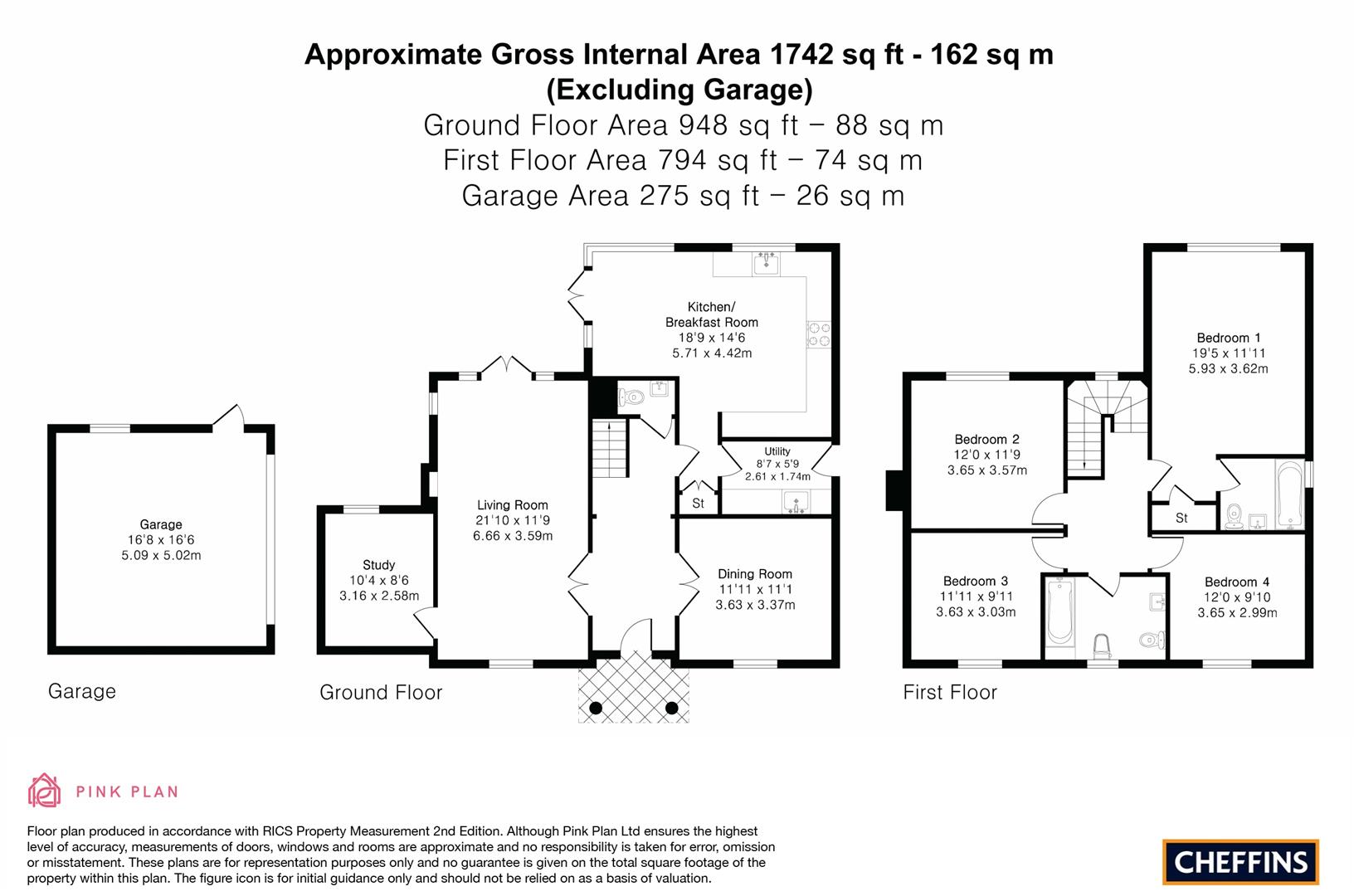 An impressive and well presented 4 bedroom detached family home set in the sought-after village of Stetchworth, with excellent local amenities and easy access to both Newmarket and Cambridge. The accommodation comprises 3 reception rooms including a living room, dining room and study along with a good sized kitchen/breakfast room and a separate utility room. The first floor features four bedrooms, including a principal bedroom with an ensuite plus a family bathroom. Outside, the property benefits from a detached double garage, a driveway providing space for 3/4 vehicles and an enclosed rear garden.Entrance HallWith a door to the front, 2 radiators, alarm panel, stairs up to the first floor landing.CloakroomWith a low level WC, wall mounted wash hand basin, tiled flooring, radiator.Living RoomA triple aspect room with a double glazed sash window to the front aspect, a window to the side aspect and French doors opening onto the rear garden with 2 further glazed windows. Accessed via double doors from the entrance hall with a radiator, open fireplace with marble hearth and wooden surround, picture rails.StudyWith a radiator, picture rails, double glazed sash window to the rear aspect.Dining RoomAccessed via double doors from the entrance hall with 2 radiators, picture rails, double glazed sash window to the front aspect.Kitchen/Breakfast RoomWith a beautiful range of matching wall and base units with work surfaces over, 1.5 bowl sink, centre island, integral appliances including a built-in dishwasher, 5 ring Neff electric hob with Neff extractor hood over, Neff eye level double electric ovens, built-in fridge and freezer, tiled flooring, tiled splashbacks, inset spotlights, radiator, heated towel rail, double glazed sash windows overlooking the rear garden and double glazed French doors leading out.Utility RoomWith a range of matching wall and base units with work surfaces over, sink, oil fired boiler, heated towel rail, stable style door opening onto the rear gardens.First FloorLandingWith access to the loft space, radiator, window overlooking the rear garden.Bedroom 1With double glazed sash windows overlooking the rear garden, radiator, built-in linen cupboard.Ensuite BathroomWith a low level WC, pedestal wash hand basin, side panel bath with rainfall shower over and glass screen, heated towel rail, tiled splashbacks, tiled flooring, double glazed sash window to the side aspect.Bedroom 2With a radiator, double glazed sash window to the front aspect.Bedroom 3With a radiator, double glazed window to the rear aspect.Bedroom 4With a radiator, double glazed window to the front aspect.Family BathroomWith a low level WC, pedestal wash hand basin, bidet, side panel bath with shower over, heated towel rail, half tiled walls, tiled flooring, double glazed sash window to the front aspect.OutsideTo the front of the property is a block paved driveway with parking for 3/4 cars and enclosed by hedgerow borders.Side gated access leads into the established rear garden which is enclosed by timber fencing, laid to lawn and with various flower and mature shrub borders, a patio seating area, outside tap and power point. To the right hand side is an oil tank and coal bunker.Detached Double GarageWith an electric up and over door, rear pedestrian access door, power and light.Sales Agents NotesFor more information on this property, please refer to the Material Information Brochure on our website.