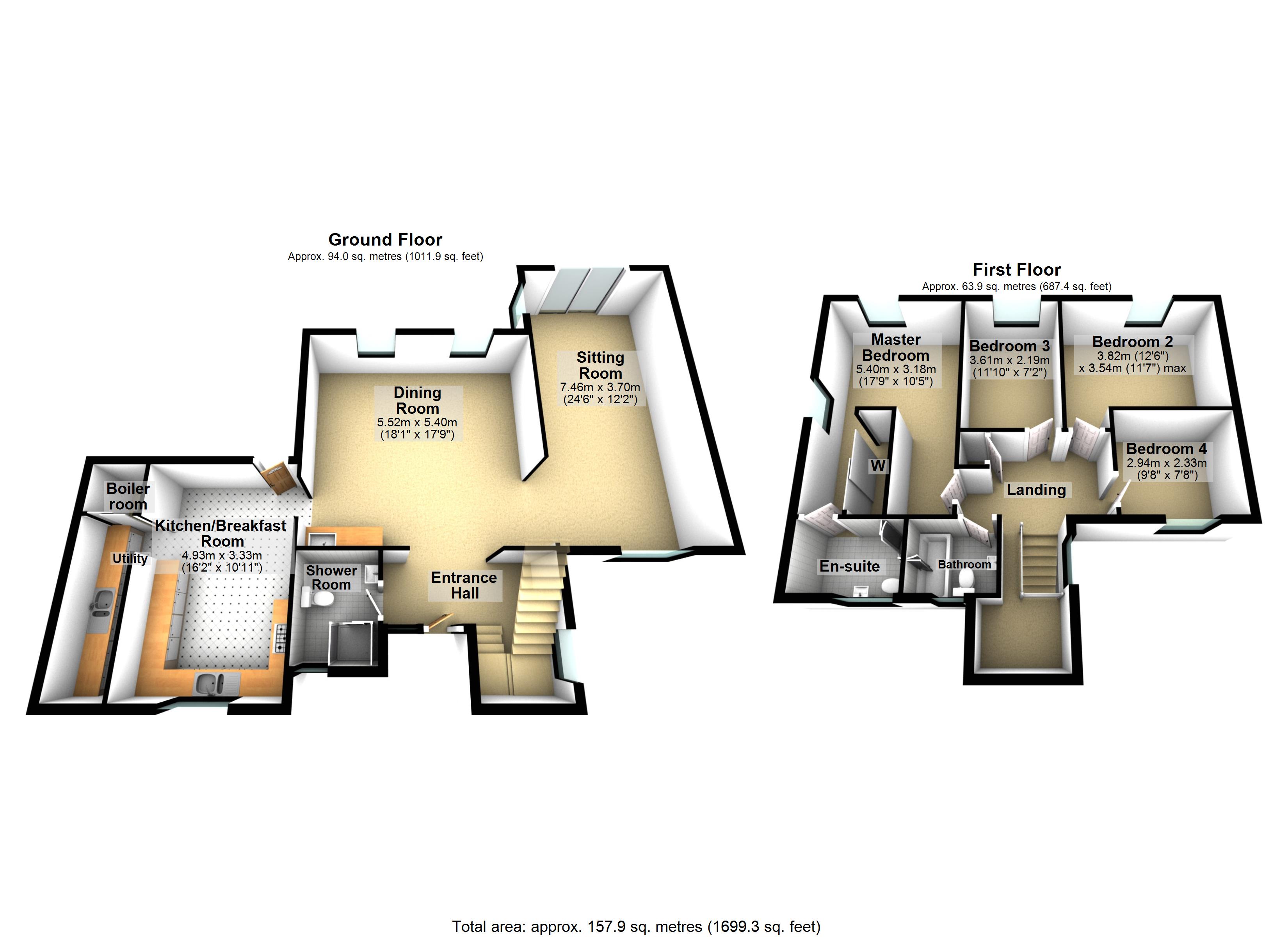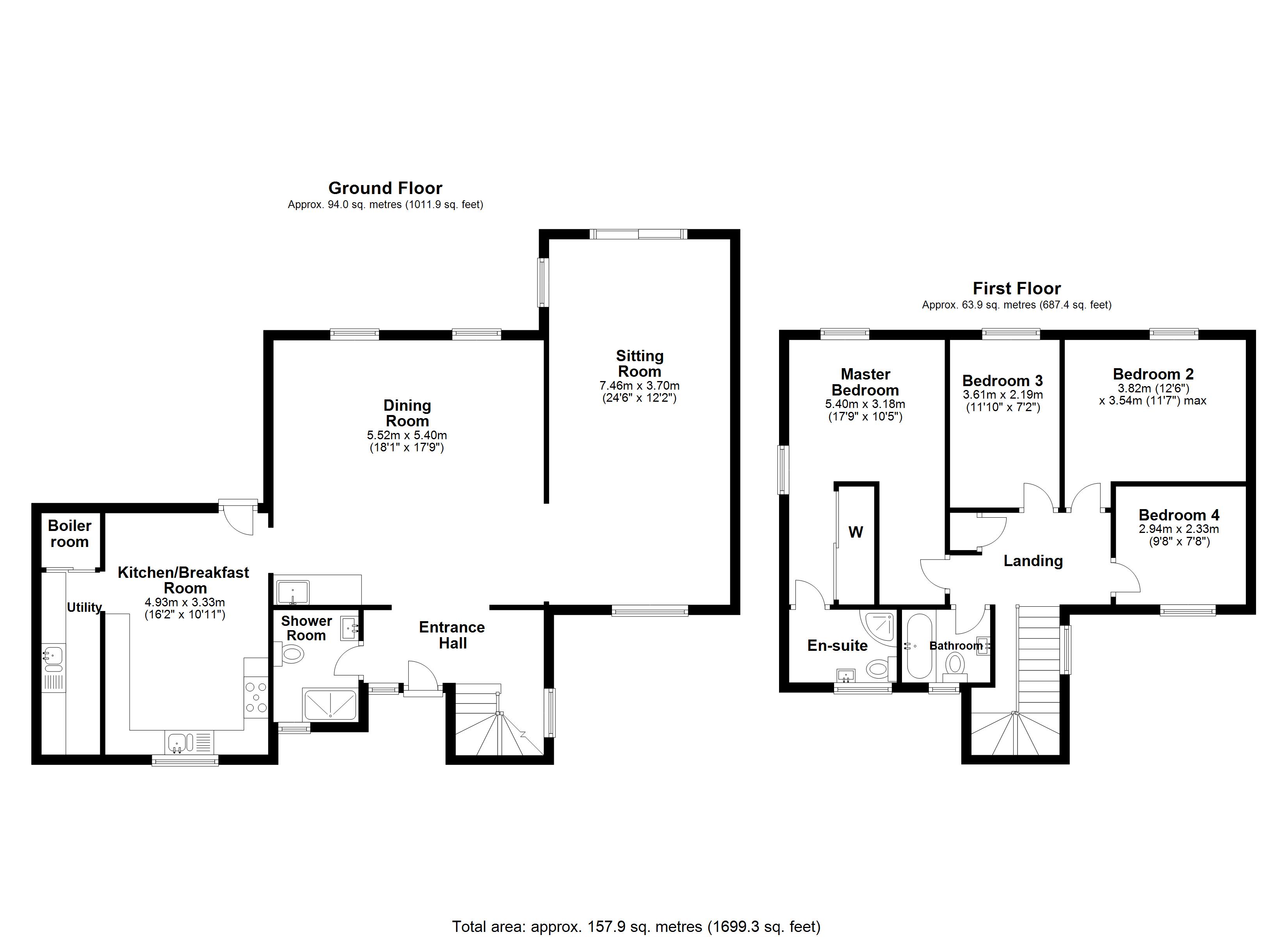 Situated in the pretty village of Westleton lies this truly stunning four bedroom detached house which has been renovated to an exceptionally high standard by the current owners. This incredible family home occupies a generous corner plot and benefits from double glazing throughout, underfloor heating where stated, a large frontage and is set back from the road, off-road parking for four vehicles, and a beautifully landscaped rear garden with an undercover barbecue / prep area.Viewing is essential to fully appreciate the quality of the finish and the space the property has to offer with accommodation comprising a spacious and inviting entrance hall; stylish ground floor shower room; impressive 18ft dining room with kitchenette area; 24ft triple aspect sitting room; contemporary kitchen / breakfast room with integrated appliances; utility room; first floor landing; an impressive master suite consisting of a 17ft dual aspect bedroom with stylish en-suite shower room; three further bedrooms; and a stylish family bathroom.The quintessential village of Westleton is set within the Suffolk Coast and Heaths Area of Outstanding Natural Beauty and is home to Westleton Heath Nature Reserve and one of the rspb's flagship reserves, Minsmere; the village is ideally positioned for the beaches at Dunwich, Southwold and Aldeburgh being just a short drive away. Westleton is home to two pubs, the White Horse and The Westleton Crown, a historic coaching inn which dates back to the 12th century; and St. Peters Church, which dates back to the 14th century.Council tax band: EEPC Rating: DOutside – FrontThe property is set back from the road with a large frontage; the garden is laid to lawn with shrubs, bushes and a number of mature trees; the spacious paved entrance leads to the porch and timber front door; and a driveway provides off-road parking for four vehicles.Entrance HallThe spacious and inviting hallway has a double glazed window to the front aspect, stairs rising to the first floor with recess under, ceramic tiled flooring, opening through to the generous dining room, and solid oak door through to:Shower RoomA stylish three piece suite comprising walk-in shower enclosure with shower screen, low-level WC and hand wash basin; heated towel rail; tiled walls; tiled flooring with underfloor heating; LED inset spotlights; and obscure double glazed window to the front aspect.Dining Room (5.5m x 5.4m)An impressive reception room with two double glazed full-length picture windows overlooking the landscaped rear garden, radiator, tiled flooring with underfloor heating, LED inset spotlights, feature ceiling recesses with strip lighting, and openings through to the sitting room and kitchen / breakfast room. Within the dining room is a kitchenette area which has a range of contemporary grey gloss eye and base level units with work surface incorporating a circular sink with cold water tap, integrated fridge and fridge freezer, and space and plumbing for a dishwasher.Sitting Room (7.47m x 3.7m)This sizeable triple aspect reception room has double glazed windows to the front and side and double glazed patio doors opening out to the landscaped rear garden, radiator, luxury carpet, LED inset spotlights, and central ceiling feature with strip lighting.Kitchen / Breakfast Room (4.93m x 3.33m)Fitted with an extensive range of contemporary grey gloss eye and base level units and drawers with under counter lighting; work surface incorporating a one and a half bowl sink and drainer with mixer tap and incinerator; integrated appliances including double Neff hide-and-slide oven and warming drawer, induction hob with extractor hood over, fridge freezer and two dishwashers; breakfast bar; tiled flooring with underfloor heating; LED inset spotlights; double glazed window to the front aspect; double glazed door opening out to the landscaped rear garden; and opening through to:Utility RoomFitted with a range of contemporary grey gloss eye and base level units with under counter lighting, work surface incorporating a one and a half bowl sink with mixer tap, integrated full-height freezer, space and plumbing for washing machine with further appliance space, tiled flooring with underfloor heating, LED inset spotlights, and cupboard with additional storage space as well as housing the oil-fired boiler and pressurised hot water system.First Floor LandingThere is an open staircase with feature side lighting, double glazed window to the side aspect, built-in airing / storage cupboard, and oak doors to the bedrooms and bathroom.Master Bedroom (5.4m x 3.18m)An impressive dual aspect bedroom with double glazed windows to the rear and side, radiator, LED inset spotlights, luxury carpet, built-in double wardrobe and shelving, and door through to:En-Suite Shower RoomA stylish three piece suite comprising corner shower cubicle, low-level WC and slimline vanity hand wash basin with ample storage beneath; heated towel rail; tiled walls; tiled flooring with underfloor heating; LED inset spotlights; and obscure double glazed window to the front aspect.Bedroom Two (3.8m x 3.53m)Double glazed window to the rear aspect, radiator, and luxury carpet.Bedroom Three (3.6m x 2.18m)Double glazed window to the rear aspect, radiator, luxury carpet, and access to the loft via pull-down ladder and is partially boarded with a light.Bedroom Four (2.95m x 2.34m)Double glazed window to the front aspect, radiator, and luxury carpet.Family BathroomA stylish three piece suite comprising bath with shower over and shower screen, low-level WC and vanity hand wash basin with storage beneath; tiled walls with built-in recess to the bath area to store toiletries; tiled flooring with underfloor heating; LED inset spotlights; and obscure double glazed window to the front aspect.Outside – RearThe magnificent garden is a great size and has been beautifully landscaped by the current owners; the garden commences with an extensive patio seating area incorporating an undercover b