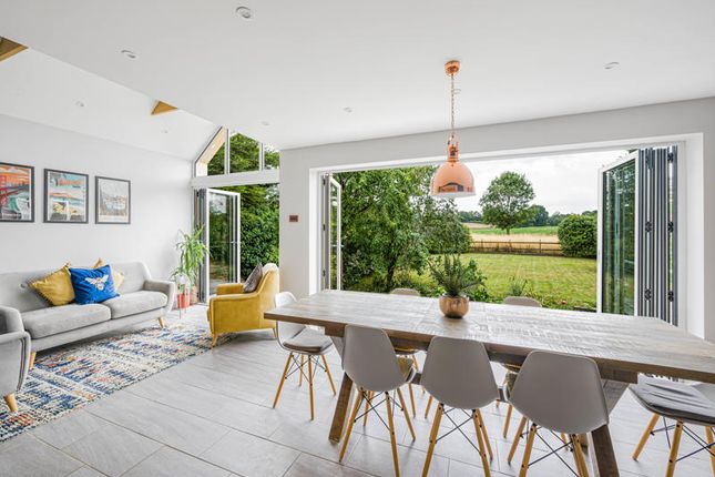 Step into this beautifully presented four-bedroom family home offering a seamless blend of comfort, space, and modern convenience. This home boasts wonderful open countryside views and superb living spaces all within a vibrant village and close to commuter links. Step into this beautifully presented four-bedroom family home offering a seamless blend of comfort, space, and modern convenience. This home boasts wonderful open countryside views and superb living spaces all within a vibrant village and close to commuter links.Set in a desirable rural location, this home offers tranquillity while remaining within easy reach of local amenities, schools, and transport links so whether you're working from home or commuting, this property offers the best of both worlds. The current owners, already living locally, wanted a village location in which to bring up their young family. This home was actually built by a local builder for his own family, and this is evident in the layout, finish, storage space and room sizing – perfect for family life and a home that can grow with you, being so versatile in use.Step InsideStepping inside brings you into a lovely large entrance hall, tiled for practicality with cloakroom to the left and wonderfully spacious office to the right. This would make a great teens' lounge or playroom too if desired. Further along the hall to the left is the simply stunning family kitchen dining room. Recently added by the current owners, this superb space offers great flow and with a pop of colour to add personality. There is ample space for cosy sofa seating as well as a huge dining table to seat the whole family at Christmas. The central island offers relaxed bar seating, whether chatting to the chef glass of wine in hand, or the children having breakfast whist lunches are prepped, or doing their homework. This is a sociable area, perfect for entertaining with two sets of huge bifolds opening to the expanse of terrace. A door from the kitchen leads to a handy utility room for laundry, offering lots of additional storage too. The dining zone offers double doors to the generous living room – making the whole space become one for parties or providing the chance to close the doors for some peace and quiet and a snuggle by the wood burner in the cooler months. This room has two sets of double doors opening onto the terrace, really bringing the whole area to together, inside and outside spaces joining as one.Country Living at Its FinestThough already built to hi spec the currents owners made their mark by replacing the windows, creating the wonderful family room, and renovating very recently, the stylish and contemporary ensuite and main bathroom. The current owners spend time all year round in the family room. With the bifolds this is a go-to snug sofa space on a rainy afternoon, underfloor heating ensuring your warmth, doors open to enjoy the drama of a storm. The southwest facing huge windows allow swathes of sunlight to embrace this room, even on a bright chilly winter's day and the double height ceiling over the sofas here is a fabulous place for a tall Christmas tree. In summer you can fling open the doors, and enjoy fresh air inside or out, enjoying al fresco dining on the terrace, partying the day away. This home can evolve in use as the family grows – the open planned space has been a joy with little ones and now as children grow and move away, the area is a prime entertaining zone. The current owners have celebrated milestone birthdays and at time hosted 50 people here. This is also a wonderful home in which to unwind watching birds at dusk. The owners previously had a hot tub on the private terrace where they were privileged to observe owls on the hunt. With uninterrupted views of rolling countryside, children and pets can roam free along with wildlife visitors including deer, ducks, and a variety of birdlife.Explore UpstairsThe stairs lead to a really spacious bright landing and to a fabulous principal bedroom with double wardrobes in a designated dressing space, plus chic ensuite with generous shower. The other three double rooms are all the same size with built in wardrobes so there is no arguing amongst the family regarding who has the bigger room, or the most storage. The family bathroom has two sinks making mornings and bedtimes smoother, and a shower over the bath, so bathing little ones is comfortable in this space.Step OutsideApproached by a neat gravel driveway with ample parking and screened by mature hedging this home feels welcoming from the very outset. To the right of the driveway is a useful workshop which could be repurposed as a hobby or craft space if needed. The current owners have used the garage space as a gym and for storage so even this space offers versatility. The rear gardens have been creatively designed to make a feature of the babbling brook with clever decking acting as a bridge, and a huge expanse of terrace stretching the width of the home – a tranquil spot for a Sunday newspaper and an early morning cuppa. When without water, the rockery beneath the brook displays beautiful flowers, creating a splash of colour. Offering access from the kitchen /family room as well as the living room, this is a home that seamlessly blends outside and inside together and with the peaceful countryside backdrop, the terrace is a place where much of the summer is spent. The garden is mainly laid to lawn, so lots of space for children and dogs but punctuated with indigenous shrubs and hedgerows plants including sloes for making your own sloe gin! There is ample space too for green fingered enthusiasts to have veggie beds and a kitchen garden.On The DoorstepCharsfield is nestled in the Deben Valley, surrounded by tranquil Suffolk countryside and. The vibrant village life includes an active church community running events like cream tea afternoons, a primary school, and a village hall activity programme offering fitness classes, wi, 100 club, children's sum