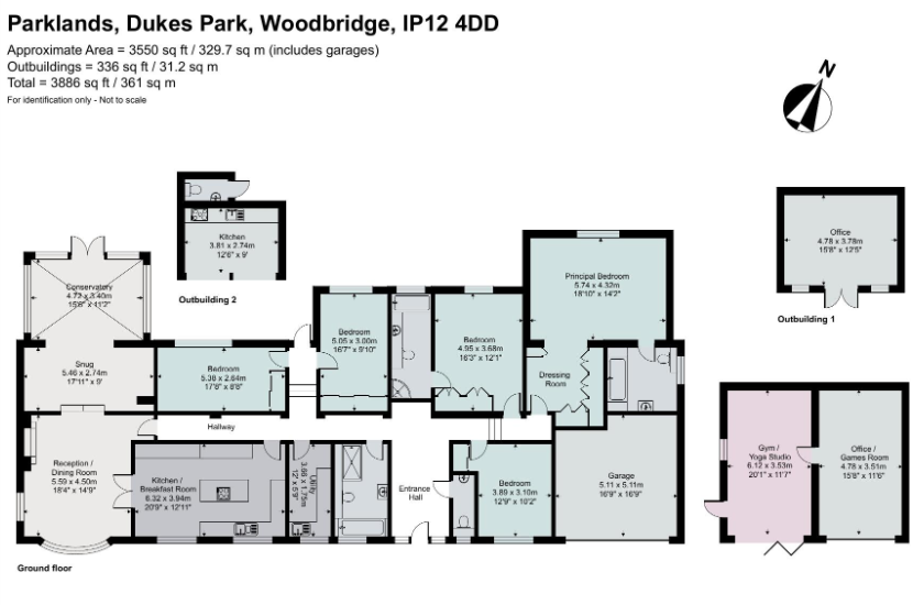We are proud to offer this stunning, five bedroomed family home in the prestigious Dukes Park development in Woodbridge.This spacious home has five bedrooms, two of which are en-suite and plenty of reception space including a beautiful conservatory. The contemporary kitchen and breakfast area adjoin the dining room.The property sits perfectly in it’s two thirds of an acre plot of impressive mature gardens with an array of outdoor structures to include an outdoor kitchen, dining cabin, offices, sauna and gym.This is single storey living at it’s best.