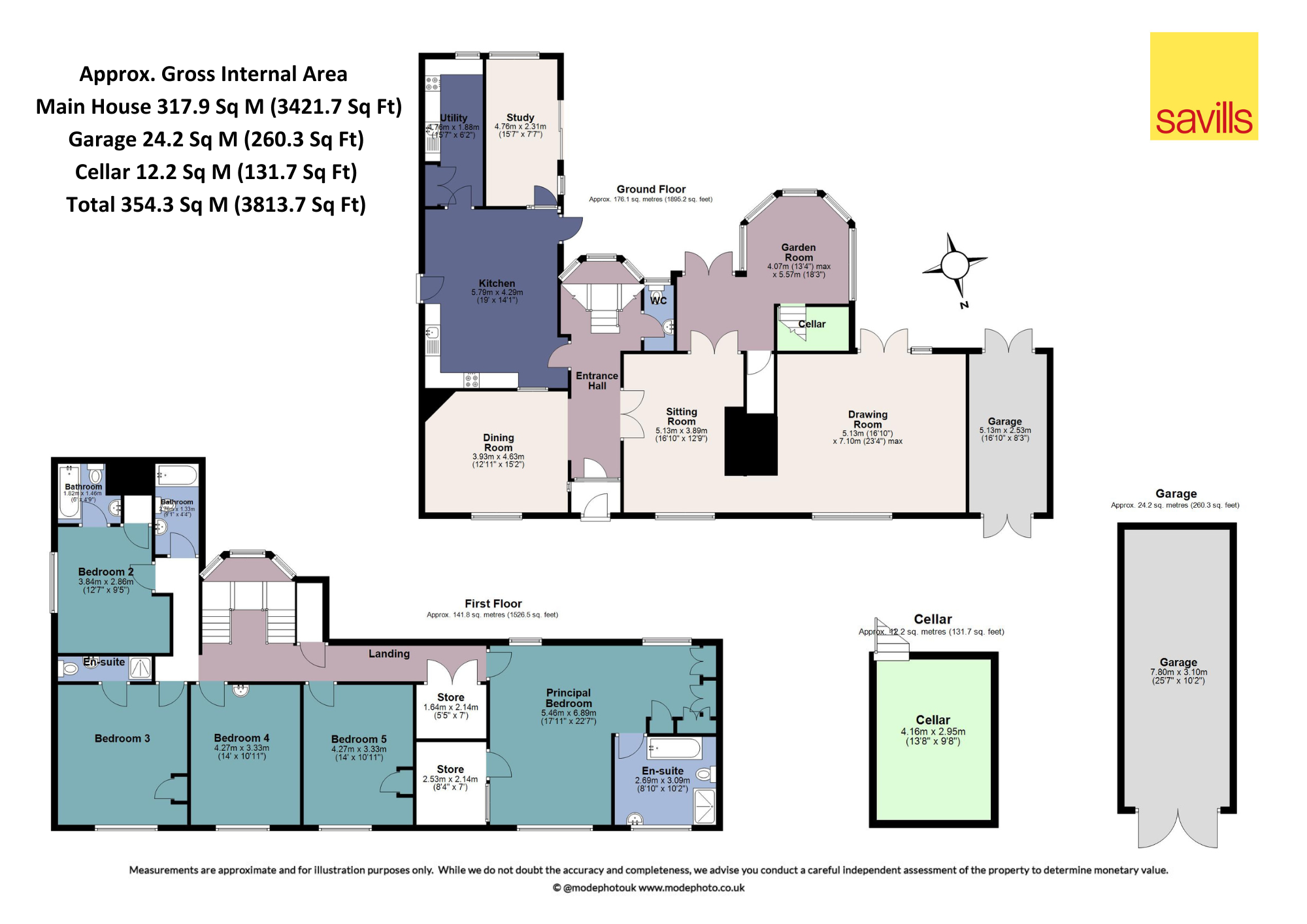 A beautifully presented town house with south facing walled garden.DescriptionNestled amongst other historical houses and within the sought after Market Hill of Woodbridge, The Town House is a particularly charming house with a south facing garden and garaging. Believed to date from the 18th century and Grade II listed for historical and architectural interest, The Town House has an attractive façade, with timber framed windows and traditional clay tiles. Internally, the house retains a wealth of period features including exposed timbers, studwork, and original chimneypieces.The front door opens into a light filled central hallway connecting the drawing room, sitting room, garden room, kitchen/ breakfast room, dining room, study and utility room with stairs leading up to the bedroom accommodation. The drawing room, sitting room and dining room are located at the front of the house. All are well-proportioned and feature attractive fireplaces. The drawing room, in particular, benefits from a dual aspect and enjoys French doors that open onto the terrace and south-facing garden.The substantial kitchen/breakfast room overlooks the garden and features integrated fridge and freezer units, along with Bosch appliances including a dual oven, microwave, and induction hob. There is ample storage throughout, as well as a separate utility room.A door from the kitchen leads directly to the garden and also to a study, which benefits from glazed sliding doors opening out to a terrace and garden beyond. Completing the ground floor is a spacious triple aspect garden room that has delightful views over the garden and to the church and features a pitched glazed roof allowing natural light to flood the space. This charming space is perfect for relaxing or entertaining and has French doors that lead out to the terrace and garden. A substantial, full-height cellar is also accessed by stairs from the Garden Room.Stairs lead up to the first floor where there are five double bedrooms, three of which benefit from en-suites and a family bathroom. The principal bedroom suite benefits from a dual aspect, walk in wardrobe area and large en-suite bathroom.OutsideThe Town House has a tranquil south-facing, private walled garden, which comprises a terrace, ideal for al fresco dining and mature herbaceous borders. Rare for such a central location, The Town House has two garages, one attached to the house and an additional large, secure garage, just a short walk around the corner in Theatre Street.LocationWoodbridge is a thriving and highly regarded market town in East Suffolk – considered by The Times as one of the best places to live in the United Kingdom. Situated on the River Deben, there are a number of scenic walks, a harbour and a rare working tide mill, which traces its roots to the 11th century.For many centuries, Woodbridge has been a prosperous and fashionable town and it benefits from beautiful architecture, chiefly from the Tudor, Georgian, Regency and Victorian periods; today, there is an incredible array of amenities, including independent shops, cafés, public houses and restaurants.Within the village of Bromeswell (2.9 miles), to the east of Woodbridge, is the acclaimed Unruly Pig, considered one of the top gastropubs in the country.Neighbouring Sutton Hoo (2.9 miles) is home to Britain’s most important archaeological site, the Anglo Saxon burial ground of King Rædwald, the most powerful leader in seventh century England.Orford (10.7 miles) is an especially delightful village: Formerly a fishing port dominated by the 12th century castle and more recently an important location in the development of radar, the village today is particularly known for the award-winning Pump Street bakery and the Butley Orford Oysterage.Aldeburgh (16.1 miles), the popular coastal town closely associated with Benjamin Britten, is famed for its fish and chips and the celebrated 'Scallop’ sculpture by Maggi Hambling. There are excellent galleries and boutiques and a superb restaurant scene including critically acclaimed 'The Suffolk’.Ipswich (9.3 miles) is the county town of Suffolk and provides a wide selection of independent and high street shops; and a variety of theatres, galleries, and museums.The Cottage is well placed for the commuter with easy access to the A12 and railway stations in Woodbridge and Ipswich providing regular trains to London Liverpool Street: Woodbridge via Ipswich from 92 minutes; Ipswich direct from 68 minutes.Sporting facilities are fantastic: Woodbridge has superb sailing and rowing clubs as well as popular rugby, tennis and golf clubs. Deben Leisure Centre has a 25 metre pool and gym. Further afield, there are golf and sailing clubs at Aldeburgh and Thorpeness, and clay pigeon shooting at Darsham.Schools in the area are excellent. St Mary’s, Woodbridge Primary and Farlingaye are all popular state schools; renowned local independent schools include Woodbridge School, Framlingham College and Ipswich school.All times and distances are approximate.Square Footage: 3,813 sq ftAdditional InfoServices: Mains electricity, water and drainage; gas fired central heating.