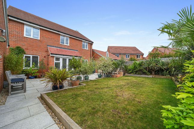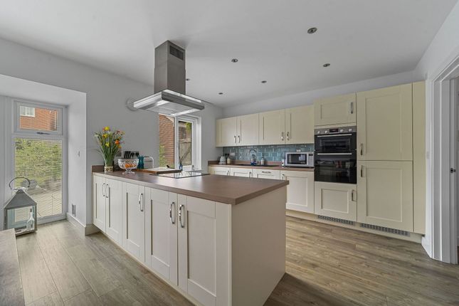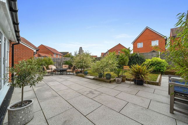Set in a peaceful and highly sought-after residential area, this impressively spacious five-bedroom detached home blends contemporary design with quality finishes and a seamless connection to nature.Overlooking woodland to the front and enjoying a professionally landscaped rear garden, the property offers tranquillity while remaining within easy reach of Farlingaye High School, local amenities, and Melton railway station, with direct connections to London Liverpool Street via Ipswich.Built just six years ago, the home has been lovingly maintained and upgraded by the current owners and now presents in immaculate condition, featuring Amtico flooring throughout the ground floor, and laminate flooring across the stairs and all bedrooms. Bespoke decorative touches further elevate the overall aesthetic.A bright and welcoming entrance hall sets the tone for the rest of the home, with stairs rising to the first floor and doors leading to a series of well-proportioned living spaces. The property offers three reception rooms including a generous sitting room with a charming bay window to the front aspect, offering woodland views and an elegant retreat for day-to-day living. A separate study provides an ideal space for a home office, playroom, or reading nook. To the rear, the stunning open-plan kitchen/dining/family room spans the full width of the property and is flooded with natural light from wide glazed doors leading out to the garden.The stylish kitchen is fitted with a central island with electric hob and modern cooker hood, electric double oven, integrated fridge/freezer, dishwasher, and ample cabinetry. The layout flows naturally into the dining and living area, creating the perfect setting for entertaining or relaxed family time. To the side, a well-appointed utility room provides laundry space, further storage, and external access - ideal for day-to-day convenience.The first floor offers five generously sized bedrooms, thoughtfully laid out to suit a variety of family needs. The principal bedroom features mirrored fitted wardrobes and a sleek ensuite shower room, while the second bedroom also benefits from its own private ensuite - perfect for guests or older children seeking independence. Two further double bedrooms and a fifth well-sized single room share a modern family bathroom. Three of the bedrooms come with built-in wardrobes, offering excellent in-room storage.The rear garden has been professionally landscaped to create a low-maintenance outdoor sanctuary, featuring an expansive granite patio for al fresco dining and entertaining, a neatly maintained lawn, and mature planting for year-round interest. To the front, a spacious driveway accommodates multiple vehicles and leads to a detached double garage, providing secure parking and additional storage.Located in a quiet, family-friendly setting, the home is surrounded by green space, woodland walks, and is within close proximity to excellent schooling and transport links. Woodbridge town centre - with its independent shops, cafes, restaurants, and riverside charm - is just a 25-minute walk away, offering the perfect balance of convenience and lifestyle.This is a rare opportunity to acquire a turnkey family home of exceptional quality in one of Suffolk’s most desirable locations - combining style, comfort, and space in equal measure.Annual service charge: £286.38 (covering February 2025 – January 2026).EPC Rating: BLocationLocated on the eastern edge of the historic market town of Woodbridge, the charming village of Melton offers a sought-after lifestyle combining countryside calm with superb local amenities. With its leafy surroundings, proximity to the River Deben, and easy access to walking and cycling routes, Melton is ideal for those seeking a quieter pace of life without compromising on convenience.The village itself enjoys a warm and welcoming community feel, with local shops, pubs, a bakery, and a railway station offering direct links to Ipswich and connections to London Liverpool Street in under 90 minutes. The A12 nearby provides straightforward access to the wider Suffolk coast and beyond.Melton sits within the catchment of well-regarded schools, including Farlingaye High School, and is just a short walk or drive to Woodbridge town centre - a vibrant and cultural riverside hub known for its boutique shops, artisan food scene, cinema, marina, and regular community events.Surrounded by open green space and close to the river, yet within walking distance of town, Melton offers the perfect balance of lifestyle, location, and connectivity - making it a consistently popular choice for families, professionals, and those relocating to enjoy all that Suffolk has to offer.Study (2.9m x 2.4m)Sitting Room (5.9m x 3.8m)Kitchen/ Dining/ Family Room (9.1m x 5.0m)Utility Room (1.9m x 1.7m)Bedroom 1 (4.3m x 3.9m)En-Suite (2.7m x 1.5m)Bedroom 2 (3.8m x 3.1m)Bedroom 3 (3.6m x 3.2m)En-Suite (2.3m x 1.4m)Bathroom (2.3m x 1.9m)Bedroom 4 (3.2m x 2.7m)Bedroom 5 (2.6m x 2.5m)Parking - Double GarageDetached Double Garage20'9 x 19'4 (6.3m x 5.9m)Parking - Driveway