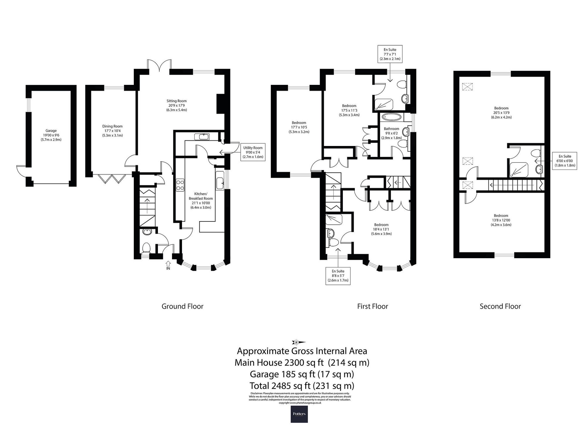 Potters are delighted to offer this exceptional five-bedroom detached family home with the main home having 2300 sq ft set over three storeys and conveniently located with excellent access to local amenities including Melton woods, Woodbridge town centre, and top schools including Farlingaye High School and Woodbridge School. The property is being sold with no onward chain.Built by the esteemed local builder Mervyn Ruffles, this property boasts generous accommodation, modern comforts, and flexible living spaces.Ground Floor Accommodation: The property is entered through a half-glazed front door leading into a welcoming entrance hall with a tiled floor and underfloor heating throughout the ground floor whilst conventional radiators used on first and second floors. The underfloor heating is controlled via four zones with it's own thermostat. A carpeted staircase with two cupboards underneath rises to the first floor. The ground floor features a well-appointed WC, a dual-aspect dining room with bi-fold doors to the front garden, and a spacious sitting room with a fireplace and French doors opening to the rear garden. The heart of the home is the modern kitchen/breakfast room, equipped with oak-fronted units, granite work surfaces, and integral Siemens appliances. A door from the kitchen leads to the utility room with additional storage and plumbing facilities.First Floor Accommodation: The first floor comprises a landing with a shelved airing cupboard, three generously sized double bedrooms, a family bathroom and additional understairsstorage cupboard. The master bedroom features fitted wardrobes, a canted bay with triple sash windows and an en-suite shower room. Bedroom two also benefits from an en-suiteshower room, while bedroom three offers dual aspects and ample space with access hatch to partially boarded loft space. The family bathroom includes a shower bath with a curved glass screen.Second Floor Accommodation: The second floor is home to two additional bedrooms, each with vaulted ceilings. Bedroom four includes Velux roof lights and an en-suite shower room,while bedroom five provides a comfortable retreat with views to the front.Outside Space: The property is approached via a shared pea shingle drive with tandem parking for two cars. A separate driveway leads to the garage which has a third parking space in front of the garage door for a small car.The front garden, enclosed by a red brick wall and fences, is predominantly laid to lawn with a patio area. The enclosed rear garden is designed for outdoor living, with lawns, patios, raised beds, access to a lean-to shed and space for relaxation.The garage, measuring 18'11 x 9'7 (reducing to 9'2), includes power and lighting, while the adjacent lean-to shed offers additional storage.This home is a must-see to appreciate its excellent location, spacious accommodation, and family-friendly features.Contact Potters to arrange a viewing.Services: Mains water, gas, electricity and drainage are all connected to the property. Property benefits from Fast fibre broadband, current owners get 75Mb/sec.Money Laundering Regulations: Intending purchasers will be asked to produce identification documentation at a later stage and we would ask for your co-operation in order that there will be no delay in agreeing the sale.Disclaimer1. While Potter's Estate Agents endeavour to make our sales particulars fair, accurate and reliable they are only a general guide to the property and accordingly. If there is any point which is of particular importance to you, please contact the office and we will be happy to check the position for you.2. Potters draft particulars are drafted on an "as is" basis approved by the client we represent. We cannot guarantee that accuracy of the information disclosed or give any warranty as to suitability, fitness for purpose, completeness, or that any content is free of omissions or errors.3. A buyer is advised to obtain verification from their Solicitor in all circumstances. Potters will not be liable for any legal expenses incurred without written permission in advance by the controlling directors.4. The measurements indicated are supplied for guidance only and cannot guarantee the accuracy of any description, dimensions, references to conditions, necessary permissions for use and occupancy and other details contained herein. The prospective purchasers or tenants must not rely on them as statements of fact and must satisfy themselves as to their accuracy.5. Potter's Estate Agents act on an "arm's length" basis. We do not have any authority to make or give any representation or warranty or enter any contract whatever in relation to the property.6. Services: Please note we have not tested the services or any of the equipment or appliances in this property. We strongly advise prospective buyers to commission their own survey or service reports before finalising their offer to purchase.7. Potter's Estate Agents will not be liable for any loss arising from the use of these particulars. We have not tested any apparatus, equipment, fixtures and fittings sand therefore cannot verify that they are in working order or fit for the purpose.8. Potters are not solicitors and cannot give legal or financial advice. We will not be liable for any legal or conveyancing cost if information is revealed by searches etc' that leads to the sale collapsing.9. The prospective purchasers or tenants must not rely on the particulars as statements of fact or representations and must satisfy themselves as to their accuracy.10. Photographs will only show certain parts of the property and assumptions should not be made in respect of those parts of the property that have not been photographed. (Items or contents shown in the photographs are not included as part of the sale unless specified otherwise) It should not be assumed the property will remain as shown in the photograph. Photographs are taken using a wide-angle lens.EPC Rating: CLocationAgent notes:Location: 