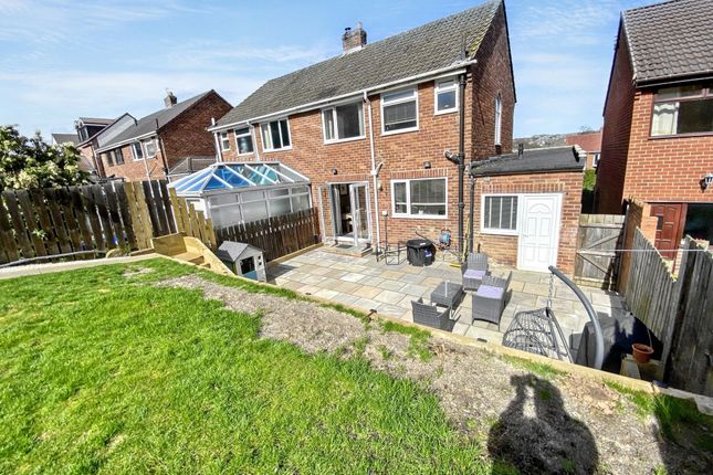 SummaryFabulous three bedroom semi detached property located in the sought after Stella Hall Drive, Blaydon. The property offers good size living accommodation and would be ideal for a growing family. The property has been improved and maintained by the current owners to a very high standard with many features such as wood burner stove, vertical radiators, parking for a number of cars on the driveway and landscaped extensive rear garden with woodland views. Located close to local amenities, schools and with excellent road and bus links into Newcastle Upon Tyne.The floorplan comprises Lounge, kitchen/dining room and utility room. To the first floor three bedrooms and bathroom. Further benefits include gas central heating, double glazing, front and rear gardens, storage room formally a garage. We highly recommend viewing to fully appreciate what this lovely home has to offer.Council Tax Band: BTenure: FreeholdLounge (5.4m x 4.6m)Double glazed front aspect door, double glazed front aspect bay window, double and single radiator, feature fireplace with wood burner stove, laminate flooring, down lighting, stairs to the first floor with feature glass panels, under stairs storage.Kitchen/Dining Room (5.5m x 3.2m)Fitted wall and base units incorporating counter work tops with a one and a half bowl sing unit, Leisure Range cooker with extractor hood over, partly tiled walls, vertical feature radiator, laminate flooring, down lighting, double glazed rear aspect window and French doors in the rear garden. Doorway into the utility room.Utility Room (2.5m x 2.3m)Work tops, space for a washing machine, down lighting, vertical feature radiator, door into the garage/store room, double glazed rear aspect window and door into the rear garden.Store Room ( Formally A Garage ) (5.2m x 2.3m)Roll up door, side aspect window, power points and lighting, built in cupboard.First Floor LandingDouble glazed side aspect arched window, access to roof space.Bedroom One (3.6m x 3.0m)Double glazed front aspect window, single radiator, down lighting.Bedroom Two (3.2m x 2.8m)Double glazed rear aspect window, single radiator.Bedroom Three (2.6m x 2.3m)Double glazed front aspect window, single radiator, built in cupboard, down lighting.BathroomWhite three piece suite comprising panelled bath with shower over, vanity wash hand basin, low level w.c. Tiled walls, feature heated towel rail, down lighting, double glazed rear aspect window.Front GardenGravelled area, block paved driveway for a number of cars, fenced boundaries.Rear GardenLandscaped extensive tiered garden, paved patio area with feature steps to raised lawned areas, cold water tap, power points, fenced boundaries, woodland views.