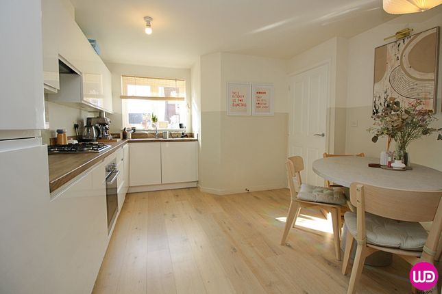 DescriptionWell-presented three bedroom town house set over three floors, the property offers spacious accommodation throughout, modern décor, and three generously sized double bedrooms. Ideal for first-time buyers or growing families. This opportunity is not to be missed!Council Tax Band: CTenure: FreeholdAccessProperty accessed via pathway with well manicured front lawn, pathway provides side access to the property and composite front door with glass panels lead into the entrance hallway.Entrance Hallway(2.07m x 1.06m)Entered via composite door with opaque glass panels. Engineered wood flooring, neutral décor, wall-mounted radiator, pendant ceiling light, under-stair storage, access to WC, kitchen/diner, and stairs to first floor landing.Ground Floor WC(1.43m x 1.00m)Situated to the front. Flooring with half-height panelling to walls and neutral décor. Pendant ceiling light, white WC and wash basin with matte black mixer tap, opaque window with opener, and wall-mounted radiator with thermostatic valve.Kitchen / Diner(4.09m x 3.34m)Engineered wood flooring, two-tone décor, two pendant ceiling lights, wall-mounted radiator with thermostatic valve, and space for dining table and chairs. Fitted with a range of white wall and base units with seamless handles. Integrated Indesit dishwasher and fridge freezer. Space for washing machine. Stainless steel sink with chrome mixer tap. Indesit four-ring gas hob with oven below and extractor above. Double-glazed window with opener to front elevation. Door leading to lounge.Lounge(4.53m x 3.57m)Located to the rear with engineered wood flooring continued. Two-tone décor, pendant ceiling light, wall-mounted radiator with thermostatic valve, and under-stair storage cupboard. Double-glazed French doors provide access to the rear garden.First Floor:Landing(3.80m x 1.92m over stairwell)Engineered wood flooring, neutral décor, pendant ceiling light, wall-mounted radiator with thermostatic valve, and storage cupboard housing switchboard and meters. Doors to all first-floor accommodation.Bedroom 2(4.49m x 2.91m)Positioned to the rear with engineered wood flooring, neutral décor, pendant ceiling light, wall-mounted radiator with thermostatic valve, and large double-glazed window with two openers. Space for large double bed and additional furniture.Bathroom(2.39m x 2.05m)Modern tiled floor and part-tiled walls. White three-piece suite with matte black fixtures, concealed ceiling light, wall-mounted heated towel rail, and opaque side window with opener.Bedroom 3(3.14m x 2.47m)Located to the front with engineered wood flooring, pendant ceiling light, wall-mounted radiator with thermostatic valve, double-glazed window with opener, and space for bed and furniture.Office(1.91m x 1.71m)Engineered wood flooring, neutral décor, pendant ceiling light, wall-mounted radiator with thermostatic valve, and double-glazed front window with opener. Space for desk and chairs. Stairs lead to second-floor master bedroom.Second Floor:Master Bedroom(6.09m x 4.44m over stairwell)Engineered wood flooring, neutral décor, pendant ceiling light, smoke detector, wall-mounted radiator, and double-glazed front window with opener. Space for large double bed and additional furniture. Door to en suite.En-Suite(2.16m x 1.61m)Tiled flooring and shower area. White three-piece suite with chrome fixtures, neutral décor, concealed ceiling light, wall-mounted towel rail, Velux window for ventilation, and large storage cupboard.GardenAccessed via French doors from the lounge. Split-level design with low-maintenance gravel area, pathways leading to front gate, and steps to a raised lawn section enclosed with fencing. Rear gate provides access to driveway and garage.Garage(6.30m x 2.89m)Up-and-over door, space for car, electric car charging point, and driveway parking.