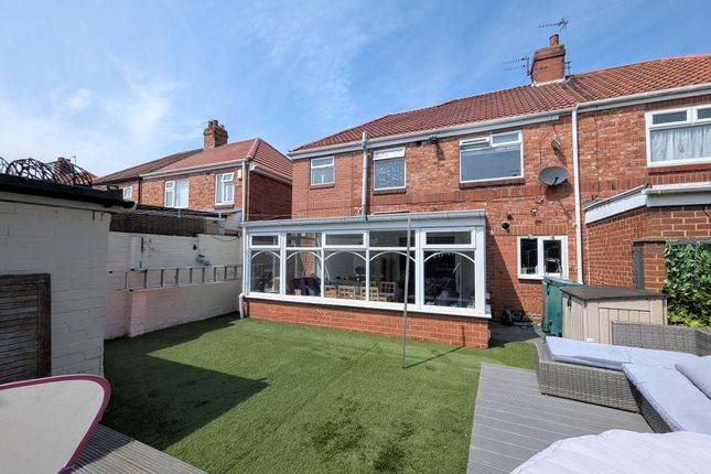 This charming and versatile four-bedroom semi-detached house, nestled on a popular residential street, boasts a well-designed layout that caters to modern living needs. The property features a spacious lounge that provides an ideal setting for relaxation and entertainment (with its cosy ambience and ample natural light), a modern kitchen equipped with sleek appliances and stylish finishes, and a conservatory offering a tranquil space to unwind and enjoy the views of the sunny rear garden.The accommodation further comprises three/four well-proportioned bedrooms, offering flexibility for use as a home office or guest room as needed. The property is also enhanced by a family bathroom and a convenient shower room, providing practicality and comfort for the residents.Externally, the property benefits from a driveway with ample space for multiple vehicles, ensuring parking convenience for homeowners and guests alike. The sunny rear garden provides a private outdoor sanctuary, perfect for enjoying al fresco dining, gardening, or simply basking in the sunshine.Situated on a sought-after residential street, this semi-detached house offers a peaceful and family-friendly environment while being conveniently located near local amenities, schools, and transport links. The property's proximity to green spaces and recreational facilities makes it an ideal choice for nature enthusiasts and active individuals seeking an active lifestyle.With its blend of modern comforts, flexible living spaces, and convenient location, this property presents a rare opportunity for discerning buyers looking to settle in a well-appointed and welcoming home. Don't miss the chance to make this meticulously maintained semi-detached house your own and experience the joys of contemporary living in a desirable neighbourhood. Schedule a viewing today and discover the endless possibilities that await in this inviting and well-appointed residence.LocationHarton House Road is perfect for families with St Gregory's rc va Primary School just a couple of minutes walk. There is a local Spar for convenience, with Harton Village, The Nook and Horsley Hill shopping areas all within easy reach with a range of amenities including a wide range of shops and cafes. The fabulous coastline is just a short drive away with award winning beaches, families leisure facilities including Fun Fair and swimming pool and parks that host fantastic music events throughout the summer. Bus routes are close by for easy access into South Shields town centre, Sunderland and surrounding areas.Hallway (1.60m x 1.75m)Via composite door, laminate flooring and door to lounge.Lounge (3.41m x 4.07m)With coving to the ceiling, bespoke media wall with modern electric fire, panelling to the alcoves, laminate flooring, radiator and UPVC double glazed bay window.Kitchen (5.3m x 2.1m)A range of wall and base units with contrasting work surfaces, integrated oven, 5 burner electric hob and extractor. Integrated dishwasher and washing machine and space for fridge freezer. Spotlights to the ceiling, tiled splashback, tiling to the floor, UPVC double glazed window and doors leading to the conservatory.Conservatory (4.80m x 2.97m)With spotlights to the ceiling, tiled flooring UPVC double glazed windows and doors leading to the rear garden.Inner HallwayRadiator and stairs leading to the first floor.Bedroom Four (3.93m x 1.85m)With fitted wardrobes, radiator, UPVC double glazed window and door to shower room.Shower Room (1.40m x 1.83m)With walk in shower, low level WC and wall hung sink. Tiling and cladding to the walls, tiling to the floor, sensor light to the ceiling.First Floor Landing (4.49m x 1.99m)Laminate flooring, loft access via ladder and UPVC double glazed window.Bedroom One (3.37m x 3.18m)With laminate flooring, radiator and UPVC double glazed window.Bedroom Two (3.36m x 2.96m)With radiator an UPVC double glazed window.Bedroom Three (2.78m x 1.82m)Laminate flooring, radiator, UPVC double glazed window and door leading to the dressing room.Dressing Room (2.59m x 1.98m)With mirrored sliding wardrobes, laminate flooring and UPVC double glazed window.Bathroom (1.80m x 1.94m)Three piece suite comprising panelled bath, low level WC, pedestal sink. Spotlights to the ceiling, cladding to the walls, tiling to the floor, radiator and UPVC double glazed window.GardenEnclosed rear garden with decking area, artificial turf and outhouse for storage.