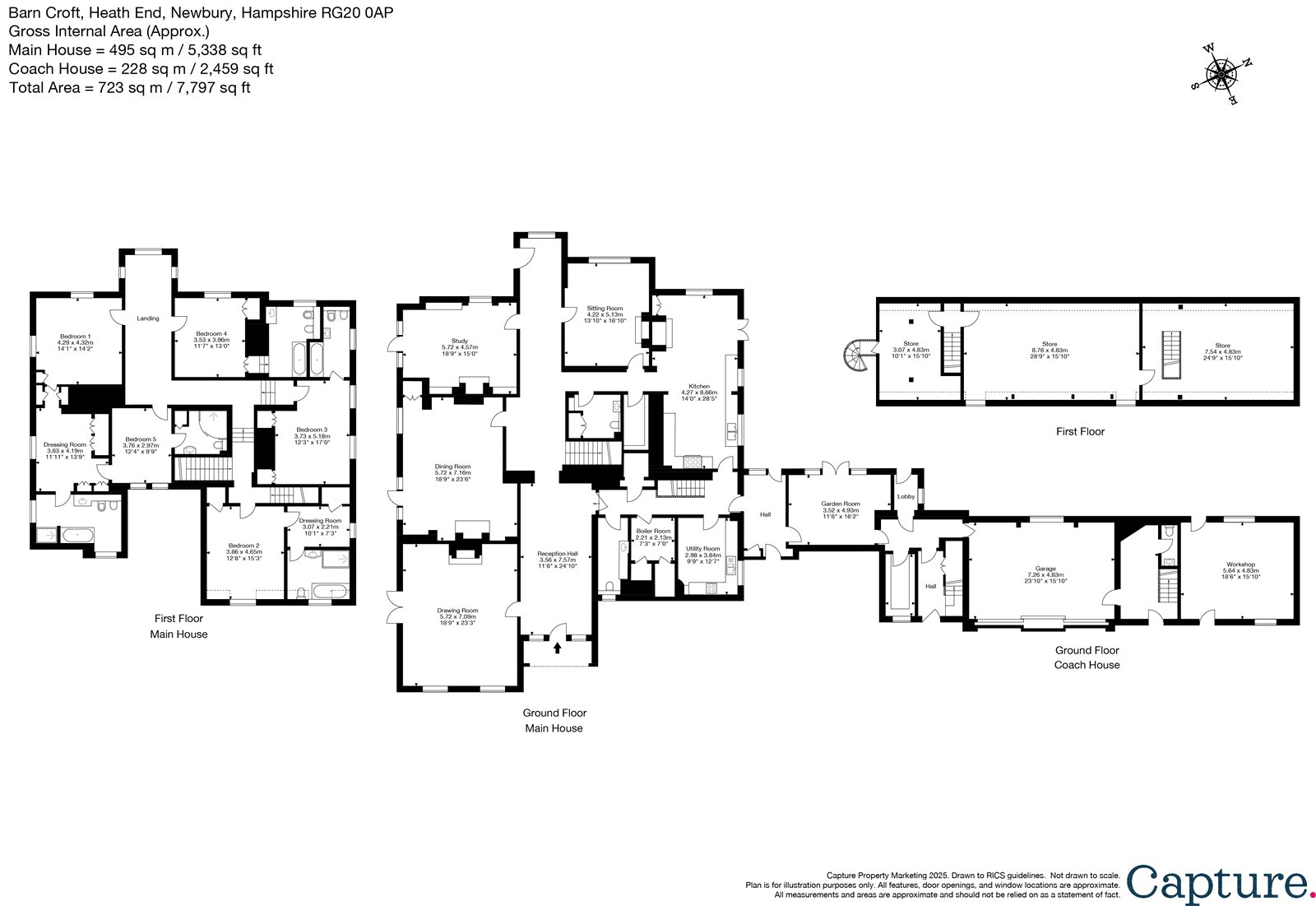 A superb unlisted country house, in the sought after parish of East Woodhay and sitting in an exceptional setting with a coach house, beautiful gardens and land extending to 17.45 acresDescriptionBarn Croft is a handsome country house, understood to date from about 1830 but having been extended and altered over the years, most recently in the early 21st Century. The property is offered to the open market for the first time in over 40 years. It is unlisted and offers potential for a buyer to make further improvements, subject to planning permission.The house has wonderful proportions, with high ceilings and large sash windows as well as some lovely period fireplaces. The front door opens into a reception hall with grand proportions which runs the width of the house. The reception rooms include an elegant drawing room, added in 2007, which is a magnificent space, with sash windows, high ceilings and an open fireplace with a Jetmaster grate. There is a large dining room, ideal for entertaining and a study, both of which have glazed doors opening onto a south facing terrace. There is also a sitting room which links via an inner hall to the kitchen/breakfast room.The kitchen/breakfast room has a lovely outlook over the walled garden with French doors opening onto the terrace. An adjoining back hall opens through to a utility room and cloakroom. A garden room provides a link to the coach house.There are five double bedrooms on the first floor, all of which have en suite bathrooms with the principal bedroom and guest suite also having adjoining dressing rooms.Coach houseA brick and flint coach house adjoins the main house to the north. It currently provides garaging, a workshop and stores on the ground floor, with the first floor converted in the 1980s to provide a games room and adjacent store rooms.Gardens & groundsBarn Croft is approached from the lane via electric hardwood double security gates opening onto a gravel driveway which sweeps in from the north of the house, giving lovely views over the grounds which have a parkland feel with many wonderful trees. The main parking area is in front of the coach house.The gardens are principally laid to lawn, with a beautiful walled garden immediately to the north of the house. To the south there is a terrace with lawns beyond, framed by a wide herbaceous border and mature trees. To the north of the driveway there is a garden with a pavilion and a gravel path leads to the hard tennis court.Beyond the gardens, the land opens seamlessly into open pasture, interspersed with some wonderful historic trees and with a recently planted copse of native trees to the far south-east. To the West there is a further block of land on the other side of the lane which is laid to pasture, with a water trough(currently disconnected).Cricket field freeholdThe sale includes a further 5.8 acres subject to a covenant from 2011 that it can only be used as a cricket field and no buildings can be erected or extended without the permission of the heirs to the original owner. There is a ten-year lease to East Woodhay Cricket Club at a fixed rent of £1,600 per annum which restricts access to members and guests of a private cricket club and which restricts use to playing watching and practising cricket. Details are held by the selling agent.LocationBarn Croft sits in an outstanding rural location to the South-West of Newbury, in the sought-after Parish of East Woodhay, between the hamlets of Heath End and East End and within East End’s conservation area. The surrounding countryside is designated the North Wessex Downs National Landscape and includes some of the finest landscapes in Southern England, with rolling downland and gently undulating farmland interspersed with pretty villages, farm buildings and country houses.The house itself has wonderful views over its own land, the surrounding countryside and long views to the downs towards Combe Gibbet.The hamlet of East End has a highly regarded primary school, St. Martin’s, a restaurant/farm shop and a local cricket club.The nearby hamlet of Ball Hill has the Furze Bush pub as well as the popular Yew Tree Garden Centre and café. Woolton Hill (1.5 miles) is home to Thorngrove School, a Post Office and general store, a gp practice, tennis club and children’s football club.The market towns of Hungerford and Newbury both have direct rail services to London Paddington. Newbury offers a wide range of amenities including the world famous racecourse, the renowned Watermill Theatre, supermarkets and an independent department store.The surrounding villages and countryside offer many opportunities for dining at a variety of public houses and restaurants, including the Michelin guide options The Vineyard and Woodspeen.There is a wide selection of preparatory and secondary schools in the area including Cheam, Thorngrove, St. Gabriel’s, Horris Hill, Brockhurst & Marlston, Elstree, Marlborough College, Downe House, Radley, Wellington and Bradfield.Square Footage: 5,338 sq ftAcreage:17.45 AcresDirectionsWhat 3 Wordsstill.exploring.relativesRG20 0AP