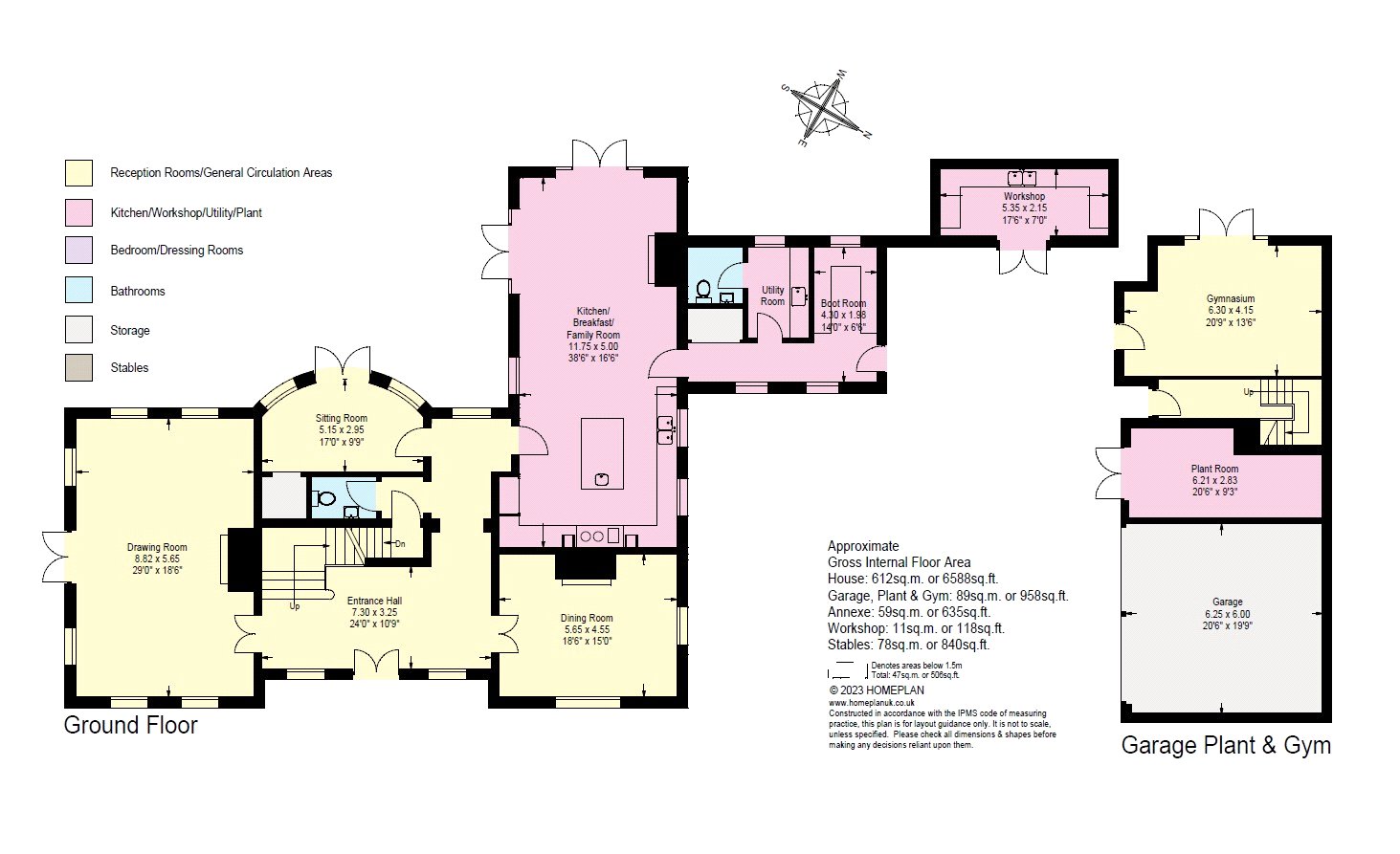 An immaculately presented country house set in an elevated position with far-reaching southerly views over the village of Kingsclere.DescriptionFox HallThe property is approached through electric gates with brick pillars, and a gravelled drive flanked by hornbeam trees leads up to the front door. The house is offered in immaculate condition throughout, having been constructed in 2014 by Sherbourne Developments.The entrance/reception hall sets the tone of this well laid out property, off which is the drawing room, dining room, and sitting room. All are well-appointed with generous ceiling heights and wide board oak flooring throughout.The kitchen/breakfast room is central to the house and briefly comprises an electric aga, Neff oven and microwave, integrated dishwasher, fridge, freezer, and drinks fridge. Within the breakfast/sitting area are two pairs of French doors giving direct access to the beautifully landscaped gardens.The back-room area has a generous boot room with benches, hooks, and shelves over, a laundry room, and a store. On the lower ground floor is a generously appointed cinema room with overhead projector and a partially glazed wine store with tiled floor, wine bins, and racking.On the first floor is a generously proportioned galleried landing, off which is the principal bedroom with adjoining dressing room and well-appointed bathroom. Over this floor are two further well-presented double bedrooms with adjoining bathrooms and a study.On the second floor, off a large landing with lantern over, are three double bedrooms and a family bathroom.Outside, within the courtyard, is a two-car carport with a workshop off. The two-storey garage block comprises two garages, a plant room, and gymnasium over the ground floor, with a staff flat comprising an open-plan reception room and kitchen, a double bedroom, and a shower room on the first floor.Garden and GroundsThe formal gardens are to the south and west of the property and comprise a wide variety of mature plants, trees, and shrubs. Within these areas is a Mediterranean garden with olive and Cypress trees, a sculpture garden, and an area of lawn enclosed by a Copper beech avenue. To the rear of the property is a large terrace area with olive tree topiary—an ideal place for alfresco dining.Beyond the formal gardens, there is an orchard, pasture, and parkland enclosed by metal estate fencing, a tennis court, and to the far west of the estate is an L-shaped stable block comprising three stables, a tack room, store room, and a garden/machinery store.SituationFox Hall occupies an outstanding location within a Conservation Area on the outskirts of the village of Kingsclere, at the foot of the North Hampshire Downs, part of which forms Watership Down. The area is of considerable natural beauty but is also extremely convenient for day-to-day living.Rail and road networks are excellent, with trains from Basingstoke to London Waterloo taking from 44 minutes, and the M3, M4, and A34 are all easily accessible.The well-regarded Cheam School is close by, and there are many other excellent independent schools in the area including Elstree, Horris Hill, St Gabriel’s, Downe House, Winchester College, St Swithun’s, and Radley College, to name a few.Within the thriving village are a number of shops including a butcher, village store and post office, as well as restaurants, public houses, a doctor’s surgery, veterinary practice, primary school, and church.More extensive facilities can be found further afield in Newbury and Basingstoke, including a Waitrose supermarket.For recreational amenities, horse racing can be found at Newbury and Salisbury, golf at Sandford Springs, and fishing on the Kennet, Test, Anton, and other chalk streams.Square Footage: 6,588 sq ftAcreage:9 Acres