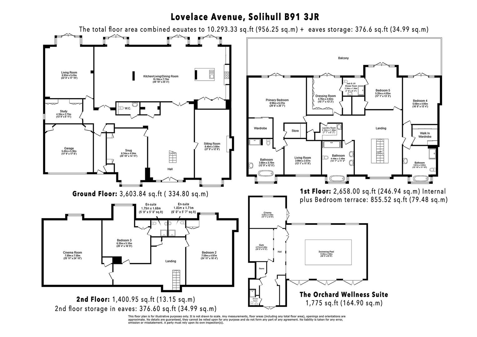 ** stamp duty paid - call for more information **Situated at the secluded end of one of Solihull’s most prestigious private roads this recently renovated luxury six-bedroom residence embodies refinement, space, and timeless sophistication. Extending to over 10,293 sqft, the home has been thoughtfully reimagined balancing grandeur with comfort, offering a seamless blend of exquisite living and entertaining spaces.Beyond the main house, a detached wellness suite awaits, complete with swimming pool, sauna and bespoke fitness and leisure facilities, creating a sanctuary dedicated to wellbeing and relaxation.Property OverviewOffered with no upward chain Treetops sits behind electric gates on a beautifully landscaped 0.89-acre plot with manicured fore gardens and parking for 10 cars.Arranged over three floors, the property blends elegance with modern luxury, offering formal and family living spaces alongside outstanding leisure facilities.Ground FloorUpon entering you are greeted by the grand entrance hallway with a spectacular galleried staircase allowing access to the first and second floors.The living space has been thoughtfully arranged with single and multi family living in mind, provides three generous reception rooms – the family living room with bespoke built in media storage, French doors leading onto the rear terrace, a formal panelled sitting room providing a quiet space to relax, a third lounge with piano and cocktail area; perfect for entertaining .The real star is the impressive kitchen dining and family room, extending to 1100 sqft, spanning the rear of the property; providing direct access to the porcelain-tiled rear terrace through three sets of French doors, providing excellent entertaining space and seamlessly blending indoor/outdoor space.The study has bespoke cabinetry built around a Calacatta marble desktop with seating for three, A Guest cloakroom, two generous storage rooms.The hallway leads to 2 further storage rooms, a second front door access ideal for staff, bicycles and muddy boots which sits next to the double garage.First FloorBenefits from a stylish galleried landing and a full width private balcony to the rear with views over the garden; all bedrooms on this floor have access to the balcony via French doors:Principal Suite – well thought out and private space, completely versatile in its use comprising a large bedroom which opens onto the balcony, two walk-in wardrobes, private sitting room, which could make the perfect nursery, an ensuite with freestanding bath and double shower.Suite 2 comprises a large bedroom and sitting area, separate lobby area, access to the balcony, a walk-in wardrobe, ensuite with freestanding bath and double shower.Bedrooms Three & Four: Spacious double bedrooms, separate walk-in wardrobes to both which share a Jack & Jill en-suite.A luxury family bathroom houses a freestanding bath and a double shower.There is a fully fitted laundry room on this floor.Second FloorUpstairs via a galleried landing there are two further double bedroom suites both with en-suites and built in wardrobes, perfect for guests.Plus a large multi-purpose room currently a cinema room; there is ample space to add a games room or additional reception. Also two storage rooms and eaves access.Grounds And Welness SuiteThe southerly-facing rear gardens are private, beautifully landscaped with lawns, borders, mature shrubs and trees. At the rear boundary stands The Orchard -a detached wellness suite featuring: Indoor pool, Fully equipped gym and yoga studio, built in Sauna, Shower room, Garden room, plant room. A decked terrace and landscaped surroundingscomplete this superb private leisure retreat.LocationConsistently ranked among the UK’s most desirable places to live, Solihull combines leafy suburbs, outstanding schools, and a vibrant town centre.Residents enjoy Touchwood Shopping Centre, beautiful parks, and excellent leisure facilities. Superb transport links include direct trains to Birmingham (15 mins) andLondon Marylebone (approx. 1hr 40), quick access to the M42 and motorway network, and Birmingham Airport just minutes away.