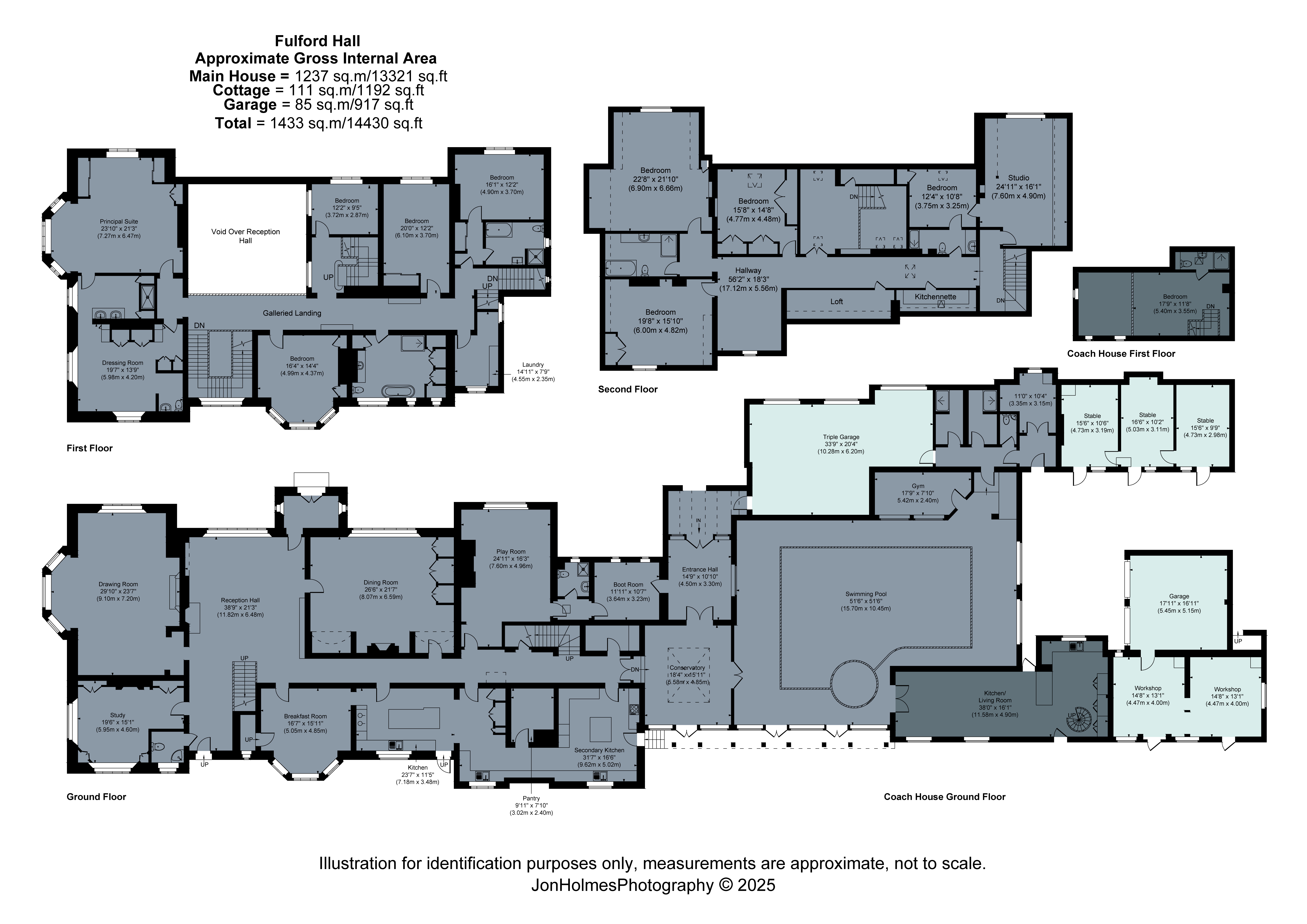 A distinguished Victorian country house with exceptional accommodation set in beautiful grounds.Fulford Hall is an important house which today exists as a very comfortable family home standing in mature grounds of over 12 acres which provide great privacy and a lovely setting. A long avenue driveway provides a wonderful approach.Fulford Hall is recognised by Historic England as a Grade II Listed Building, acknowledged for its architectural and historical significance as a fine example of late Victorian Tudor Revival design and its connection to Sir James Johnstone. The new hall was designed in the fashionable architectural style of the period, featuring mellow brick elevations with stone dressings and lattice casement windows with stone mullions and distinctive hood moulds. The Hall was adorned with an elaborate gabled porch with Doric pilasters, a testament to both Victorian craftsmanship and Sir James's refined taste. This carries the dates 1887 and 1890 whilst the side entrance marks the main later additions where the dates 2001 and 2003 are carved over the entrance.Fulford Hall is a remarkable country house, both in terms of stature and design. The substantial house has been enhanced considerably by the current owners and of particular note is the indoor pool and leisure suite, the connecting conservatory and the coach house, converted to a comfortable self-contained cottage, ideal for guests, dependant relatives, staff or for the creation of an income stream from letting. Most windows are double glazed.The accommodation of the main house, cottage and connected outbuildings extend to almost 16,000 sq ft. There is a wonderful balance in the Hall between formal reception rooms with significant architectural features and less formal spaces for a very well-balanced family living experience.Historical notesFulford Hall stands as a magnificent example of Tudor Revival architecture, built 1887-1890 by Major General Sir James Johnstone kcsi (1841-1895), one of the most distinguished colonial administrators of the Victorian era.Sir James was a remarkable figure who exemplified the Victorian spirit of service and adventure. Born in Birmingham in 1841, he qualified for one of the last cadetships under the East India Company. Sir James spent over two decades serving on India's challenging northeastern frontier, including nine years (1877-1886) as Political Agent of Manipur, one of the most prestigious postings in British India. His courage, diplomatic skill and deep understanding of local cultures earned him widespread respect. During the critical Naga Hills Campaign of 1879-80, he played a pivotal role in relieving the siege of Kohima.Distinguished service was recognised with a Knighthood and the prestigious Knight Commander of the Order of the Star of India (kcsi). Sir James died tragically in 1895 following a riding accident. His legacy endures not only in the magnificent house he created, but also in the school he established in Manipur, which still bears his name today - Johnstone Higher Secondary School in Imphal.Fulford Hall represents more than architectural distinction; it embodies the story of Victorian enterprise and imperial service. The connection between Sir James's memoir "My Experiences in Manipur and the Naga Hills" and Fulford Hall, where he spent his final years writing about his frontier adventures, adds poignancy to the property's history. The house has a story worthy of its Grade II Listing - not just as fine Tudor Revival architecture, but as the creation of a truly distinguished Victorian who helped shape the British Empire's most challenging frontiers. That kind of provenance adds character to a property.The AccommodationThe impressive front entrance is marked by a traditional vestibule with Minton tiled floor and double arched doors. This leads into the dramatic twin storey reception hall with minstrel’s gallery. This grand reception room has oak panelled walls and a dramatic fireplace with wood burning stove, stone surround and splendid chimney piece carrying the date of 1603. The large hall also features the impressive principal staircase and a wonderfully ornate plaster ceiling.The splendid drawing room is of beautiful proportions, with deep cornice and ceiling mouldings, a splendid fireplace and two vast windows overlooking the gardens on separate elevations. Adjacent is the most attractive timber panelled study. Another dual aspect room, the panelling incorporates corner display cabinets and tall bookcases which flank an excellent fireplace with wood burning stove. The dining room is a grand entertaining area with beautiful views over the front gardens. There is an imposing inglenook fireplace, and one wall features a vast fitted dresser with china cupboards and glassware display cabinet.A particular feature of Fulford Hall is the extensive and versatile kitchen arrangement which features open plan primary and secondary kitchens connected with a scullery area and also featuring an open plan breakfast room. This rare but exceptional layout is perfect for family living and entertaining and the kitchens include an oil-fired Aga cooker, an excellent range of appliances, a vast assortment of fitted units, a door to the garden and large walk-in pantry.The long central hallway with flagstone floor is a real feature of the Hall. There is a large playroom near the kitchen, perfectly suited to an additional reception room if required. The central hall leads to the conservatory, a beautiful light area between the house and the leisure suite. Off here is the rear entrance hall, boot room and cloakroom. The everyday entrance lobby with log store has a connecting door to the integral 3-car garage with workshop area.Two flights of stairs from the ground floor access the upper floors. The main staircase leads up to a beautiful galleried landing overlooking the large reception hall below. The outstanding principal bedroom suite occupies the southern end of the house with windows 