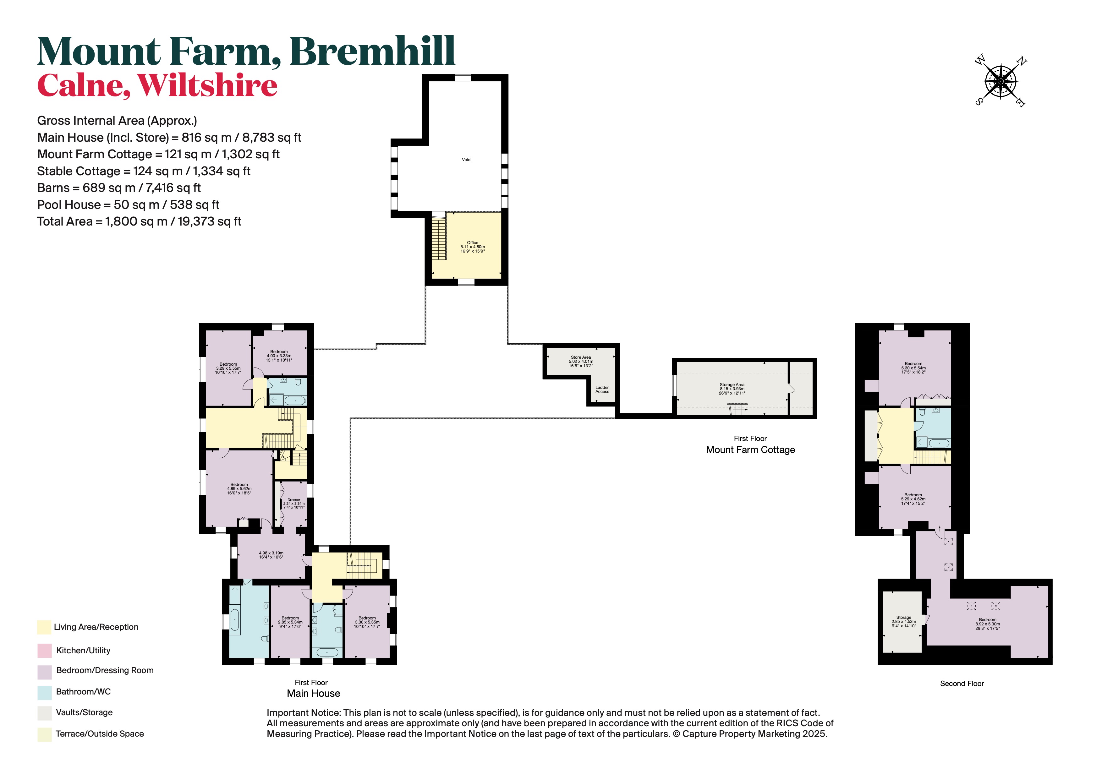 The house is a superior modern country house constructed and extended in the last 25 years to provide a wonderful private family home and entertaining space.There is large open plan kitchen with a dining and seating area, two formal reception rooms and a dining hall as well as an interconnected party barn with bar and cinema.On the first floor the principal bedroom suite has two dressing areas and sits on the east side along with two further bedrooms and a bathroom. On the west side two further bedrooms and a bathroom and the second floor provides flexible accommodation with three rooms and a family bathroom.On the north side of the house beyond the laundry and wine cellar is a useful annexe with ground floor bedroom and bathroom. It has a lovely full height sitting room with kitchenette and its own private terrace.The house is approached along a private drive which splits to provide a formal entrance sweeping around to the south side of the house and also to a parking area at the rear of the house. There is separate parking for the annexe.The gardens and grounds have been carefully designed and have matured to provide a beautiful setting offering complete privacy. The courtyard garden is an rhs Chelsea award winning water garden design and the large east facing lawn is a full-size croquet lawn.The walled swimming pool is accessed through the courtyard garden with a beautifully finished pavilion with a seating area, bathroom and separate kitchen.A large well-established vegetable and cut flower garden with glass house and productive orchard with a range of fruit trees sit to the north of the pool along with a hard tennis court in very good condition.There are two large general purpose agricultural buildings on the northwest side of the house. One barn is used for general farm storage and the other larger barn was previously used for stabling which could be reinstated.The outbuildings can be accessed from the main drive and have a separate secondary access from the road. This access passes the now mothballed menage and horse walker both of which could be reinstated.Stable CottageThe larger barn has been partially converted under Class Q Permitted Development (20/03134/pncou) to provide further accommodation with two bedrooms, an open plan living area, bathroom and boot room.The land is ring fenced around the house with a large pasture field to the south of the house planted with parkland trees and expansive views up to the Cherhill White Horse. The current owners carried out a major programme of tree planting in 2012, to coincide with the Diamond Jubilee, with over 10,000 trees improving the biodiversity of the site and the visual aesthetics, creating attractive vistas and screening to enhance the privacy.Mount Farm is situated on the edge of the picturesque village of Bremhill which lies to north of Calne with views across to the striking North Wessex Downs aonb.The small village of Bremhill has an active community with excellent village pub (in walking distance) the Dumb Post Inn.Calne, less than 3 miles to the south, provides excellent day-to-day shopping facilities whilst the towns of Chippenham, Marlborough and Devizes provide a more comprehensive range of both shops and amenities. The charming market town of Marlborough (16 miles) is of particular note and offers a number of boutiques and specialist shops as well as a selection of wine bars, restaurants and a calendar of cultural events. The compact, Georgian city of Bath, with its renowned music festival, fine theatre and famous array of historic sites and museums, lies approximately 24 miles away.Schools in the area are exceptional, with St Margaret's, St Mary's Calne, Marlborough College and Westonbirt with many well regarded schools towards Bath, such as Stonar, Dauntsey's, Kingswood, Kings Edwards, Prior Park and Monkton Combe.The house is well placed for communication links and lies approximately 8 miles from junction 17 of the M4 which provides fast access to the M25, Central London and Bristol.Regular commuter trains from Chippenham station which has direct rail services to Paddington (under 70 minutes) and Bath (11 minutes).Sporting facilities include racing at Bath, Newbury, Cheltenham and Wincanton. There is golf at the Marquis of Lansdowne's renowned Bowood Golf and Country Club as well as at Calne, Chippenham and Marlborough.