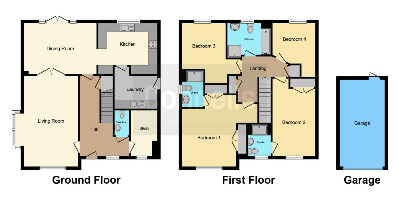 Offered for sale with no onward chain!Atwell Martin are proud to present this four-bedroom detached family home, built by the reputable builder Hills in 2019, with four years of NHBC warranty remaining.The accommodation comprises a welcoming entrance hallway, downstairs W.C., study, and dual-aspect living roomwith double doors leading into the kitchen/dining room. The kitchen is fully fitted with smeg appliances and has a separate utility room.To the first floor, there are two double bedrooms with built-in wardrobes and en-suite shower rooms, a further two double bedrooms, and a four-piece family bathroom.Externally, the property boasts a larger-than-average fully landscaped rear garden, a single garage with power and lighting, and driveway parking to the front for two vehicles.Situation -Juniper Close is situated within a small cul-de-sac on the Hills development.Calne, the 'Town of Discovery' is situated in the heart of the Wiltshire countryside. The town retains many buildings of historical interest, including St Marys, a beautiful example of a 12th Century Parish Church. Modern day Calne benefits from a weekly market and various sports and leisure facilities. There is also a selection of shops and supermarkets, a library, public and private schooling for all ages. Just outside the town is the village of Cherhill, here you will find Wiltshire's most dramatic White Horse carved on the chalk hillside below an ironage fort. A short drive away are the unesco Word Heritage Sites of Avebury, Silbury Hill, Stonehenge, Lacock Abbey and the Georgian City of Bath. A couple of miles away is Bowood House with beautiful gardens and luxury Hotel, Spa and Golf Resort.Viewings - Strictly by appointment with the sole selling agents Atwell Martin call or e-mail us today to confirm your appointment | 13 High Street, Calne, Wiltshire, SN11 0BSUtilities/Services - Mains Electric, Water & Drainage, Gas Central HeatingWiltshire Council Tax - Band FTenure - FreeholdManagement Fee - Approx £300 pa