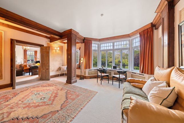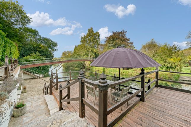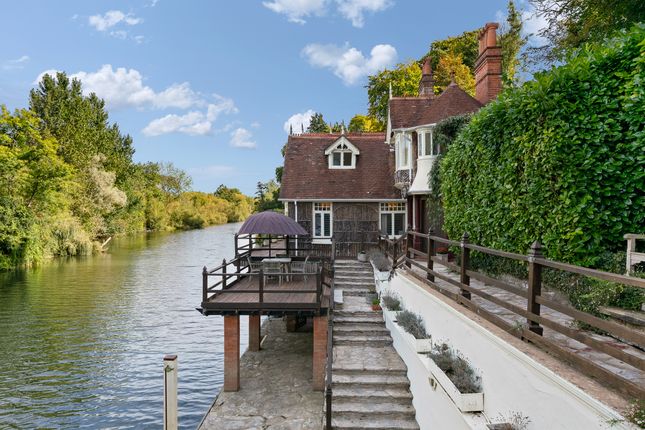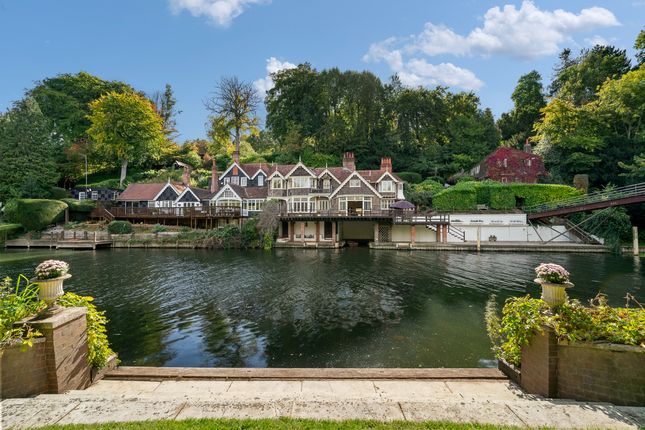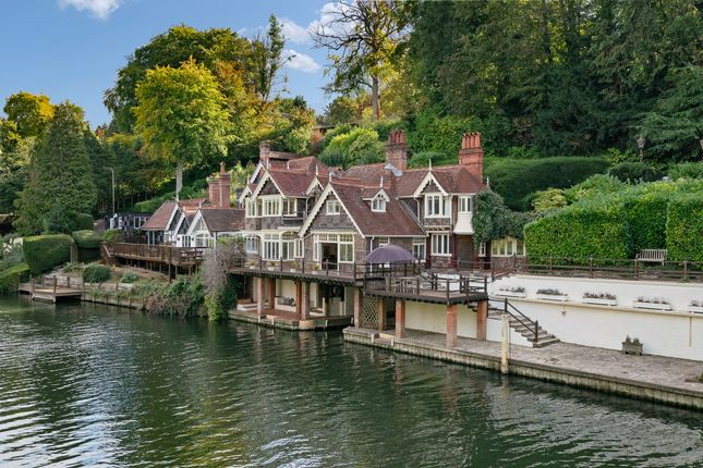 DescriptionSet along a peaceful stretch of the River Thames in Cookham Dean, The Islands is a truly extraordinary six-bedroom home, a whimsical riverside residence set upon its own private 4.5-acre Thameside island, reached by a private bridge. Retaining the original part of a striking period house, it offers an almost cinematic sense of seclusion, where gardens wind towards the water’s edge and every view is punctuated by the glimmer of the river beyond.Entry is to an oak-panelled reception hall reminiscent of a grand Scottish hunting lodge, complete with an open fireplace, stained glass window and panelled ceiling. It’s a house that wears its history proudly, blending Victorian warmth with idiosyncratic architectural details that make it truly one of a kind.The reception hall leads to a series of elegantly proportioned rooms set at pleasing angles, each rich with texture and light. The drawing and dining rooms, situated in the oldest part of the house, are interlinked by oak-faced double doors and framed by exposed beams, decorative pillars and open fireplaces, spaces made for conversation and quiet moments alike. The study, positioned to the right of the front door, offers a peaceful vantage point overlooking the river, bathed in sunlight from a large picture window and overhead skylight.Beyond the threshold, the magic of the island unfolds. The main island is a secret world unto itself, a sanctuary alive with wildlife and colour. Gardens flow into croquet lawns, a paddock, orchards and a flower garden, while the heated pool and pool house are perfectly positioned for long summer afternoons. Three bridges connect the two islands, two of them hidden among the trees, leading to yet more secluded gardens, statues tucked between hedges, and pathways lined with palms, figs, bamboo and bursts of tropical planting. It’s a place where every turn reveals something new.The setting is steeped in history. Once part of an ancient royal fishery dating back to Tudor times, this stretch of river inspired The Wind in the Willows and still hosts the traditional ‘Swan Upping’ each summer, one of those wonderfully eccentric English customs that add to the charm of life on the Thames. Two muntjac deer, families of swans, red kites and migrating geese are among the island’s regular visitors, underscoring its rare sense of natural harmony.On the first floor of the main house, four bedrooms unfold beneath gentle eaves, each with its own sense of character. The principal suite is especially beautiful, complete with a balcony off the dressing room, a perfect perch for morning coffee as mist rises from the water, or evening sundowners as boats drift past. Art Deco notes appear in the carved wooden fireplace and marble hearth, while large bay windows across the river-facing rooms invite light to pour in throughout the day. A further ensuite bedroom, a turreted vanity nook and a spacious family bathroom complete this level.Beyond the main house lies a cottage within the grounds, currently configured as a double garage with an adjoining studio and sitting room that opens onto a terrace overlooking the river. The property also benefits from extensive mooring and fishing rights, with private mooring piles set along the banks, a rare privilege for any Thameside home.Cookham Dean is one of Berkshire’s most picturesque riverside enclaves. The nearby village of Cookham is beloved for its independent shops, historic pubs and the celebrated Bel & The Dragon restaurant, while the charming towns of Marlow and Henley-on-Thames are just a short drive away. Maidenhead station offers fast links into London Paddington, placing this secluded island retreat within easy reach of the city, yet feeling a world apart.