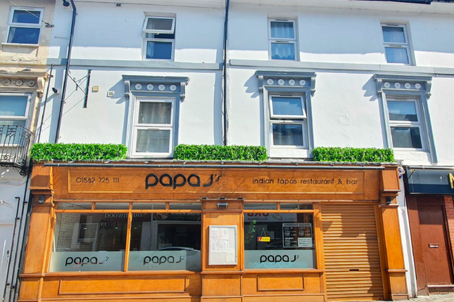 First Choice Property Net present this rarely available double fronted licensed restaurant premises with-in close proximity of pubs, clubs and an indoor/outdoor shopping centre. The premises has existing planning consent for A3 use and currently trades as a licensed restaurant with residential apartments above.The property is located within Luton Town, approximately 6 miles east of Dunstable, 15 miles west of Stevenage and 2.5 miles west of Luton Airport. The property is situated a stones throw away from the Luton Town Centre (150 metres) surrounded by independent retail units, student accommodation for the nearby University of Bedfordshire, and some industrial property.Luton Train Station is under 0.5 miles away, having direct links to Central London and it is a short walk from The Mall Shopping Centre, with national occupiers such as Boots, McDonalds, Primark and Five Guys.ExteriorThe shop front has been lavishly crafted in oak to portray an image of quality & class, with double half glazed oak doors leading to lobby area and a further half glazed oak door leading to restaurant. Restaurant - Frontage width approx. 9.2m with an overall depth of approx. 23.5m. Total floor area of approx. 205 sq. M.- Restaurant floor: This area is currently laid out to create a restaurant floor area of approx. 165 sq. M with spacious lounge area, seating area with a capacity of 120+ cover, air conditioned, bar area with oak bar and all the trimmings including two double door drink chillers, stainless steel round bowl sink & round drainer, disabled facilities, stairs to basement. Contemporarily designed and refitted to create a feeling of opulence and luxurious comfort.- Service/store room: With a floor area of approx. 20 sq. M. Fully equipped with two deep chest freezers, hot plate, plate warmers, stainless steel preparation table, ice cream freezer, walk-in cold room.- Basement: With a floor area of approx. 52 sq. M. This area has been sub divided to create fully equipped ladies & gent’s cloakroom facilities, each equipped with two cubicles and two hand wash basins with fully tiled walls and floors, furthermore a large wine cellar with chiller fridge and ice machine.- Kitchen: Fully equipped modern kitchen with a floor area of approx. 20 sq. M. Canopy over, twelve burner gas cooker, spice racking, chef’s counter fridge, stainless steel single fridge, stainless steel preparation table, stainless steel wash hand basin, stainless steel double drainer double sink unit. Fully cladded stainless-steel walls with ultra flooring.GuideRent £50k per annumPremium poaIncludes all fixtures and fittings.New 15 Year Fri Lease
