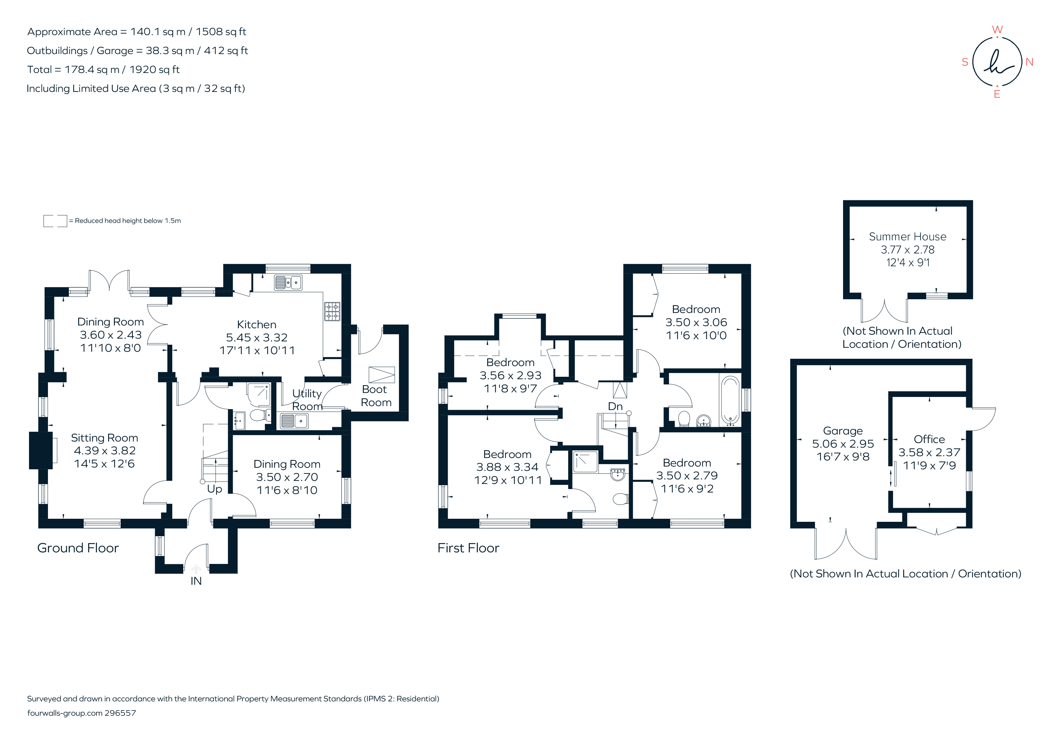 This property is a beautifully presented four bedroom family home with fantastic living space comprising a modern kitchen breakfast room with views over the rear garden, a stylish sitting room with feature gas fire, triple aspect windows and double doors leading to the rear garden, a good size dining room, boot room, utility room, and beautiful timber porch. To the first floor there are four good sized bedrooms, a modern bathroom and ensuite shower room. There is excellent storage space throughout and the property is very light and airy and is decorated to a high standard. The property is accessed via a five bar gate and gravel driveway with space for several cars. There is a timber frame garaging with a converted studio office with power, heating & phone line which is accessed via the rear garden. The front garden is mainly laid to lawn and is enclosed with fencing and hedging. To the rear there is a pretty enclosed lawn with terrace. In addition there is a summer house nestled between plants and shrubs. To check broadband and mobile phone coverage please visit Ofcom here