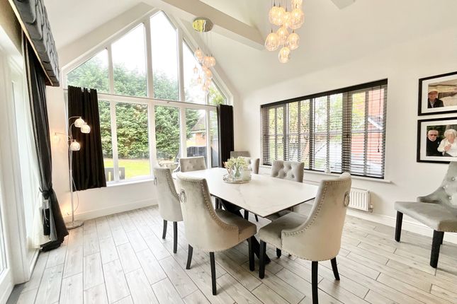 Set within the highly desirable and securely gated Wychwood Park development, this remarkable six-bedroom detached home delivers a superb blend of elegance, comfort, and contemporary design, all arranged across three expansive floors. With its premium finishes, generous proportions, and enviable location, this is a truly exceptional residence offering luxurious living in an exclusive setting.From the moment you step inside, the property exudes quality and style. The welcoming entrance hall leads into a beautifully presented and spacious lounge, flooded with natural light and centred around a stunning gas fireplace with a sophisticated marble surround. A separate snug, featuring dual-aspect windows, provides a cozy and versatile space – ideal as a reading room, home office, or second sitting room.To the rear, the home opens into an impressive open-plan kitchen, dining, and family area – the vibrant heart of this exquisite home. The kitchen has been finished to an exceptional standard, boasting luxurious quartz worktops, matching upstands and floor tiles, and an array of contemporary matt wall and base units offering sleek, clean lines. High-quality integrated appliances include a five-ring gas hob, double oven, dishwasher, wine cooler, and ample space for an American-style fridge freezer. A stylish breakfast bar provides the perfect spot for informal dining and socialising.The adjoining family room is cleverly elevated, adding architectural interest and creating a defined yet connected living space. Dramatic floor-to-ceiling windows and elegant French doors offer wonderful views and access to the private rear garden, flooding the space with natural light and creating an inspiring setting for both entertaining and everyday living.A separate utility room adds further convenience, fitted with matching matt units, wall and base cabinetry, and plumbing for both a washing machine and dryer, making household tasks both practical and discreet.On the first floor, the home offers five well-appointed bedrooms, thoughtfully arranged for family comfort and privacy. Four are spacious doubles, with three benefitting from beautifully fitted en-suite bathrooms The principal bedroom suite is a true retreat, featuring a Juliet balcony, a private dressing area with bespoke built-in wardrobes, and a luxurious en-suite with bath, separate shower, WC, and wash hand basin.The second double bedroom also enjoys its own en-suite, while the third double offers a stylish en-suite bathroom complete with both bath and shower. The fourth double bedroom features a built-in wardrobe and ample space for furnishings. The fifth bedroom is a comfortable single, currently utilised as a dressing room, but equally suited as a nursery, study, or guest room.The second floor spans the full footprint of the home and offers a stunning, versatile living space. Currently used as a home gym, it would make an exceptional sixth bedroom, luxurious master suite, studio, or games room. A striking arched window serves as a beautiful focal point and fills the room with light, adding charm and character to this expansive top-floor retreat.Externally, the property continues to impress. A generous driveway provides parking for up to four vehicles and leads to a substantial double garage with power and lighting, ideal for secure storage or a workshop. The south-facing rear garden is an idyllic haven for relaxation and entertaining, featuring a wooden decked area, a well-maintained lawn, and mature trees and shrubs that offer both beauty and privacy.Located within the prestigious Wychwood Park – a peaceful, gated community known for its 24-hour security, manicured grounds, and acclaimed golf course – this outstanding property offers not only luxurious living but also an enviable lifestyle.This is a rare opportunity to acquire an executive home of such calibre in one of the area’s most exclusive developments. Early viewing is highly recommended to truly appreciate the quality and scale on offer.LocationWychwood Park is an exclusive development set around a pga European standard golf course. Surrounded by beautiful Cheshire countryside yet close to the historic market town of Nantwich with its quaint historic buildings, boutique shops and quality supermarkets. The railway station at Crewe places London Euston under 1hr 30mins away and the M6 Junction 16 for commuters to the region's commercial centres is only 4.5 miles away. In addition, the lovely nearby villages of Weston and Betley provide local amenities.Residents of Wychwood Park benefit from 24 hour security and vehicle control and are eligible for social membership of the golf course club house.Wychwood Park is meticulously maintained and provides a beautiful setting for any home with well maintained parkland and retained areas of natural habitats.EPC Rating: C