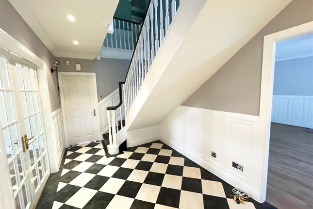 Available now part furnished - viewing essential to appreciateThis beautiful, detached family home has been constructed with handsome Cheshire brick elevations and boasts a wealth of versatile accommodation for the modern family. Situated within convenient reach of Wilmslow town centre and the train station and highly regarded local schools are within easy reach.Entrance vestibule, entrance hallway, lounge with doors through to separate dining room/playroom, family room/sitting room, breakfast kitchen with doors to both utility and conservatory/orangery, side entrance/cloakroom and downstairs WC.To the first-floor, main bedroom with stunning en-suite bathroom and dressing room with fitted wardrobes, second bedroom with en-suite, two further double bedrooms, a study/home office room and a family bathroom.To the second floor there are two great sized bedrooms one with fitted wardrobes and one with an en-suite which could also offer a wide range of uses to those who work from home or potentially for an au pair, along with a separate landing with fitted cupboards.To the front there is a driveway providing off road parking with a modern EV charger, and to the rear there is an enclosed garden which is mainly laid to lawn, with Indian stone paved patios offering ideal outside entertaining space. There is also a double detached garage.Contact Wilmslow £4000.00pcmCouncil tax FEPC CContact Wilmslow £5000.00pcmCouncil tax FEPC CLocationManchester Road is one of the main roads into Wilmslow and being tree lined makes for a pleasant walk to Wilmslow in the Spring, Summer and Autumn. Located approximately halfway along, this stunning family home is in a perfect location for walking to Wilmslow or the train station.DirectionsFrom our Wilmslow office proceed out of Wilmslow along Alderley Road towards the train station, at the traffic lights with Piccolinos on the corner go straight ahead down the hill to the roundabout, go straight across at the roundabout up the hill and the property can be found approximately halfway along on the right-hand side. Postcode SK9 2JXEntrance VestibuleDecorative ceiling coving, box seat with shoe/boot storage below, radiator, half panelled walls.Entrance HallwayAn entrance hall with galleried landing above, Karndean flooring, half panelled walls, radiator, decorative ceiling coving and stairs to first floor. Google Nest thermostat.Living Room (19'6 x 15'0 max)A well-proportioned room with focal fireplace and inset gas fire, decorative ceiling coving, two radiators, wood effect flooring, with three modern double-glazed anthracite UPVC windows to front and side, two ceiling roses.Dining Room (14'11 x 12'8)Great sized room with fire feature surround with tiled hearth, half panelled walls, celling coving, two modern double-glazed anthracite UPVC windows to front elevation.Family Room/Sitting Room (15'1 x 12'0)Great sized room with fire feature surround with tiled hearth, half panelled walls, celling coving, two modern double-glazed anthracite UPVC windows to front elevation.Breakfast Kitchen (23'7 max x 14'6 max)Fitted with a contemporary range of base and wall units with granite work surfaces over, two radiators, Karndean flooring, half panelled walls, recessed spotlights to ceiling, Belfast style sink unit, two modern double-glazed anthracite UPVC windows to the rear, integrated dishwasher, fridge and freezer, recess for range style cooker with extractor hood over and French style doors to orangery.Utility Room (13'3 max x 5'5 max)Quarry tiled flooring, fitted base and wall units with roll top work surfaces over, single sink unit, recess for washing machine and tumble dryer, modern double-glazed anthracite UPVC window to the side, and standalone American style fridge/freezer with integrated ice maker.Side Entrance/CloakroomQuarry tiled floor, door to side of property, radiator and door to downstairs WC.Downstairs W.C.With low level WC, tiled splashback, quarry tiled floor, radiator, pedestal wash hand basin and extractorOrangery/Conservatory (14'7" max x 10'2")A beautiful room with double glazed French style door providing access to the rear garden, four remote controlled opening Velux windows, Karndean flooring, six double glazed windows to side and rear, half panelled walls. Skirting board heating and wall mounted smart electric radiator.First Floor LandingWindow seat with modern double-glazed anthracite UPVC windows to the front, half panelled walls, decorative ceiling coving and ceiling rose, radiator, fitted airing cupboard with radiator.Master Bedroom (13'8 x 11'9)A large sized bedroom with modern double-glazed anthracite UPVC windows to rear, radiator and ceiling coving. Open and leading through to the dressing room.En-Suite BathroomA good size bathroom with contemporary suite comprising panelled bath with shower tap attachment, low level WC, pedestal wash hand basin, separate fitted shower enclosure, tiled flooring, tiled walls, frosted modern double-glazed anthracite UPVC window, ladder style heated towel rail.Dressing Room (12'10 max x 5'6 max)Range of fitted wardrobes with folding doors, double glazed anthracite UPVC window to side, radiator and spotlightsBedroom Two (14'11 x 10'5)Two modern double-glazed anthracite UPVC windows to front, fitted wardrobes with double doors and one radiator. Door to ensuite.En-SuiteFitted shower enclosure, low level WC, and vanity style wash hand basin.Bedroom Three (15'0 x 9'6)Another great sized room with fitted wardrobes, two modern double-glazed anthracite UPVC windows to front, one radiator and dado rail.Bedroom Four (12'1 x 11'11)Another double bedroom with modern double-glazed anthracite UPVC windows to rear, radiator and ceiling covingStudy / Home Office (8'8 plus recess x 5'10)Modern double-glazed anthracite UPVC window to rear, radiator and ceiling coving.Family BathroomFitted with a four-piece white suite comprising panelled bath with shower tap attachment, separate fitted shower enclosure, vanity wash hand basin, low