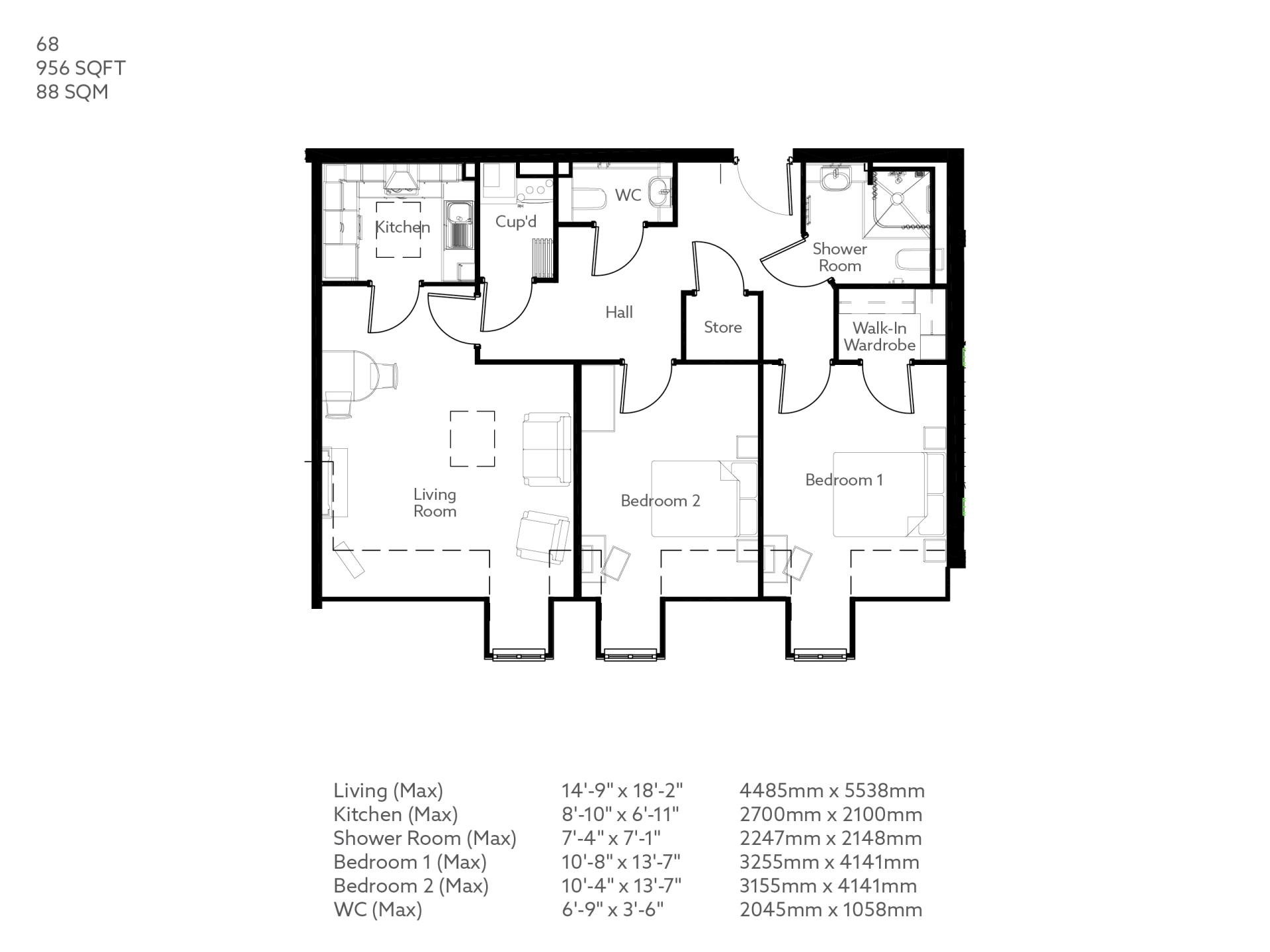 OverviewProperty 68 is a beautiful two-bedroom apartment measuring 956 square feet, located on the third floor with a North facing aspect.The spacious living room is decorated in a natural colour which gives a bright and airy feel. The fitted kitchen comes complete with integrated fridge freezer, ceramic hob, extractor fan and waist height oven.The master bedroom benefits from a walk-in wardrobe fitted with hanging space and shelving units. The large second bedroom could be used as an ideal space for guests or quiet study room, the choice is yours.The shower room is complete with slip resistant flooring and a level access shower, a chrome towel radiator and a fitted mirror.Finally, this apartment benefits from an additional wc with toilet and hand basin.This fantastic apartment comes complete with fitted flooring throughout.Don’t miss out, call today to find out more.SummaryProperty 68 is a beautiful two-bedroom apartment measuring 956 square feet, located on the third floor with a North facing aspect.The spacious living room is decorated in a natural colour which gives a bright and airy feel. The fitted kitchen comes complete with integrated fridge freezer, ceramic hob, extractor fan and waist height oven.The master bedroom benefits from a walk-in wardrobe fitted with hanging space and shelving units. The large second bedroom could be used as an ideal space for guests or quiet study room, the choice is yours.The shower room is complete with slip resistant flooring and a level access shower, a chrome towel radiator and a fitted mirror.Finally, this apartment benefits from an additional wc with toilet and hand basin.This fantastic apartment comes complete with fitted flooring throughout.Don’t miss out, call today to find out more.Council TaxCouncil tax band: New build - Council Tax band to be determinedReservation DepositReservation deposit: £500.00 (to be offset against your initial payment and fully refundable should your Tenancy not proceed)Security DepositSecurity deposit: £3848.08 (equivalent to 5 weeks rent of the apartment only, excludes any parking space rent)