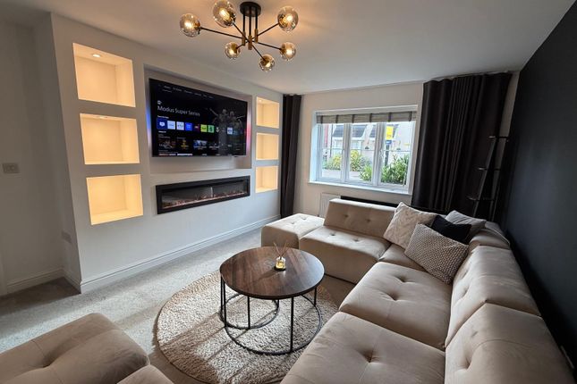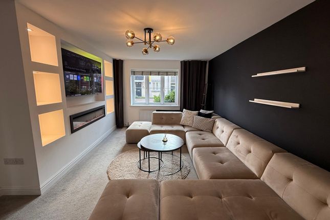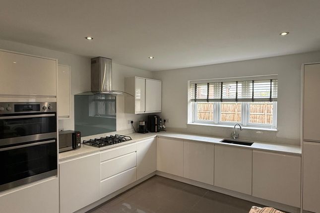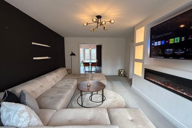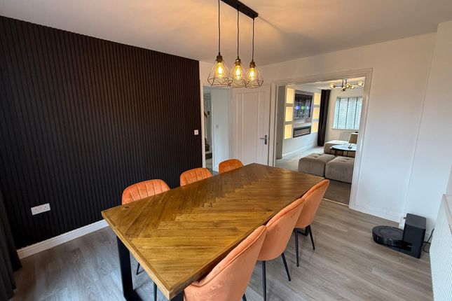 Zero Deposit Guarantee AvailableThis stunning executive family home offers spacious living and modern comforts throughout. Upon entry is the large entrance hallway featuring Aztec design panelling and a stairs leading to the first floor. The hallway provides access to a convenient WC and a storage cupboard.To the left off the hallway is the spacious living complete with a newly fitted media wall, positioned to house a wall mounted TV and complete with decorative shelving and an electric feature fireplace beneath. The room flows seamlessly into the elegant dining area, where French doors open out to the rear garden, enhancing the connection between indoor and outdoor living. The space is further complemented by more beautiful panelling, adding warmth and character.The heart of the home is the greatly sized kitchen/diner, offering an abundance of room for both cooking and entertaining. It comes fully equipped with high-end kitchen appliances, including a 5-ring gas hob, extractor hood, electric double oven, integrated fridge-freezer, and dishwasher. The kitchen benefits from a numerous range of wall and base units and preparation work surfaces. A separate utility area provides additional storage space, housing a free-standing washer/dryer, and offers room for a further appliance. Access to the garage and rear garden is conveniently located off the utility room. The garage itself is an added bonus, featuring a built-in sauna with star-lit lighting—ideal for relaxation and unwinding after a long day!Upstairs, the property continues to impress with four large double bedrooms. The master bedroom complete with a fitted, double mirrored, sliding wardrobe, a modern feature panelled wall behind the bed, and its own ensuite bathroom. The family bathroom offers a luxurious four-piece suite, including a separate shower and bath area.The spacious landing area provides an additional flexible space, perfect for an open office or snug, offering endless possibilities for your personal touch.Throughout the home, you'll find pristine white décor, highlighted by feature panelled walls or stylish blue accents. Grey carpets throughout add a modern yet warm touch to every room.Externally, the property benefits from a private and enclosed rear garden that is not overlooked, offering a peaceful space to enjoy outdoor living. There's gated side access leading to the front of the house, which is complemented by a front garden and a double driveway in front of the garage.Additional Features:• Large, bright and airy rooms throughout• Modern, neutral décor with stylish design touches• Sauna in garage with star-lit lighting• Private, enclosed rear garden with side access• Double driveway and garage• Ideal location for family livingThis immaculate property offers the perfect balance of style, comfort, and practicality, making it an ideal family home.Available mid November. Video tour upon request. Council Tax Band: Holding Deposit: £437.00Executive detached family homeFour generous double bedroomsThree bathrooms (WC, Ensuite, Family bathroom)Sauna in garage with star-lit lightingSpacious living area with media wallLarge kitchen/diner with integrated appliancesUtility areaAdded dining areaGarage and drivewayEnclosed rear garden
