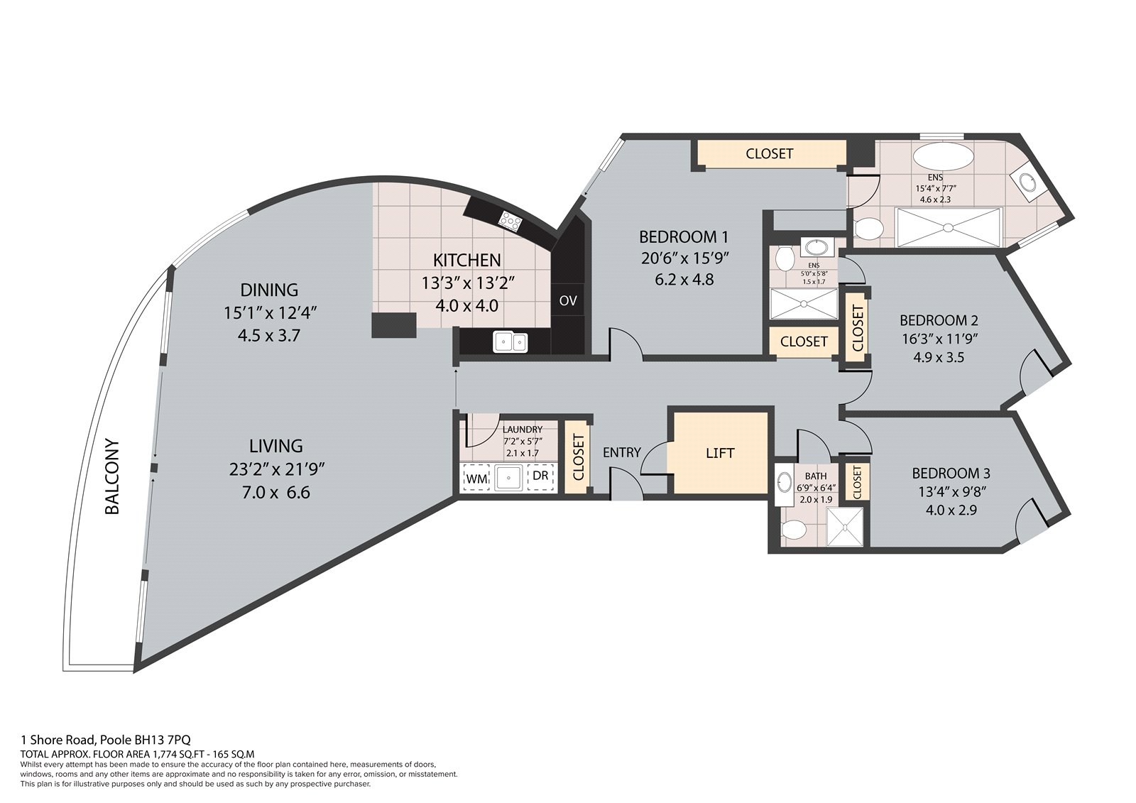 Ultra-modern waterside living at its finest with spectacular views of Poole Harbor and beyond.DescriptionLocated only a stones throw from the water, this property truly is a fine example of waterside living. The ultra-modern architecture and breath-taking views make this property one of the most desirable properties in Sandbanks. With stunning views across Poole Harbour, unspoilt, award-winning beaches on the doorstep and easy access to vibrant shopping and dining.One Shore Road provides the ultimate in luxury apartment living in the exclusive Sandbanks area. The apartment has been meticulously designed by one of the area’s leading interior design specialists to provide state-of-the-art specifications within this superior development. Form and functionality combine to create a home of elegance and beauty yet with subtle practicality.Externally the communal ground are maintained to an exceptional standard all year round. There is allocate underground parking to two vehicles and the lift goes from the basement carpark directly into the apartment.Internally the property is arranged over 1774 square feet of luxurious accommodation. The open plan living, dining, kitchen all benefit from world class water views with access onto the largest balcony which is ideal to al-fresco dine and watch the unbelievable sunsets. The main bedroom is a wonderful size and benefits from the water view, dressing space and a state of the art en suite. Bedroom two is also a great double room with its own well-appointed en suite, bedroom three is also a double but it currently being used as a home office. In-addition there is coats and shoe storage, direct lift access, main shower room and utility room.This property must be viewed in person to appreciate the expanse of the view, internal specification, the natural light bouncing off the water and much more.Nb Photographs taken March 2022LocationSandbanks is a prime coastal residential suburb, located midway between the coastal towns of Poole and Bournemouth. The area is well known for its natural beauty and micro climate with a reputation for having mild winters and more sunshine than most other parts of the country.Poole Harbour is the second largest natural harbour in the world, whilst Sandbanks has award-winning Blue Flag beaches, and Bournemouth has just over 11km of golden beaches. Located in Dorset, these stars in the county provide an eclectic mix of town, country and coastal living.The towns of Poole and Bournemouth are conveniently located for the perfect lifestyle where there is an abundance of shops, restaurants, cafes and bars together with excellent facilities for bathing, windsurfing, jet skiing, horse riding, golfing and access to the flagship dealership for Sunseeker luxury yachts. Rick Stein's highly successful signature restaurant on Sandbanks is a favourite with locals, as well as visitors and is a pleasant level walk away as are other amenities which the area has to offer.From Sandbanks, you can also catch the daily ferry to Brownsea Island and car ferry to Studland, Shell Bay and Swanage which is a gateway town for exploring the Jurassic Coast, a 155km World Heritage Site.Local mainline stations connect to London Waterloo in approximately 2 hours. The M27 and M3 provide links to major towns and cities, such as Southampton, Winchester and London.Bournemouth and Southampton International Airports are also nearby and there is a ferry terminus at Poole Harbour with services to the Channel Islands and mainland Europe.Good local schools are numerous and include Canford School, Bournemouth and Poole Grammar schools, Bournemouth Collegiate, Talbot Heath and Park School.Theatres are available at the Poole Lighthouse Theatre, The Pavilion in Bournemouth, The Playhouse Salisbury and the Mayflower in Southampton.Poole Harbour Opposite 50 metresSandbanks Beach 800 metresLilliput shops 0.7 mileCanford Cliffs Village 1.1 mileSandbanks Ferry 1.8 milePoole centre 3.5 milesBournemouth centre 4.6 milesBournemouth Airport 12 milesLondon 110 miles (2 hours by train)All times and distances are approximateSquare Footage: 1,774 sq ftAdditional InfoHolding Deposit : £1,153.85 ( 1 week )Deposit Payable : £6,923.08 ( 6 weeks )Minimum Term : 12 monthsRent must be paid monthly in advance