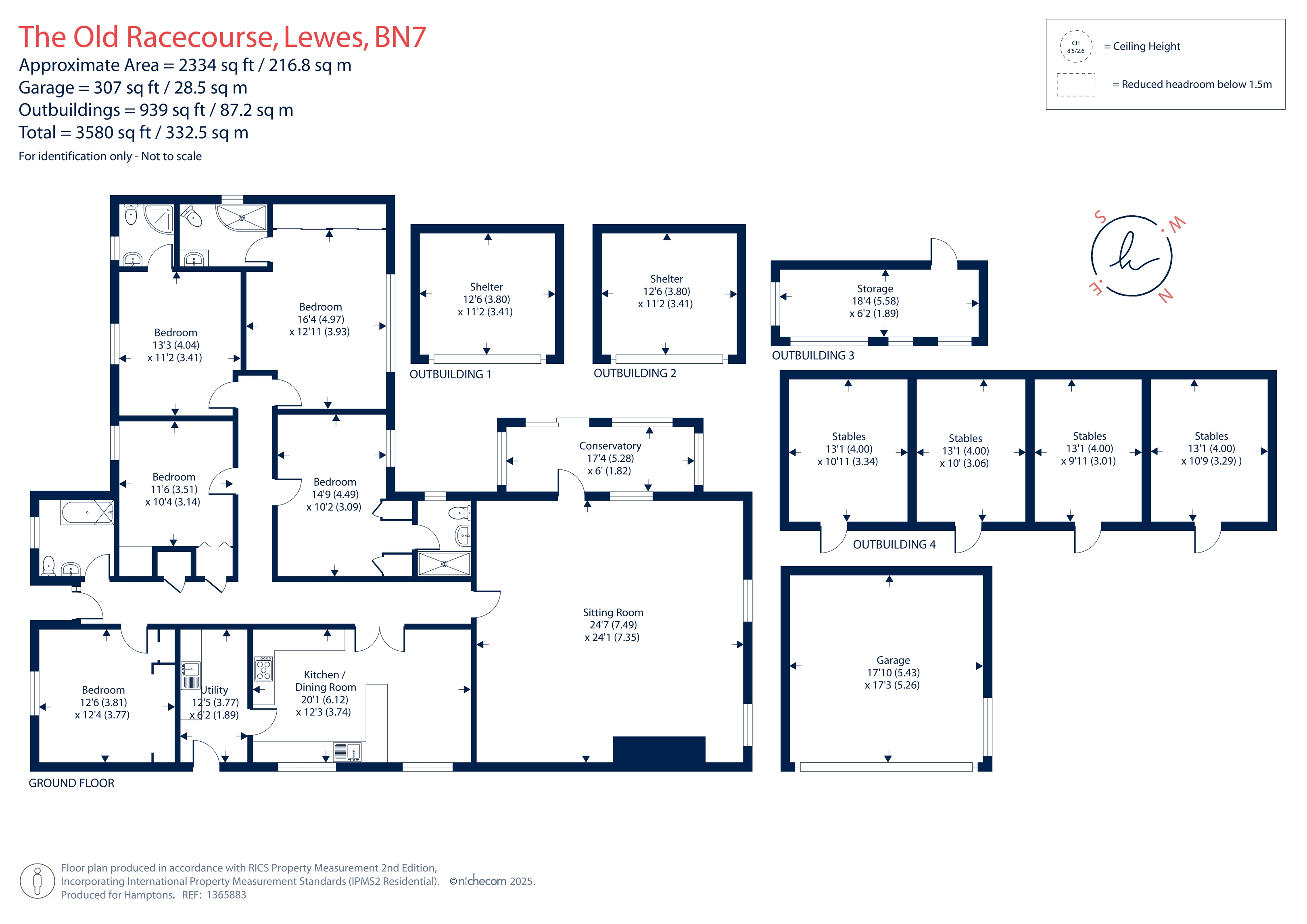 Wonderful home located on the historic and picturesque old racecourse in Lewes. Spacious throughout and styled with mid century design there really isn't another property like it. The elevated position offers the most sensational panoramic views over the National South Downs. The historic town of Lewes with its famous Castle is approximately 1.5 miles away & provides an array of restaurants, shops, leisure facilities & a mainline station with regular services to London.Must see sites nearby include Glyndebourne, Charlston House, Plumpton Racecourse & the seaside City of Brighton.The property itself is detached & offers living over one floor. There are 5 good size bedrooms, 3 with ensuite, 1 family bathroom, large kitchen breakfast room and living room with the most sensational views. Overall, this property blends comfort with a touch of retro-modern style, emphasizing open space, natural light, and stunning views. Stabling & paddock available under separate negotiation. We understand there are mains connections for Gas & Electric. To check broadband and mobile phone coverage please visit Ofcom here