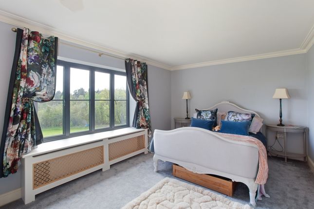 This beautiful country house which has superb views is situated in sought after Groombridge. The property has double front doors leading into a large hallway boasting a double height window, a W/C, coat cupboard, and tiled sand-coloured floor. Double doors lead down to an open plan sitting room with a roof skylight and dining room with large windows overlooking the garden and far-reaching views with doors leading out to a large terrace.Off the hallway to the right, you will find a cosy sitting room with a stone fireplace and wood burner (not for use) with a built-in entertainment unit. A further reception room with a baby grand piano, built-in cupboards, and a fitted utility room. There is a generous office and study with doors opening out to the garden and an open fireplace.The kitchen by Wood Works, features a central island, built-in American style fridge freezer, Aga, Butler sink, and French doors leading out to the patio. Upstairs, the principal bedroom has a dressing room and spacious en suite bathroom. There are three double bedrooms with en suite shower rooms and one further bedroom with dressing room which is served by the family bathroom. To check broadband and mobile phone coverage please visit Ofcom here