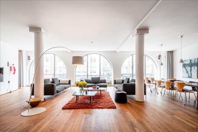 Available for long let - Architect William White’s reimagined first floor, two-bedroom loft apartment in a former warehouse conversion dating back to the 1880’sBefore becoming an apartment, this distinctive warehouse was commandeered by a bank for its prime position on Shoreditch High Street. Its eye-catching arched windows made it an obvious choice. The size and shape suggests it was originally used as a furniture showroom to entice customers in. What worked for the warehouse and bank works well for a home today.Unlike the other four apartments in the building, this incredible home has the sole benefit of the three iconic arches, providing the focal point to an expansive open plan living area. Due to their size and exposure the windows are also privacy filmed, enabling occupants to look out but not be overlooked in. Thanks to the bank, the apartment is not only secure but soundproofed throughout. The lack of noise within this prime central Shoreditch location is frankly, remarkable.An impressive curved wall at the rear of the reception softens the space, whilst a bank of seamless cupboards line another wall, careful not to interrupt the vast residential space. The kitchen is an eclectic mix of macassar lacquered units, stainless steel, and Corian. A hidden utility room off this (again thoughtfully designed not to infringe on the main space), enables practicality and additional storage.At the rear, the property's two generous double bedrooms have sought after crittal windows and offer access out on to a terrace. There are two bathrooms, one a considerable family size with original windows and generous bathtub, the other, an explosion of pop art yellow tiling encompassing a power shower and adding a sense of fun.If you are looking for the quintessential East London warehouse experience, look no further. This amazing home in the heart of Shoreditch is bursting with life, character and will evoke a sense of creativity in even the dullest bank manager.Available for immediate long let. Unfurnished.