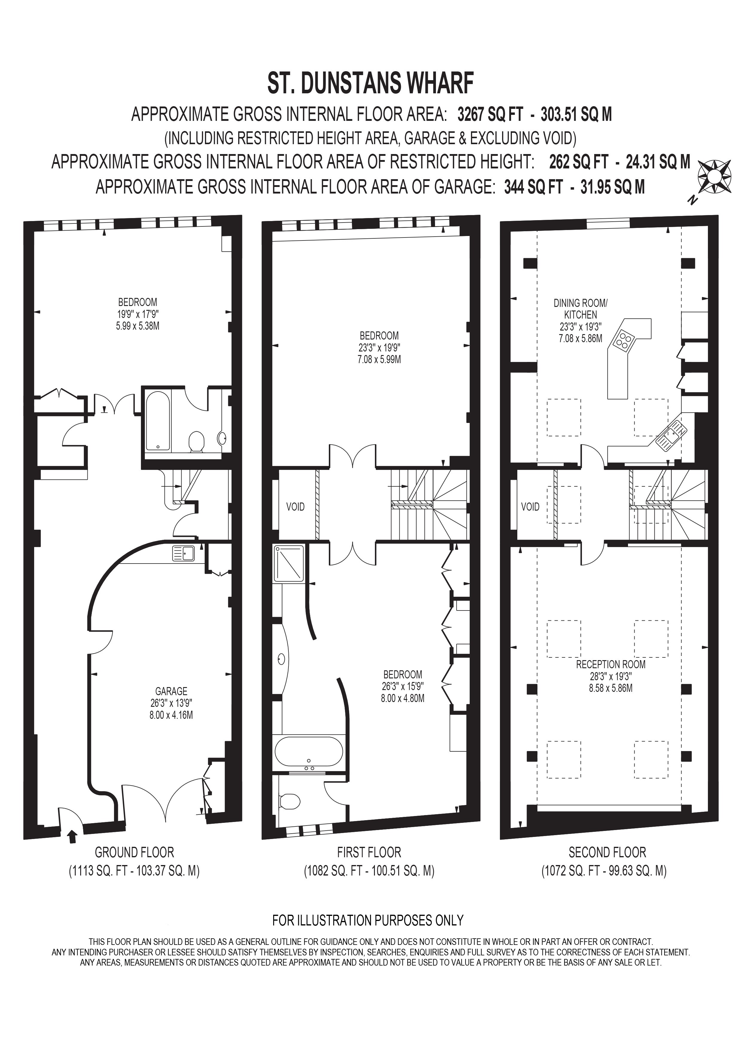 A Victorian warehouse spanning just under 3,300 sq ft (approx) positioned directly on the historic Limekiln Dock overlooking the basin and River Thames. This is St Dunstan’s Wharf. Including three large double bedrooms, two bathrooms, a rare integrated garage and vast lateral open plan space over three floors, each in excess of 1,000 sq ft.This Grade II listed warehouse, built in 1878, would have been used by the shipping trade along The River Thames in a previous life, like many of the local former industrial buildings. Situated in the Narrow Street Conservation Area in Limehouse, Canary Wharf is a 10-minute walk (approx).The southeast facing waterfront side of the warehouse has views over the river on all floors which are connected via a bright oak staircase featuring exposed brick walls and triple height void with skylight. The ground floor has the drive-in off-street parking/storeroom/gym, a large bedroom with en-suite bathroom, built in wardrobes. The top floor has vaulted ceilings and skylights with two large living spaces, one being the main reception room with custom designed walnut bookshelves and the other is a fully fitted kitchen with integrated appliances and dining room with circular windows.Set at the western end of Narrow Street, Westferry station is 0.3 miles and the nearby Crossrail station to Canary Wharf enables journeys to Liverpool Street, and Bond Street within 10 minutes. A varied range of amenities are located on the Canary Wharf estate and Wapping has a great selection of pubs and restaurants including the famous Narrow and the Grapes on Narrow Street.
