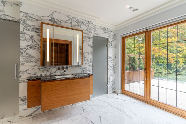 A grand 9-bed, 11-bath new-build mansion on one of London’s most secure private roads. Set on 0.63 acres with landscaped gardens, it spans 17,775 sq ft and boasts a lift, indoor pool & spa, cinema, gym, double garage, and expansive entertaining space across 5 floors. A rare opportunity to acquire an exceptional 9-bedroom, 11-bathroom detached mansion set within one of London's most exclusive, security-protected gated roads. Spanning 17,775 sq ft and positioned on 0.63 acres of beautifully landscaped grounds, this newly constructed freehold residence combines classical architecture with cutting-edge technology.The home is accessed via a grand double-height entrance hall, with a 7-person lift servicing all five floors. The ground level features an elegant double drawing room, bespoke library, formal dining room, discreet study, large family room, and a state-of-the-art kitchen/breakfast room - all opening onto a wide raised terrace overlooking the vast rear garden.The principal suite boasts private terrace access, dual en suite bathrooms, and separate his-and-hers dressing rooms. Eight additional bedroom suites are thoughtfully designed, including a top-floor suite measuring 32ft x 24ft-ideal as a games room.The garden level is a private leisure sanctuary, including a 200+ ft rear garden and a spa featuring a stunning emerald stone swimming pool, sauna, steam room, massage room, gym, cinema, wine room, and large games area. There are two staff bedrooms, each with its own bathroom, plus a staff kitchen.Externally, the gated carriage driveway accommodates 6–8 vehicles, with a double garage and direct access to Highgate Golf Course. Located in a tranquil setting off Hampstead Lane with excellent access to central London, major roads, and Northern Line stations, this home offers rare privacy with unmatched convenience.