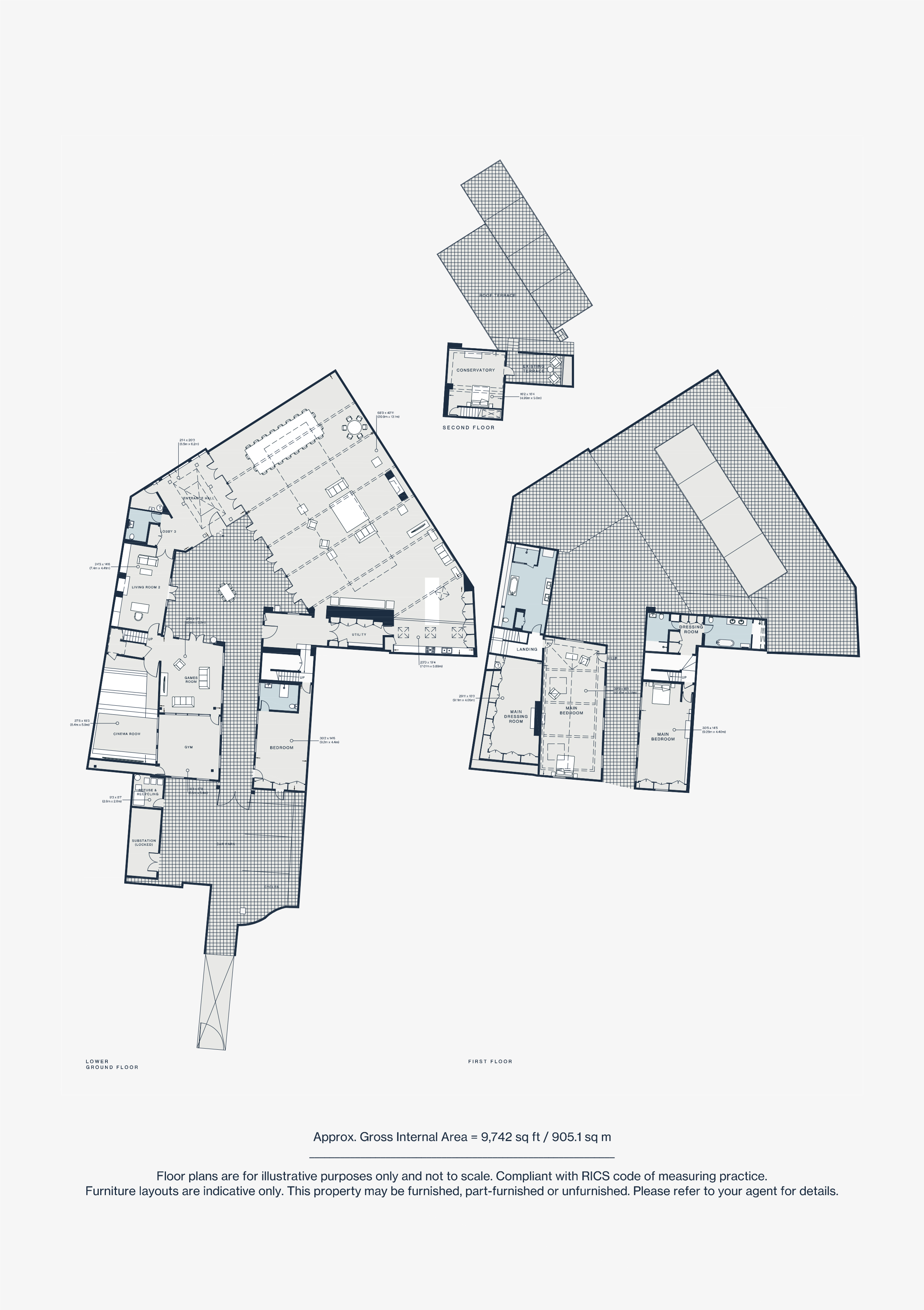 Purpose-built in the 1980s, Milkwood Studios was originally used to produce and edit sketches from the acclaimed TV series Monty Python’s Flying Circus. Today, its creative roots have been rechannelled into a three-floor family home where impactful lateral living spaces continue to spark imagination and originality. First converted into a residential property a decade ago, more recently architects Powell Tuck Associates have further transformed the impressive framework, introducing additional daylight and a greater feeling of openness.A sense of privacy prevails from the outset. Set behind a gated entrance that separates the property from its covered carport, a silver birch tree-lined path leads the way to a peaceful internal courtyard garden and a glass-clad hallway from which the living quarters unfold.A staggering 4,000 square foot studio space plays a starring role in everyday life. Encompassing a floor-to-ceiling library as well as a kitchen, living and dining room, its expansive footprint is tied together with a palette of industrial materials. Polished concrete floors are complemented by a corrugated metal roof and exposed girders, while a central skylight and soaring, steel-framed glass doors usher in an abundance of natural light to soften the effect.To one side, an 18-seater wooden dining table is surrounded by leather cantilever chairs by Mart Stam and Marcel Breuer, setting in motion a mid-century aesthetic. This flows into a central seating area where a pair of white tuxedo sofas are arranged around a statement burnished fireplace that adds warmth to the expanse. Finally, at the far end of the room, the kitchen has a restaurant quality finish. A row of sleek double-height cupboards are accessed via a sliding ladder, offering unending storage options. The culinary station is just as considered – wrapped in stainless steel, it features a double Wolf oven and a butcher’s block-style table for 10. To one side, a convenient utility room conceals the nuts and bolts.True to the building’s entertainment roots, this floor also compromises a cinema and a games room, together with a second, more intimate reception room and a well-equipped gym, meaning all eventualities are catered for.Bedrooms are arranged over three levels. On the first floor, the principal is conducive to rest and relaxation. Outlining a vaulted ceiling, black steel girders and exposed wooden struts accentuate the generous double-height proportions of the space, while a separate dressing room ensures everything has its place. A roof light dials up the sense of brightness in the adjoining bathroom, complete with a walk-in shower, freestanding bathtub and light stone finishes.Also on this floor, an all-white guest bedroom is served by a dramatic, charcoal black bathroom where dark walls and wooden floors bring a moodier atmosphere. Above, a conservatory room doubles as a bright bedroom. From here, access an expansive roof terrace finished with leafy planting – an unexpected urban oasis in North London.LocationIn walking distance of both Camden High Street and Regent’s Park Road, Delancey Street offers a springboard to the throng of independent shops, cafes and restaurants of nearby Primrose Hill. The views from the summit of the namesake hilltop park – one of six protected viewpoints in London – are worth the climb. Pick up refreshments from Melrose & Morgan along the way, or refuel with brunch at Greenberry. Slightly closer to home, Regent’s Park is moments from your front door – start the day with a jog around the boating lake. Dining options are plentiful here; for laid back evenings, there’s The Engineer – or try Lemonia or Odette’s for special occasions.Camden Town – 6 mins (Northern)