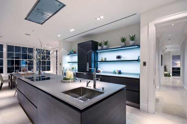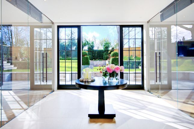 The exceptional accommodation features a galleried entrance hall, a double 'L' shaped drawing room, large dining room, study, family room, large office, luxury fully fitted kitchen/ breakfast room, cinema room, separate second kitchen, attractive glass fronted wine cellar. The leisure complex includes a swimming pool, gym, steam room and changing facilities. Principal bedroom suite, five further bedroom with en-suites, separate nanny's bedroom (en‐suite), three further staff bedrooms, two shower rooms, staff kitchen, lift (all four floors), integral garage and off street parking for ten cars behind electric gates.The house is within 770m of the shops and transport facilities of Hampstead Village and the O2 shopping and cinema centre is within 925m.