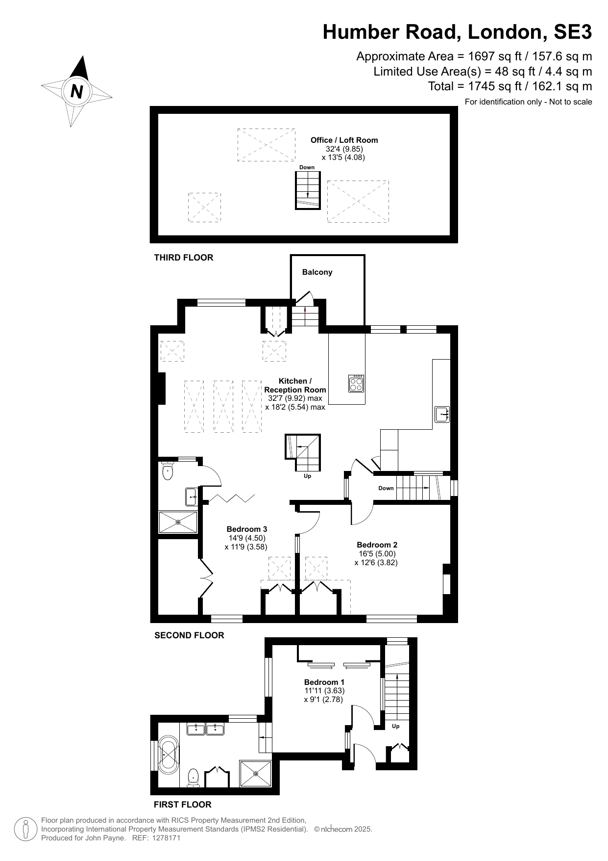An exceptional three bedroom split level penthouse conversion flat measuring 1 745 square feet (162 square metres) with the most spectacular views of London. Occupying a prime location in the Westcombe Park conservation area, just a few minutes from Mazehill station with direct links into London Bridge within 17 minutes, a short walk to east Greenwich Pleasuance, and within proximity to Greenwich Park.This magnificent property has been architecturally designed to allow for flexible living accommodation, provide endless amounts of natural light and the practicality of a home which can be enjoyed by families or couples alike, not to mention an insanely stylish finish.Comprising a double bedroom with bespoke storage and en suite bathroom with separate shower and bath, expansive open plan kitchen living dining space with access to a large terrace with breath taking views of the London skyline, a double bedroom with wall length sliding doors which gives you the flexibility of opening the space or closing it off, a third double bedroom with built in storage, a mezzanine loft room which is ideal for an office and glass floors make for light to travel very well into this space and a communal garden is also included.Outside, the communal garden provides a peaceful retreat amidst the hustle and bustle of city life. With lush greenery and manicured lawns, it's the perfect place to unwind, socialize with neighbours, or simply enjoy the beauty of nature.Located near Westcombe Park mainline station, highly regarded primary schools, and verdant green spaces, this property offers the best of both worlds – a peaceful sanctuary with easy access to the amenities and conveniences of urban living.Experience the epitome of Georgian elegance and modern comfort in this exquisite three-bedroom flat, where every detail has been thoughtfully curated to create a truly exceptional living environment.The Royal Borough of Greenwich - Council Tax Band - DEnergy Efficiency Rating -COffice/ Loft Room 32'4 (9.85) x 13'5 (4.08)Kitchen/Reception Room 32'7 (9.92 ) max x 18'2 (5.54) maxBedroom Three 14'9 (4.50) x 11'9 (3.58)Bedroom Two 16'5 (5.00) x 12'6 (3.82)Bedroom One 11'11 (3.63) x 9'1 (2.78 )Broadband and Mobile Phone: Ofcom suggest that Superfast broadband is available to this property and 5g Mobile signal may be available on some networks. Information regarding broadband options and phone signal can be obtained from the Ofcom broadband and mobile coverage checker To check broadband and mobile phone coverage please visit Ofcom here