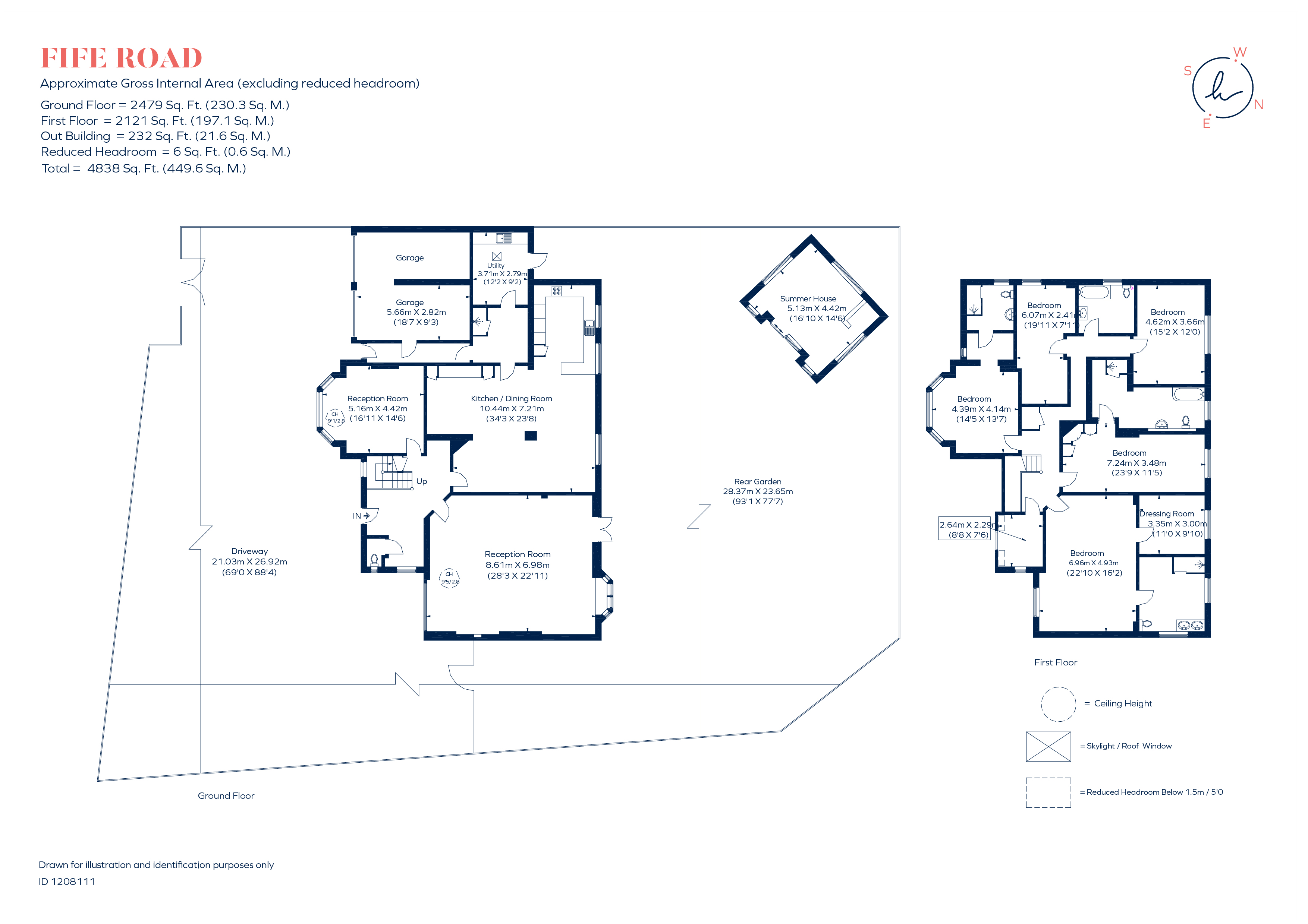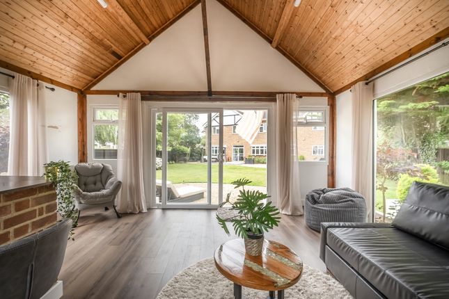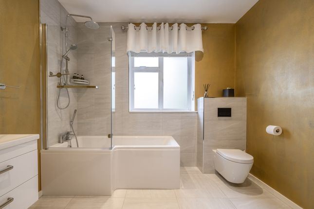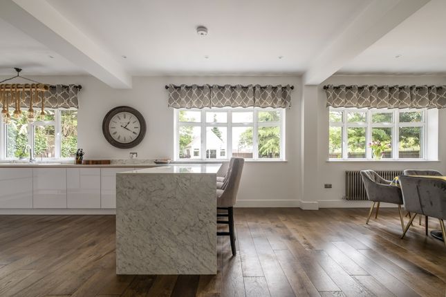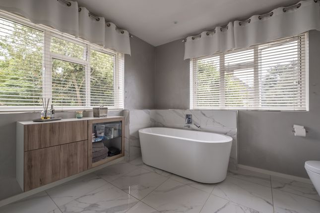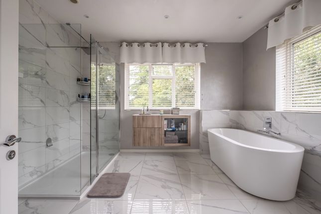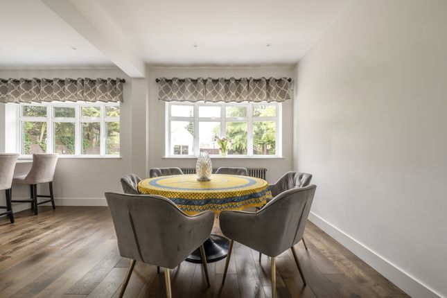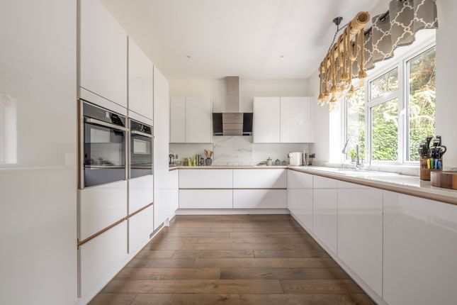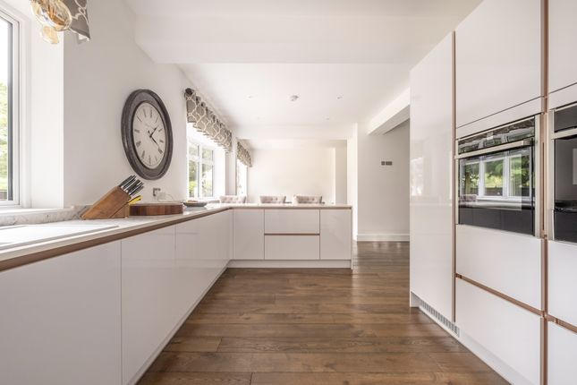 Short let - utilities included. A five bedroom detached house that has been completely refurbished throughout to an excellent standard. The extensive accommodation is located over only two levels and there is also a large summer house. Principal bedroom with bathroom en suite and dressing room, three further en suite bedrooms and a double bedroom with family bathroom. The ground floor provides a substantial reception room, kitchen/dining room, second reception room, utility room, boot room, guest cloakroom and double garage. The house is situated in the midst of large front and rear gardens and has gated off street parking for several cars. It is available either unfurnished or furnished for short term lets. Please note the furniture that is shown will not be the furniture provided for the short let.