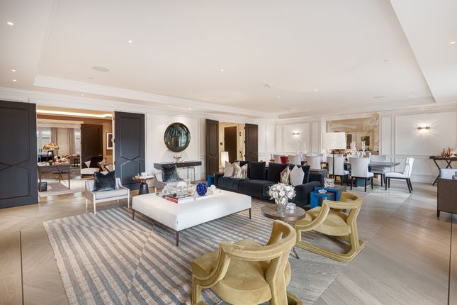 DescriptionThis refined retreat honours the provenance of its metropolitan postcode. Set in a handsome redbrick mansion block of just five residences, the apartment represents an opportunity to own a turnkey home in a prestigious neighbourhood with over 11,000 sq ft of living space.The property is a design-led quadruplex masterminded by renowned developer Finchatton and finished by leading superyacht design studio rwd. Entering on the ground floor, the calibre of materials and craftsmanship is apparent. A dual-aspect reception room sets the tone, with parquet flooring, elegant wainscoting and a stone fireplace. Also on this floor, a contemporary kitchen is designed as a staff facility.A grand staircase threads its way between all levels, each also benefiting from lift access. The first floor is designed for family living. Dual double doors grant access to a grand reception and dining room. Two south-facing bay windows frame verdant views of Hans Place and draw in daylight to illuminate refined details. Chevron flooring, voluminous proportions and a white marble fireplace characterise the room.A first-floor informal reception room balances the functions of cooking, dining and relaxing. Complete with a breakfast bar, a marble waterfall island characterises the kitchen. Hardwood flooring sweeps through a generous dining area into a convivial reception space.The principal bedroom is of hotel suite proportions. The room is defined by a bank of French doors, a considered living area and a bathroom with a freestanding bath. Two further bedrooms occupy the first floor, as well as a leafy terrace. Across several rooms, 15 Juliet balconies invite natural light into this level.Three further bedroom suites are arranged over the ground and lower ground floors. Below, the home’s basement level draws together an arsenal of amenities including a cinema, games room and wine cellar. The apartment also enjoys distinguished study spaces and a chef’s kitchen.The apartment features comfort cooling, underfloor heating and a Lutron HomeWorks lighting system as well as bespoke joinery throughout. Ideal for a family with staff, all bedrooms have en suite bathrooms and all but one incorporate walk-in wardrobes. Remodelled by Finchatton, the building is fewer than 10 years old. Residents’ amenities include a world-class gym, 24-hour concierge and a commercial kitchen available upon request.The property benefits from four parking spaces and enviable access to the gated garden of Hans Place. Beyond, Knightsbridge is an esteemed neighbourhood grounded by period architecture that sits only 15 miles from Heathrow Airport. Closer to home, Harrods and Harvey Nichols are within a three-minute walk. Michelin-starred restaurants Amaya, Pétrus by Gordon Ramsay and Dinner by Heston Blumenthal are also all within a 10-minute stroll, as are the lawns and lakes of Hyde Park.