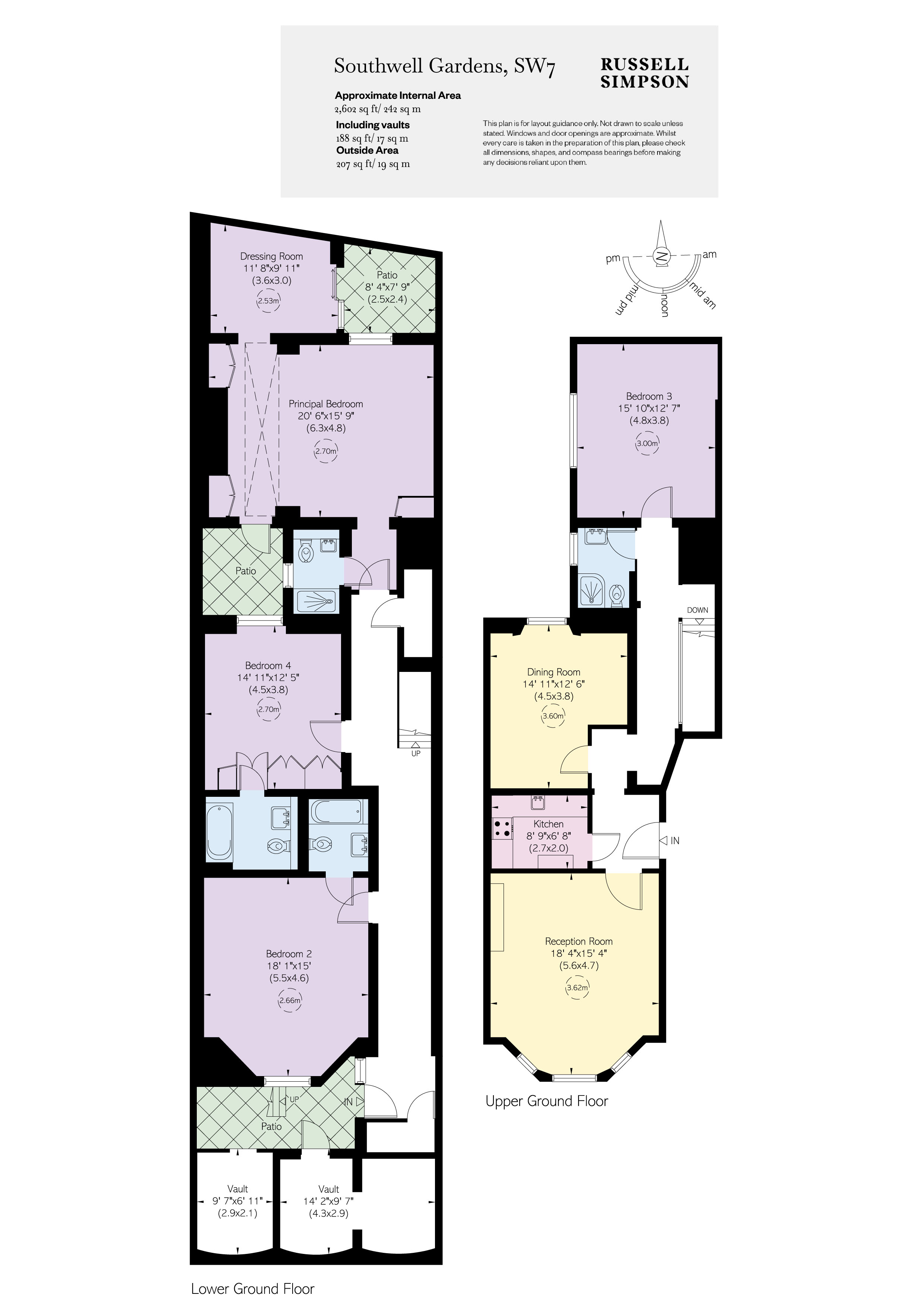 Beautifully presented four-bedroom apartment arranged over two floors.Entering the apartment on the upper ground floor, the reception room is exceptionally generous with lofty proportions and broad bay windows that fill the space with light. The separate kitchen is well-appointed with fitted units and sleek appliances, maintaining the property's refined contemporary style. Beyond is the dining room, which features elegant proportions and excellent natural light.This floor also features a well-proportioned double bedroom with large windows, and a guest washroom.The lower ground floor houses the generous principal bedroom with built-in storage, a dressing room, ensuite shower room and access to a patio. This level also has two further bedrooms, both with ensuite bathrooms. The thoughtful layout maximises both privacy and natural light throughout.The property benefits from wooden floors, high ceilings that create a sense of scale, and elegant period details including moulded cornices. The interiors are decorated in a restrained contemporary style with sophisticated neutral tones throughout.Southwell Gardens is a quiet residential address in South Kensington, moments away from the cultural attractions of the Victoria and Albert Museum and Natural History Museum. The tree-lined street features elegant white stucco townhouses and is within easy reach of the upmarket boutiques and restaurants of Knightsbridge and South Kensington. The open spaces of Hyde Park are a short walk away, while South Kensington station provides excellent transport connections across London.