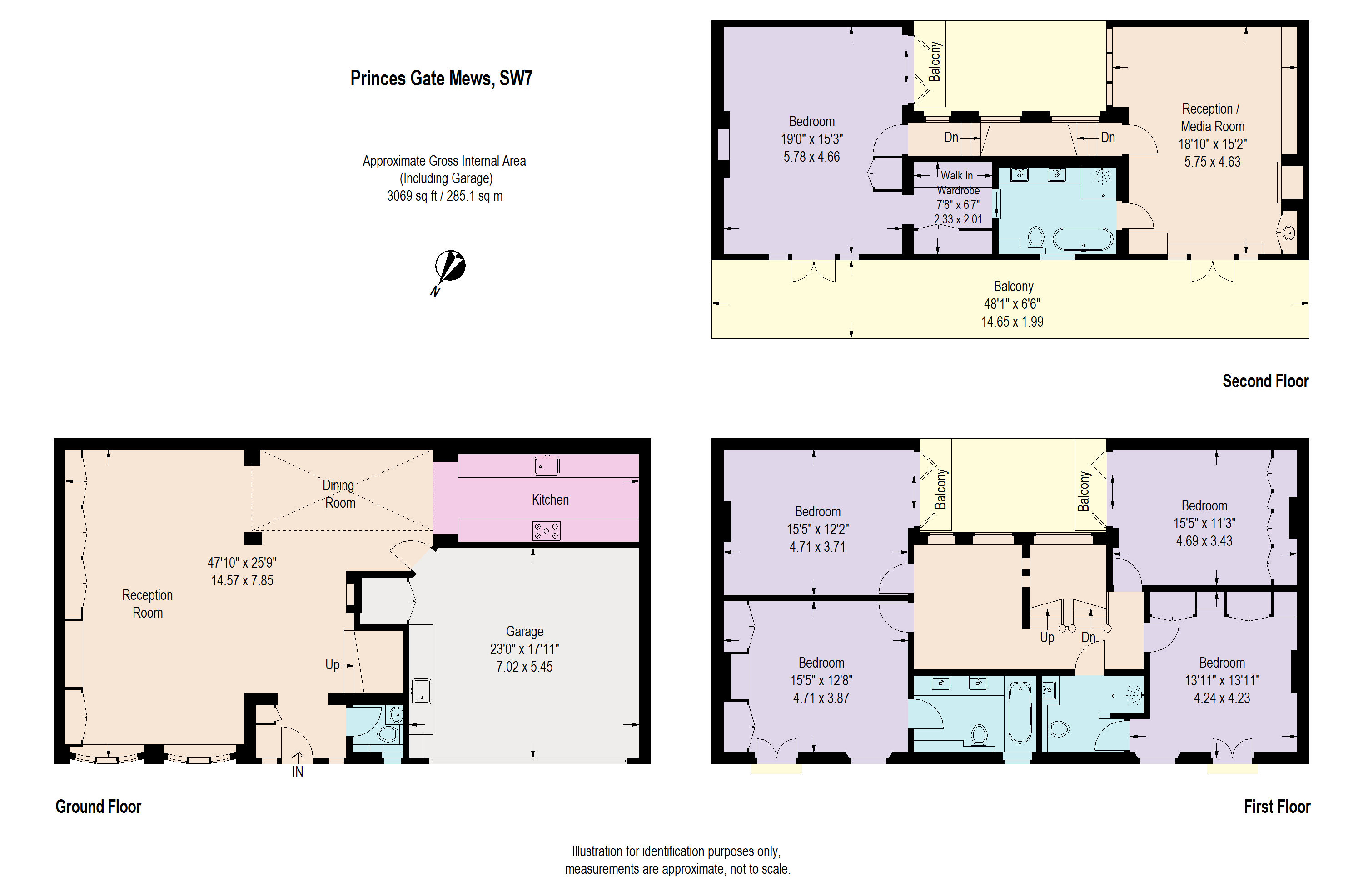 This superbly refurbished residence presents approximately 285 sq m (3,069 sq ft) of beautifully appointed family living space, showcasing multiple living and entertaining spaces. This wide fronted, low built mews house offers the rare inclusion of a double garage.Light and bright throughout, the house offers a combination of clean modern lines, generous interior spaces with luxurious appointments and wonderful outdoor entertaining areas. The ground floor comprises a large open plan reception room and dining room with sky light, contemporary kitchen, as well as the integral double garage with fitted utility area. Bespoke furnishings throughout the property include wall to wall headboards and custom built wardrobes with LED lights in the bedrooms. Bathrooms are equipped with premium fittings including marble and bespoke cabinetry.The first and second floors are arranged around a central lightwell with wall garden. The first floor houses 3 large bedrooms with excellent storage, and a study area. There is an additional versatile room, suitable for use as a home office, library or another bedroom. The top floor has been designed as a sumptuous penthouse-style parents' retreat. The oversized primary bedroom is fitted with a walk-in wardrobe and Juliet balcony. An additional reception/media room complete with projector screen opens out onto a full-length terrace.Accommodation comprises primary bedroom with walk-in wardrobe, 3/4 further bedrooms, 3 bathrooms, guest cloakroom, open plan reception/dining room, second reception/media room, study area, kitchen, full length terrace, multiple balconies, double garage with utility area. Technology features include an advanced home automation system to control lights, blinds and heating, video door entry with remote opening function, air conditioning to the primary bedroom and integrated wireless surround sound system.Princes Gate Mews is a charming and picturesque location in the South Kensington area of London, specifically within the SW7 postcode. It is a quiet, residential mews street situated just off Princes Gate, which is a prime address in the heart of one of the city's most desirable neighbourhoods.This area is known for its elegant Georgian and Victorian architecture, and Princes Gate Mews is no exception, with its quaint cobblestone streets, period buildings, and a peaceful atmosphere. Despite being tucked away in a more serene part of South Kensington, it is still close to major landmarks and cultural institutions, such as the Natural History Museum, Victoria and Albert Museum, and the Science Museum, all of which are close by.The mews is also well-served by public transportation, with South Kensington Underground Station nearby, offering access to the District, Circle, and Piccadilly lines. The neighbourhood is upscale and cosmopolitan, with plenty of cafes, boutique shops, and fine dining options. The Royal Albert Hall and Hyde Park are also nearby, providing ample green spaces and cultural opportunities for residents and visitors alike.