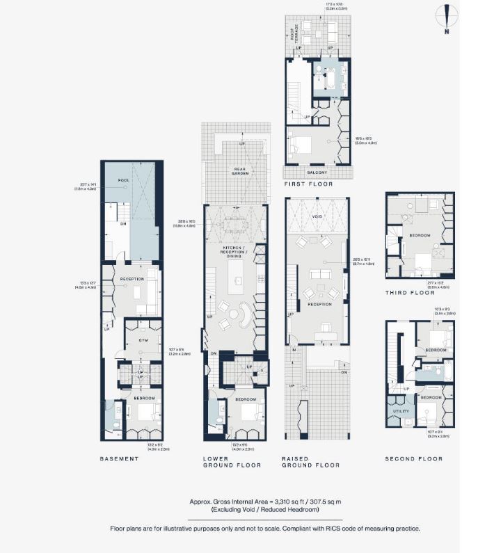 Chestertons are delighted to present this exceptional six-bedroom townhouse; a masterstroke of voluminous proportions and state-of-the-art interior design. A charcoal-black façade sits boldly amongst Westbourne Grove's rows of pastel-toned townhouses. Inside, the heritage grandeur of this six-bedroom home has been redrawn with awe-inspiring contemporary imagination.The ground-floor reception room sets a tone of stylish elegance, with dark wood floors, marble accents and a gilded metal screen -- aesthetic sentiments employed throughout the home. Set above the modern fireplace, a large mirror amplifies the swathes of sunlight that fill the space. A glass balustrade frames an immense double-height void connecting this room to the open plan kitchen and dining area below. It holds striking architectural impact, engineered with full-height glazing and an expansive roof light, emphasised further by a sculptural chandelier that spans the vertical drop.The lower-ground floor kitchen is cantered by a large island, finished in lustrous marble that continues to sweep across the floors. Chef-grade Gaggenau and Miele appliances make for an ergonomic culinary setting, whilst full-height wine storage is seamlessly integrated behind glass doors with bronze framing. Beyond the dining space, the voluminous glass panels slide open with immaculate precision to the garden. A towering wall of blonde brick and clean-line whitewashed seating paints an urban al fresco scene.A staircase descends to an intimate family room on the basement level. Transforming the subterranean plot into a showpiece of cutting-edge design, a marble-clad swimming pool is positioned next door. Its opulence is enriched with sunlight that filters through a glass roof during the day and recessed track lighting which casts a warm glow come evening. This floor also hosts a gym, double bedroom and shower room, organised around an internal courtyard.The sumptuous principal bedroom suite occupies the entire first floor, introduced through a corridor of velvet sage-green panelled wardrobes. Modish finishes span the plush grey carpets to the bold marble bathroom, complete with a dual vanity and oversized rainfall shower. Light is channelled through floor-to-ceiling French windows, accentuating the glinting crystal chandelier. From here, there's direct access to the suntrap roof terrace. Spread across the lower-ground, second and third floors are four guest bedrooms and two bathrooms -- continuing the home's flawless craftmanship.This home's outstanding refurbishment showcases the timelessness of expert design. Six stories of standout materials and sprawling proportions render a compelling canvas for modern family dwelling, enhanced by its inimitable position on Westbourne Grove.Council tax band: HOur China Desk is here for you, if Chinese is your preferred language, please get in touch via WeChat (ChestertonsLettings)