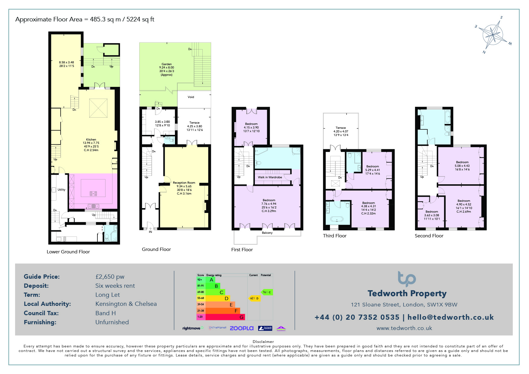 An impressive newly decorated 5,224 sq ft family home with generous living and entertaining space as well as a private garden in the heart of Kensington.Set across 5,224 sq ft, this impressive house offers generous living and entertaining space throughout. The raised ground floor features a spacious double reception room which french doors opening onto a private terrace with views over the garden as well as a study.On the floor below, a large open-plan space includes a fully equipped kitchen, a second reception room, and a formal dining room with elegant bay windows leading out to another terrace and the garden.The first floor is dedicated entirely to the master suite, complete with a walk in closet and a private balcony. Across the upper floors, there are five further bedrooms, three bathrooms, a media room, and another terrace. The lower ground floor also includes a small self-contained apartment with its own entrance, ideal for staff.Pembroke Gardens is a leafy street in the heart of Kensington, just a short walk from Holland Park and High Street Kensington (Circle and District lines).Unfurnished.